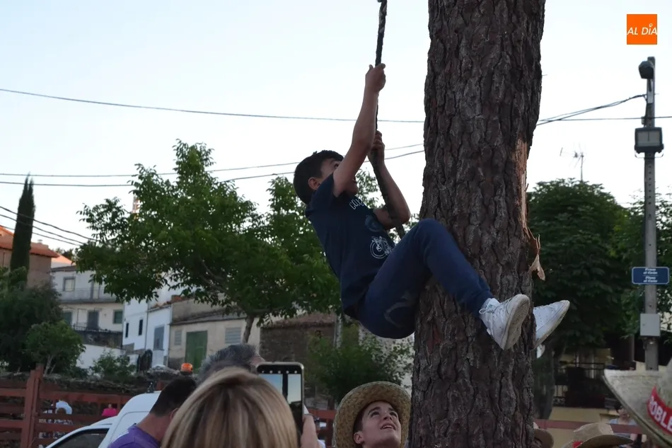 Al menos, el relevo parece totalmente asegurado vista la implicación de los más pequeños en los actos de la tarde del viernes. En primer lugar, los peques también se subieron a la parte trasera del gran pino en su recorrido por las calles de la localidad, donde hubo que tener mucho cuidado para que no golpease ningún cable -ni ninguna otra cosa- la copa del árbol, de nada más y nada menos que 26 metros y 20 centímetros.