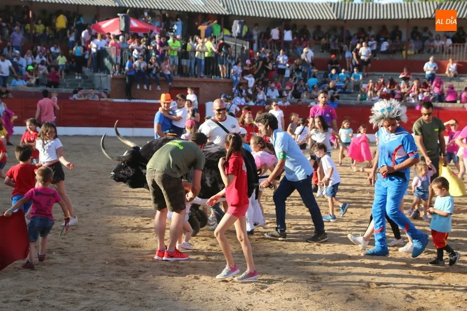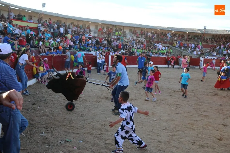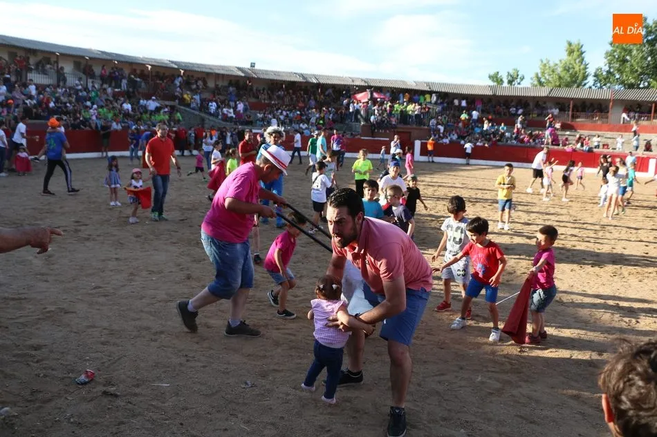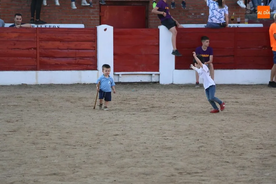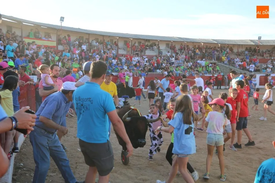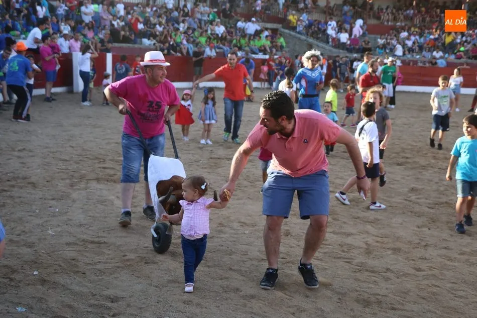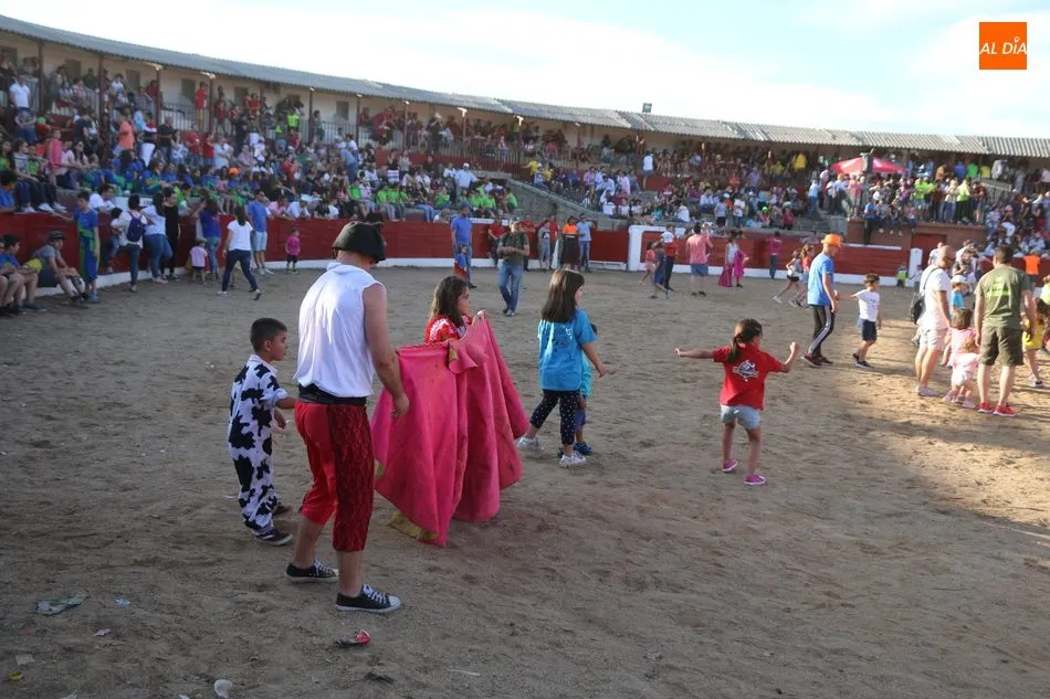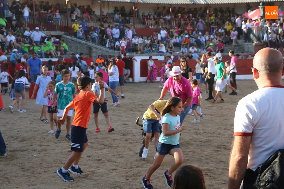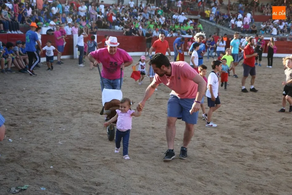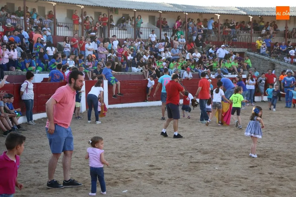 A continuación saldrían dos erales más y una vaca para los aficionados, y seguidamente otra para los más pequeños y las chicas más valientes, que hubo varias. Así se llegaba a los carretones y la algarabía salía del ruedo con decenas de niños dispuestos a correr delante de los ?morlacos? de Carlos Huertos.