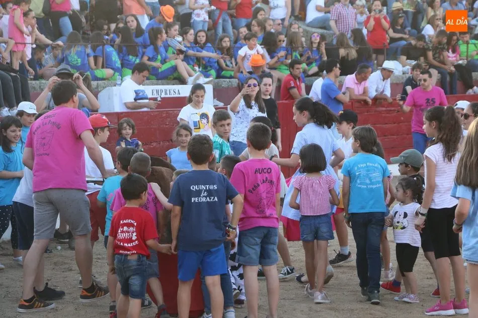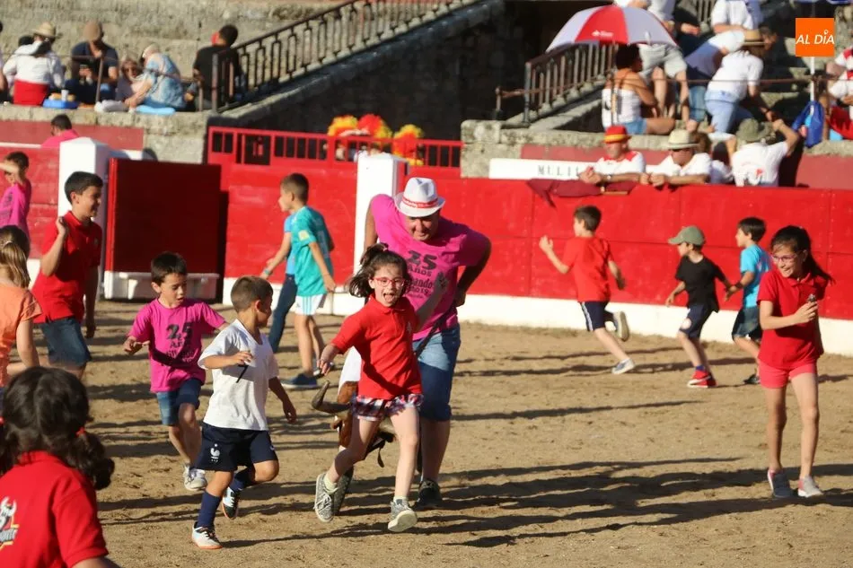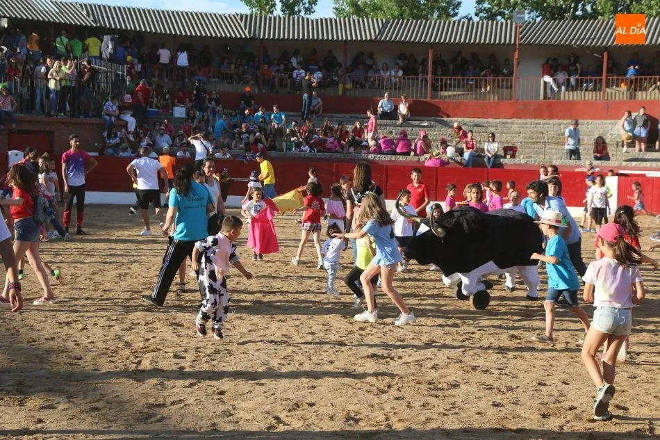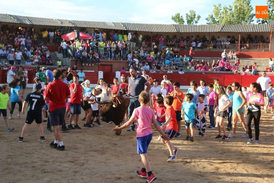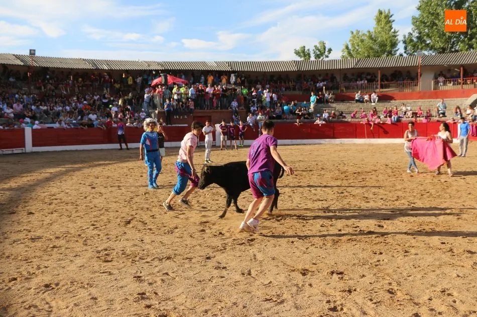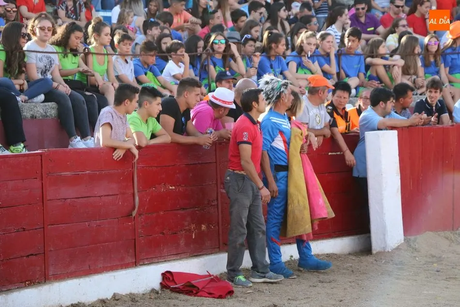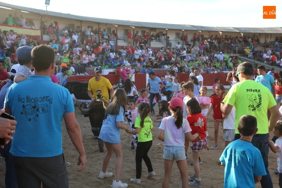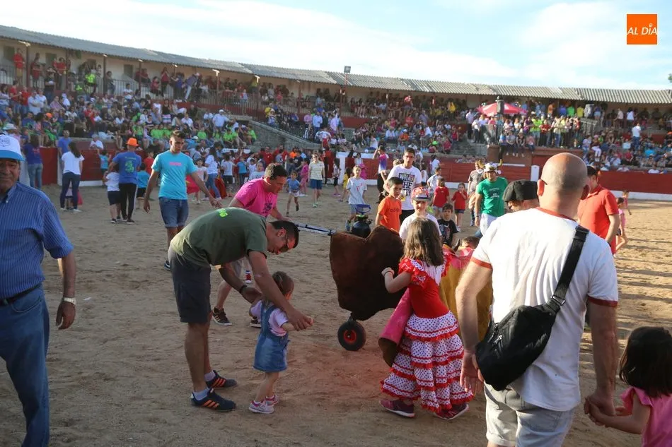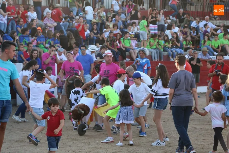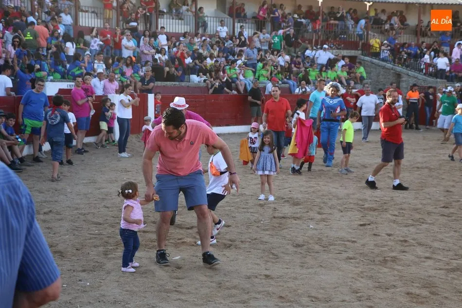 A continuación saldrían dos erales más y una vaca para los aficionados, y seguidamente otra para los más pequeños y las chicas más valientes, que hubo varias. Así se llegaba a los carretones y la algarabía salía del ruedo con decenas de niños dispuestos a correr delante de los ?morlacos? de Carlos Huertos.