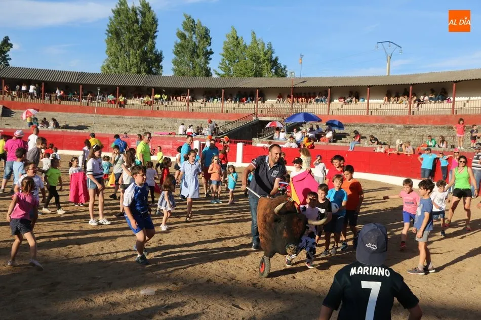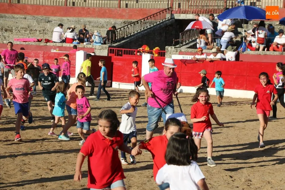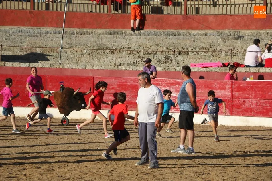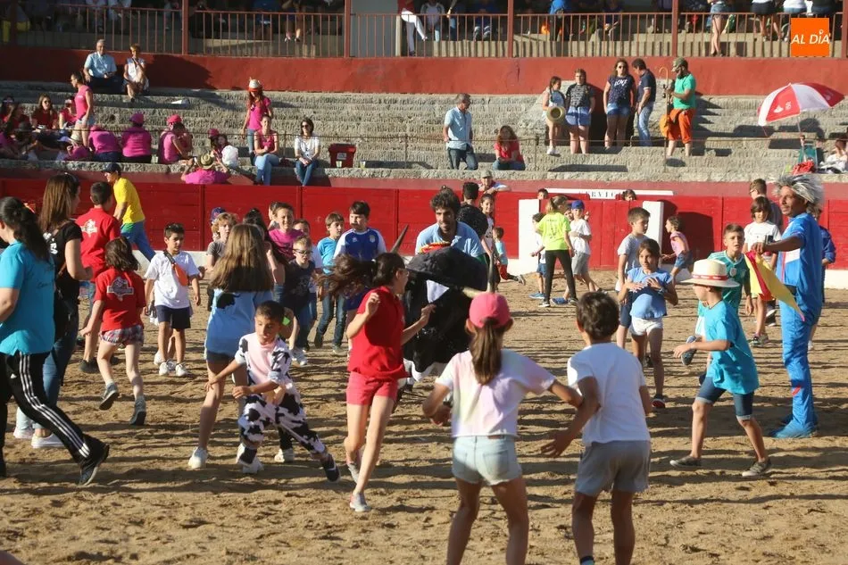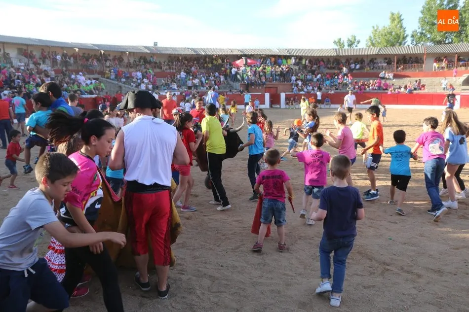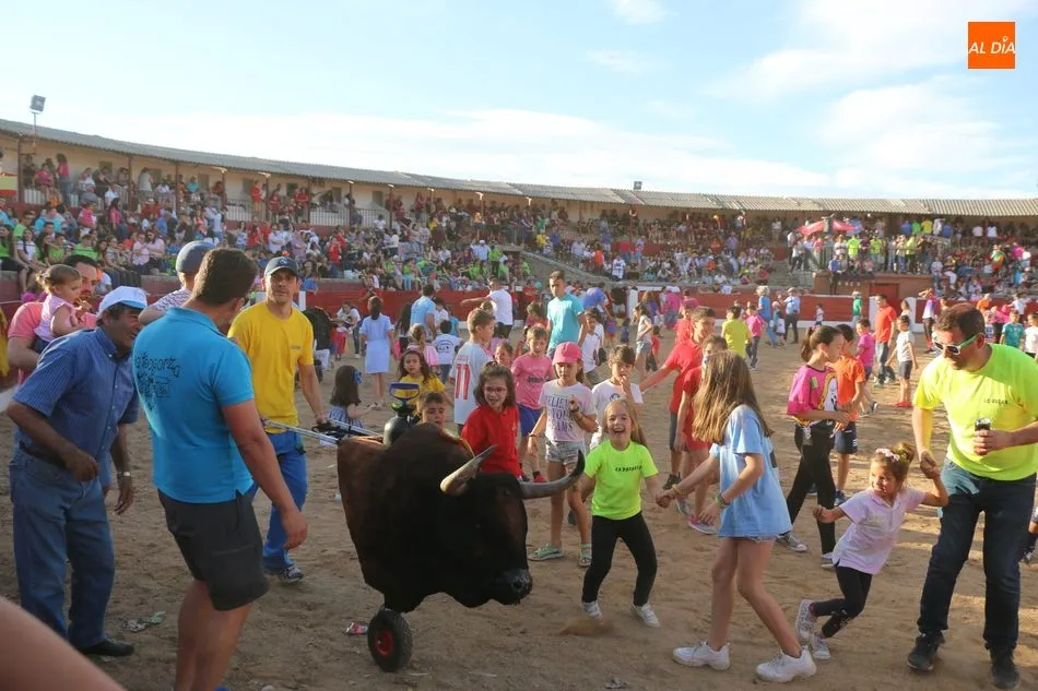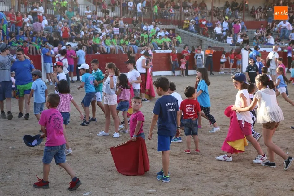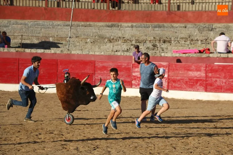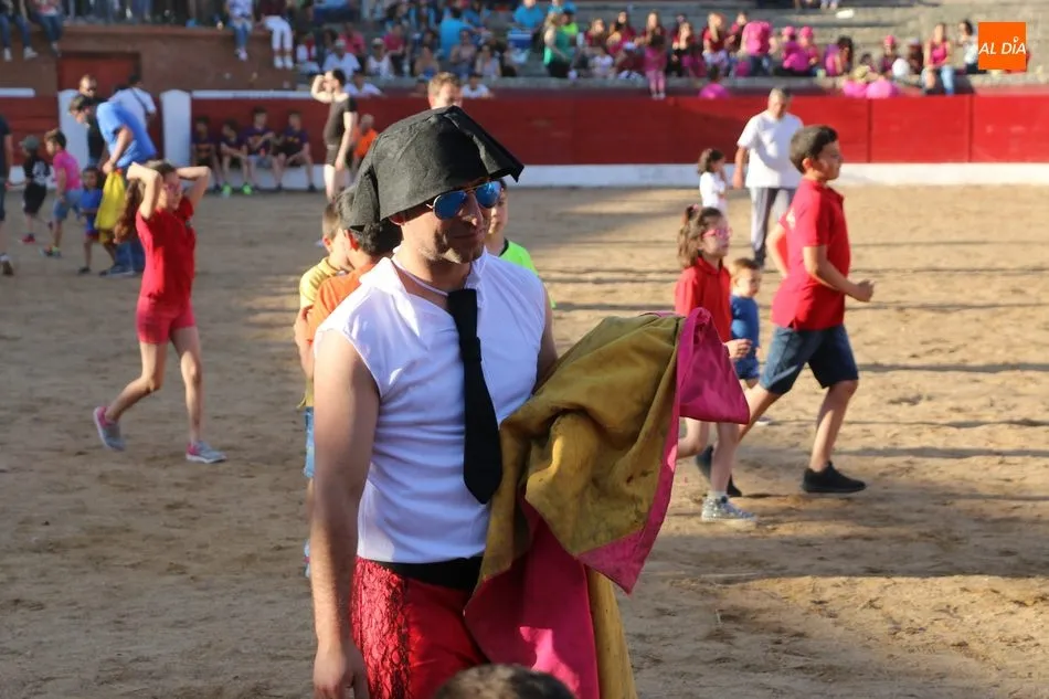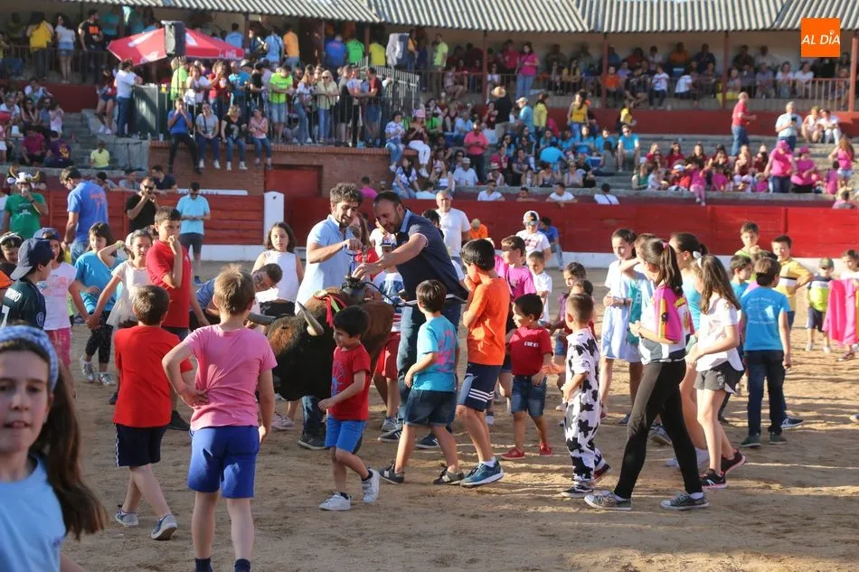 A continuación saldrían dos erales más y una vaca para los aficionados, y seguidamente otra para los más pequeños y las chicas más valientes, que hubo varias. Así se llegaba a los carretones y la algarabía salía del ruedo con decenas de niños dispuestos a correr delante de los ?morlacos? de Carlos Huertos.
