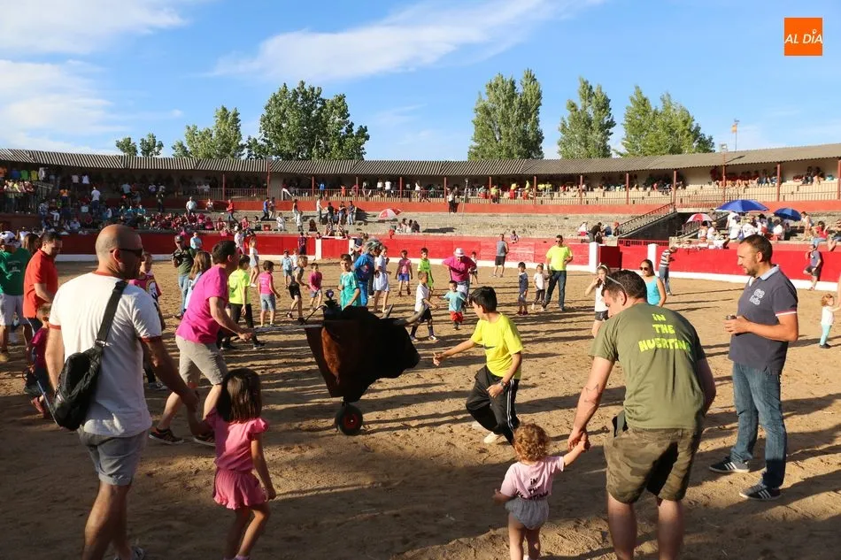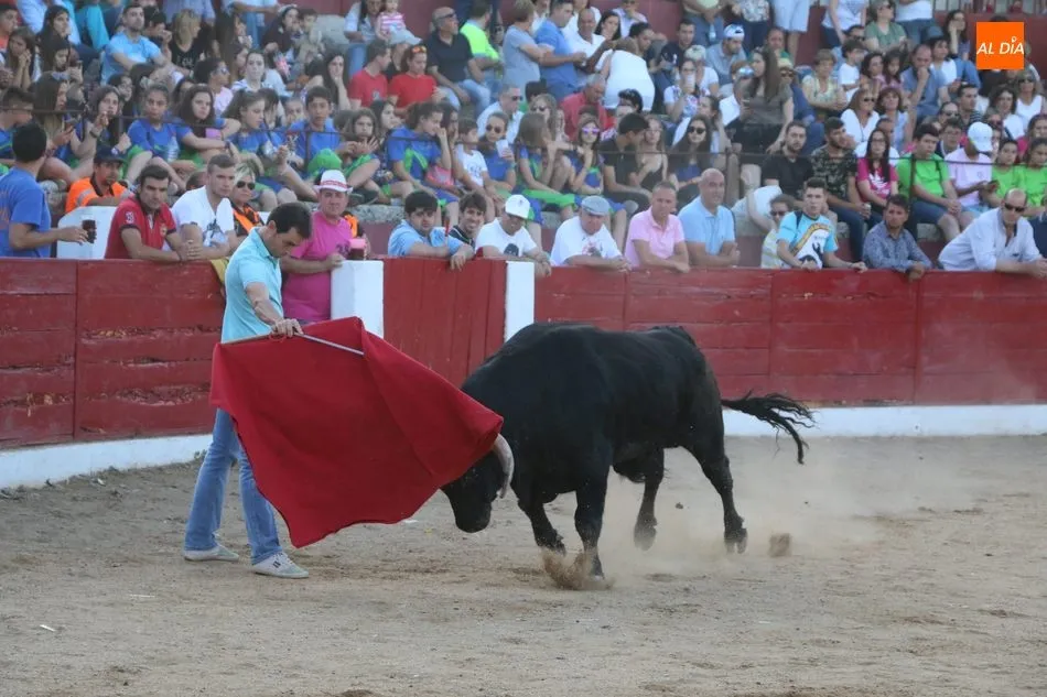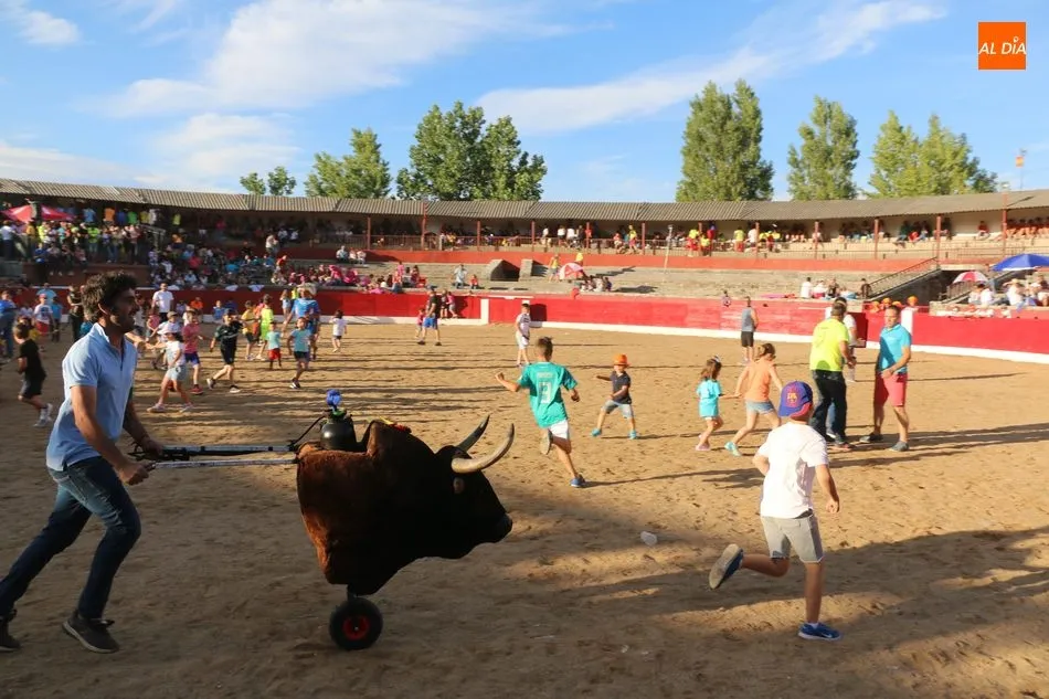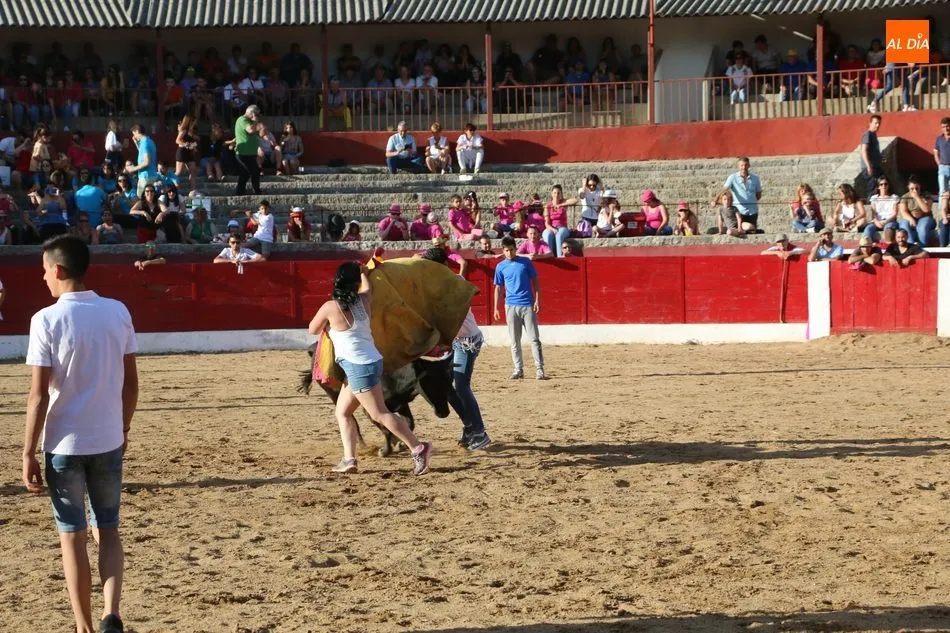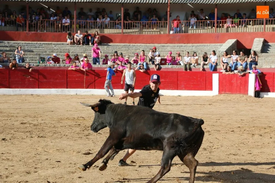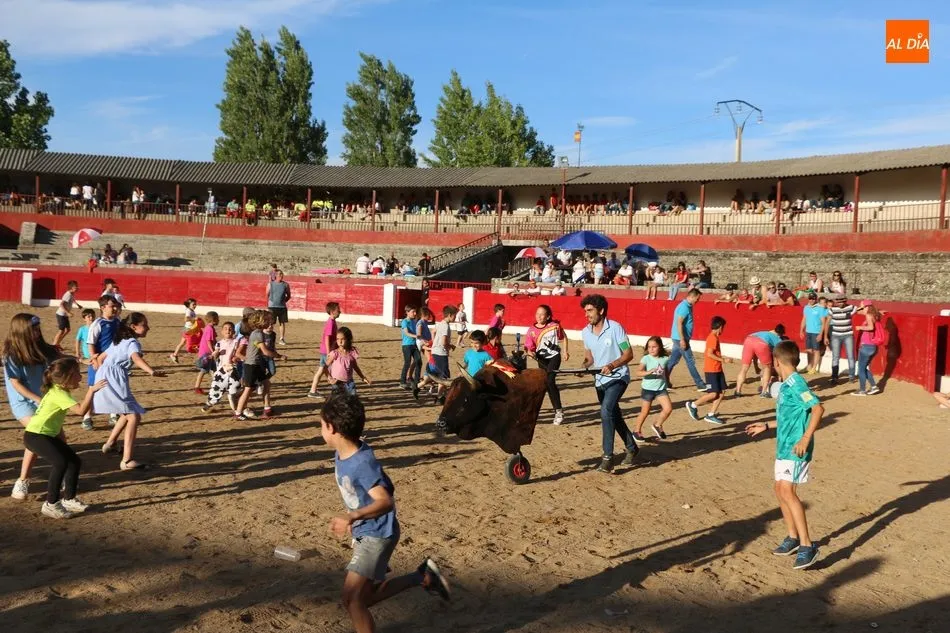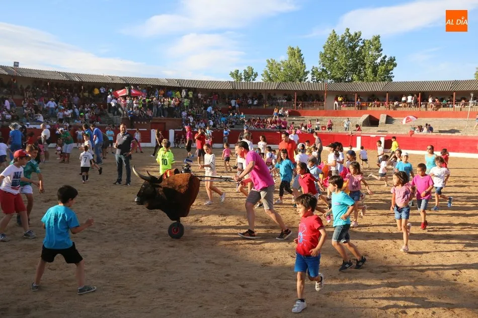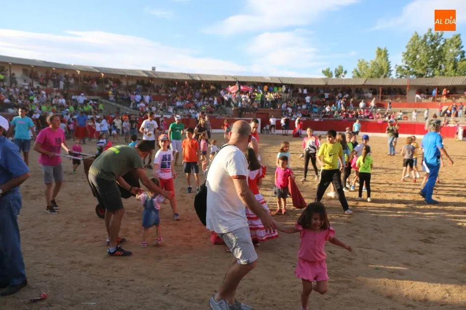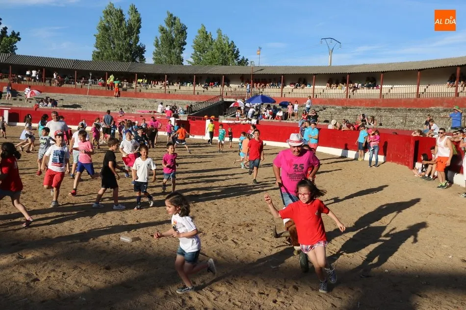A continuación saldrían dos erales más y una vaca para los aficionados, y seguidamente otra para los más pequeños y las chicas más valientes, que hubo varias. Así se llegaba a los carretones y la algarabía salía del ruedo con decenas de niños dispuestos a correr delante de los ?morlacos? de Carlos Huertos.