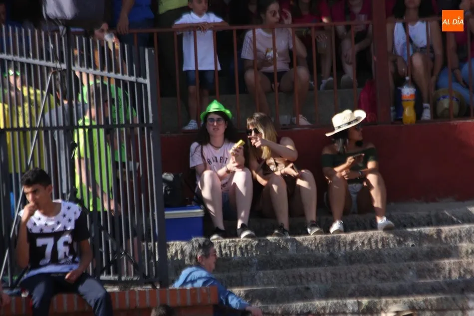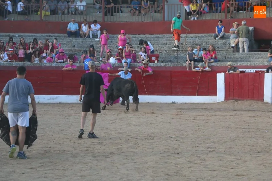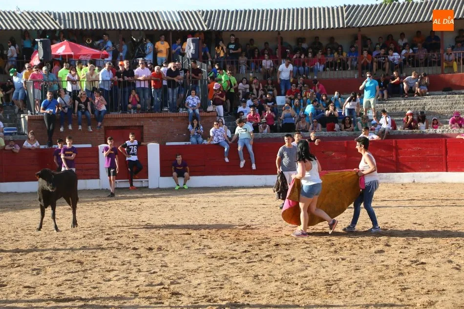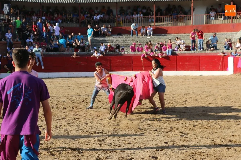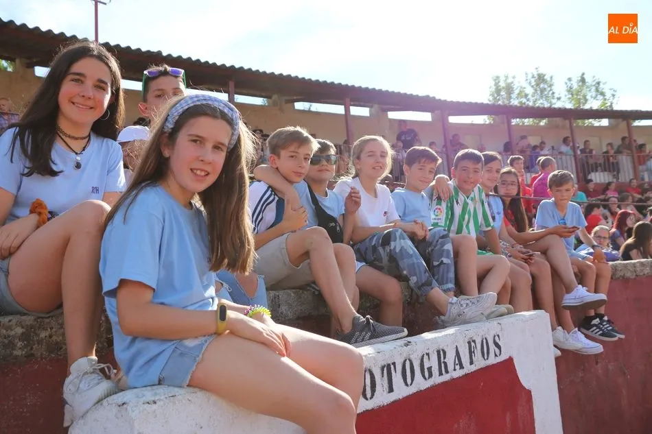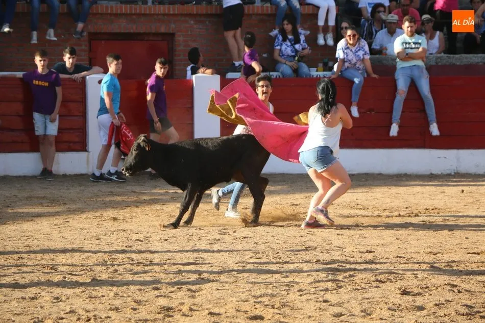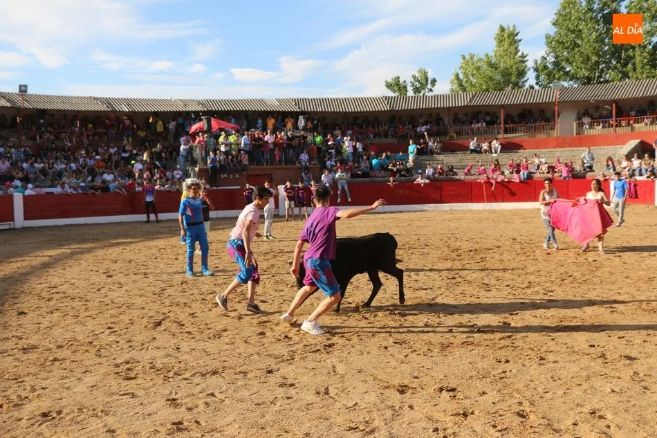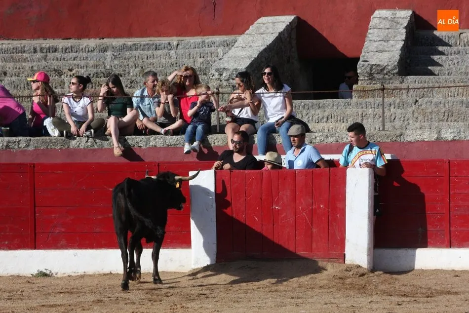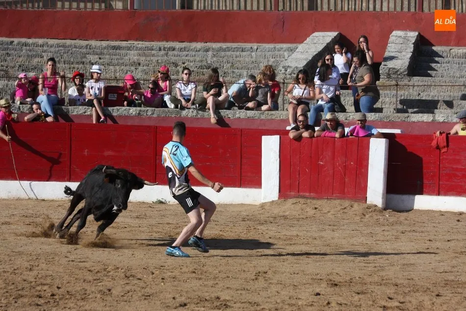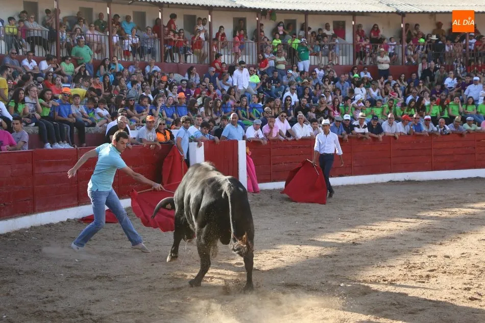 A continuación saldrían dos erales más y una vaca para los aficionados, y seguidamente otra para los más pequeños y las chicas más valientes, que hubo varias. Así se llegaba a los carretones y la algarabía salía del ruedo con decenas de niños dispuestos a correr delante de los ?morlacos? de Carlos Huertos.