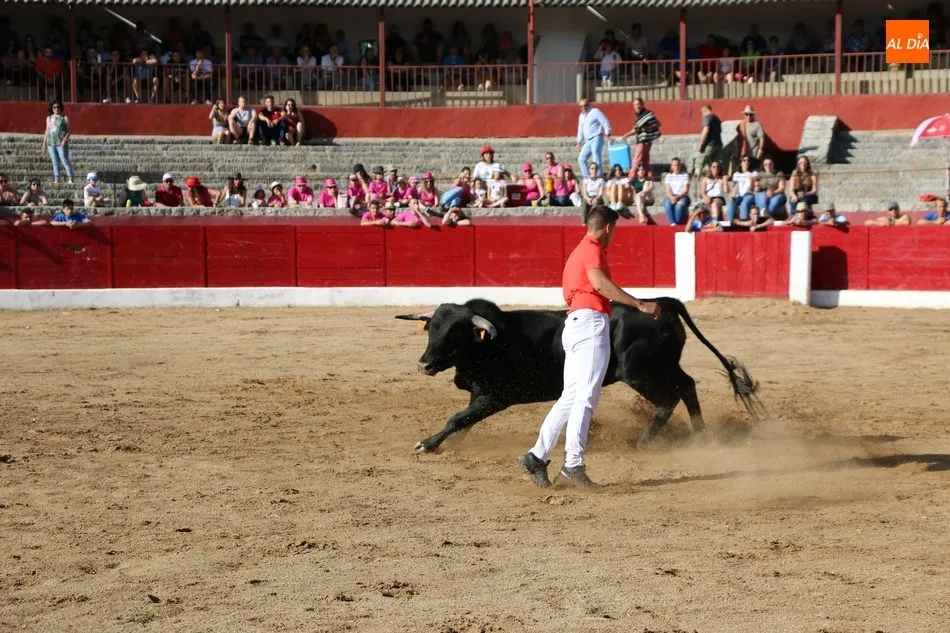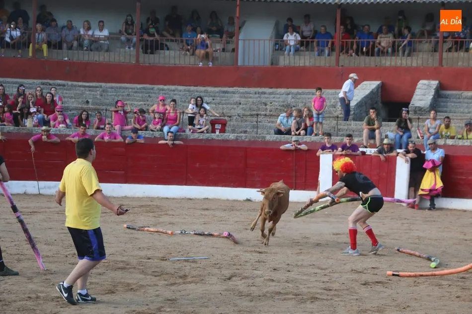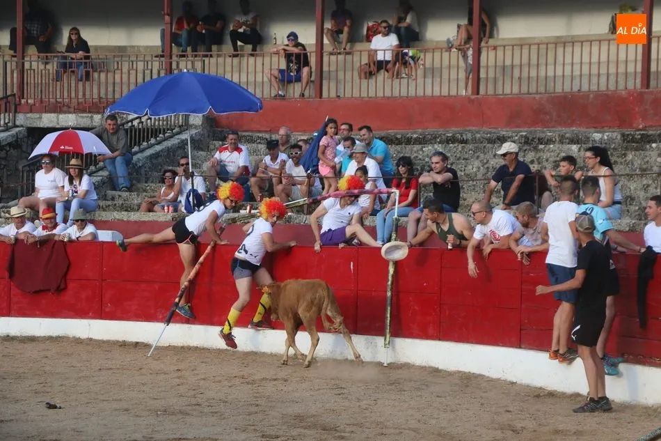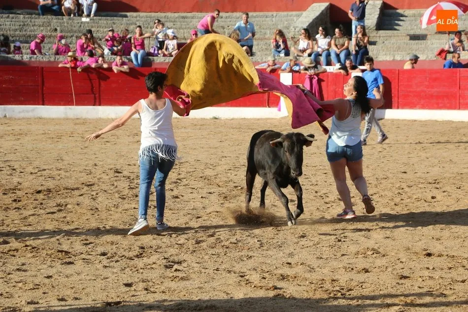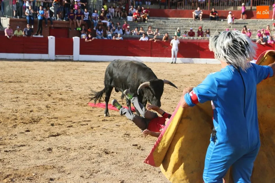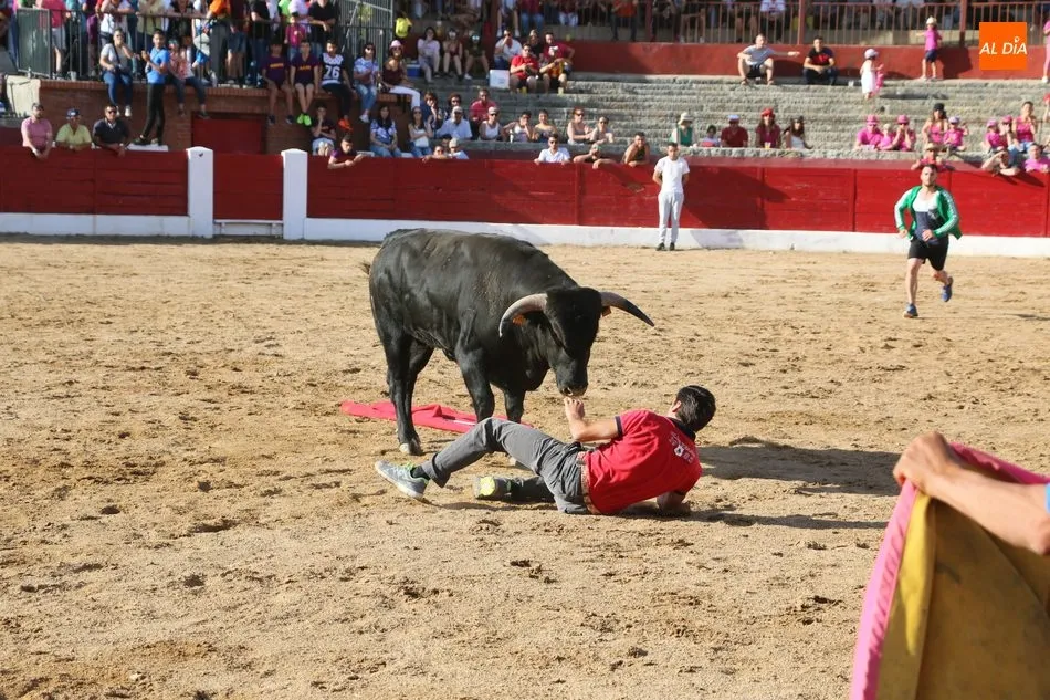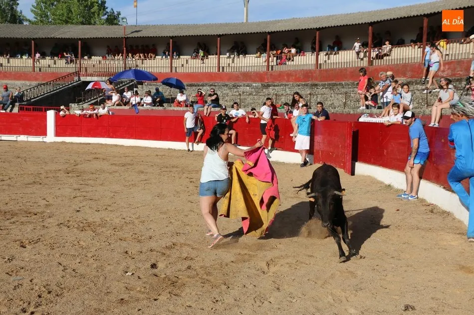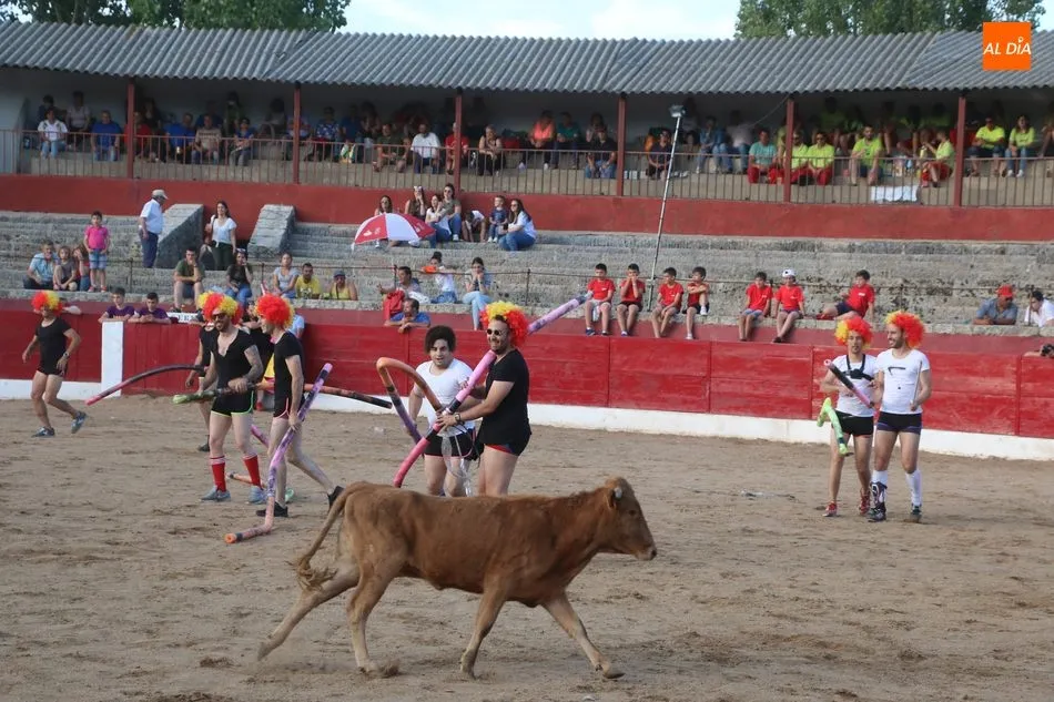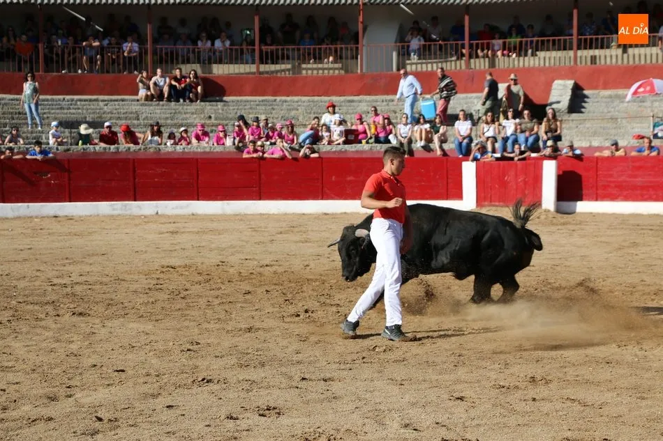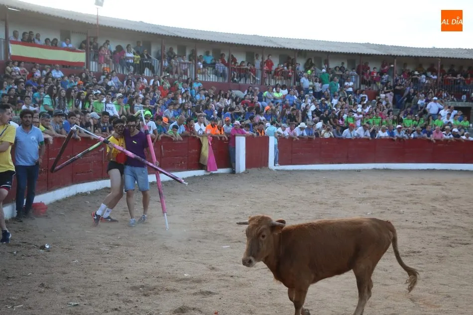 A continuación saldrían dos erales más y una vaca para los aficionados, y seguidamente otra para los más pequeños y las chicas más valientes, que hubo varias. Así se llegaba a los carretones y la algarabía salía del ruedo con decenas de niños dispuestos a correr delante de los ?morlacos? de Carlos Huertos.