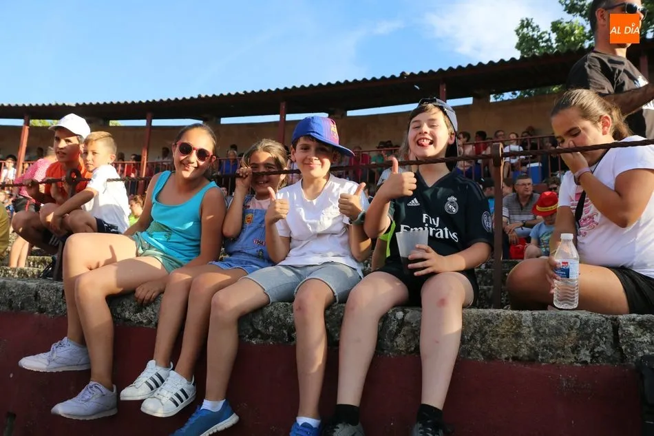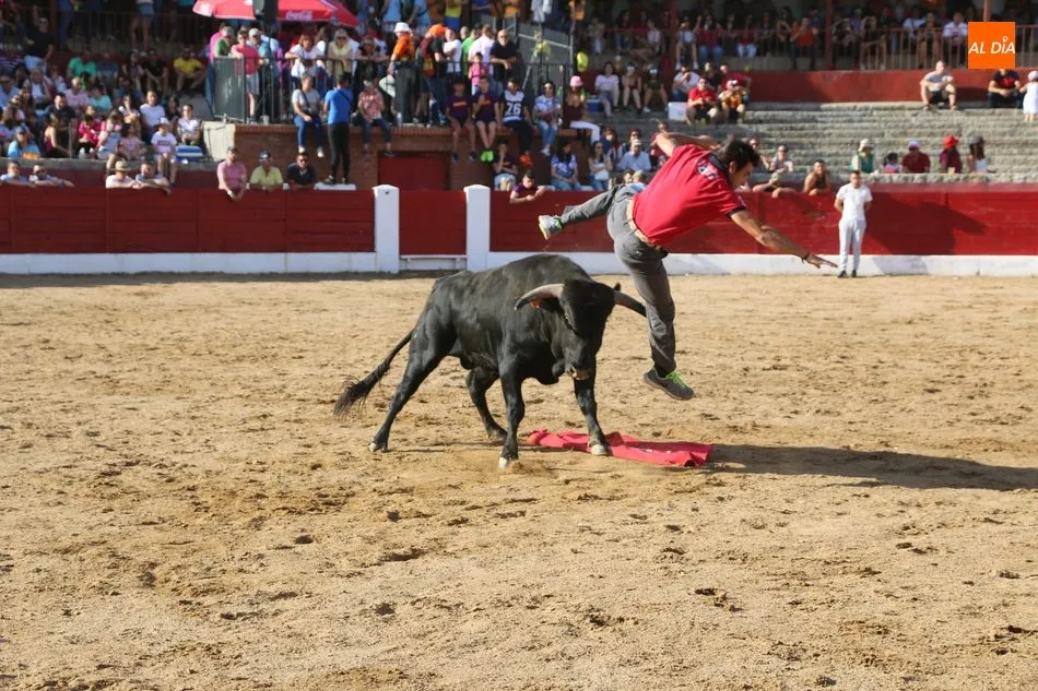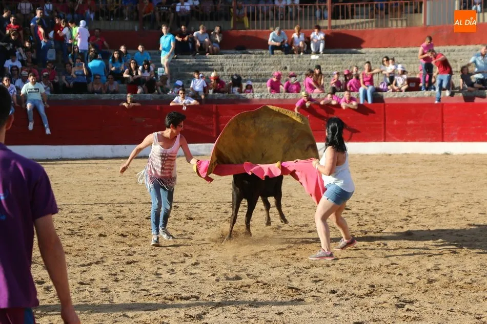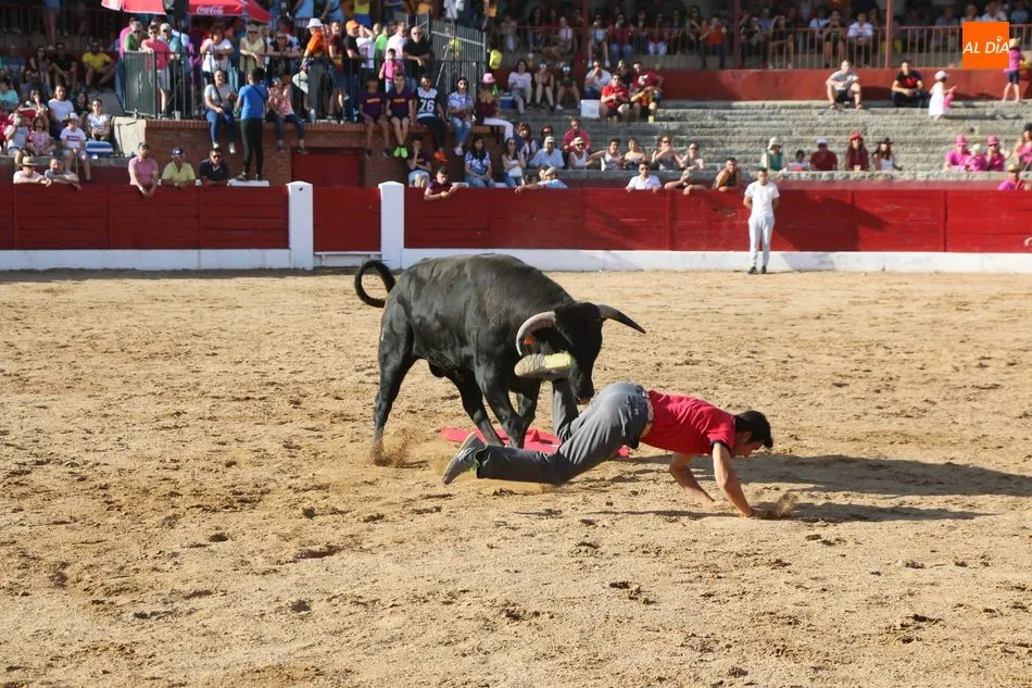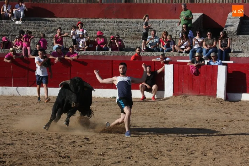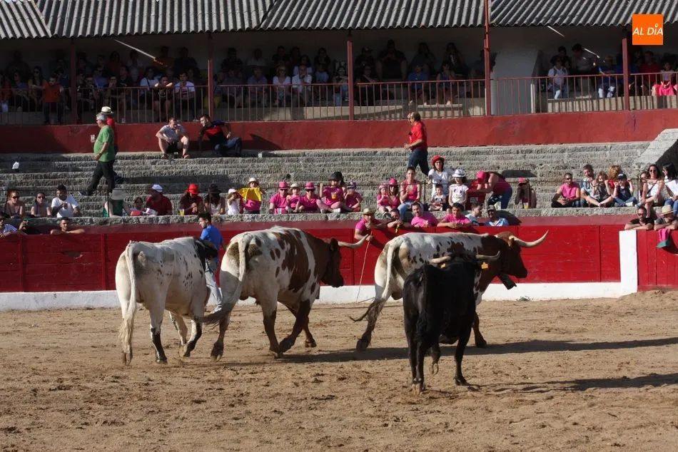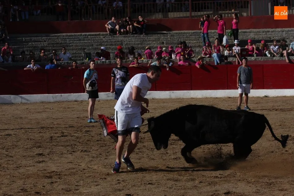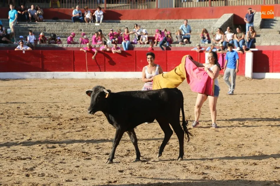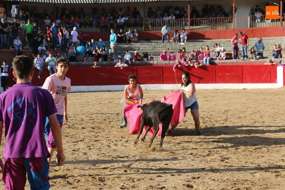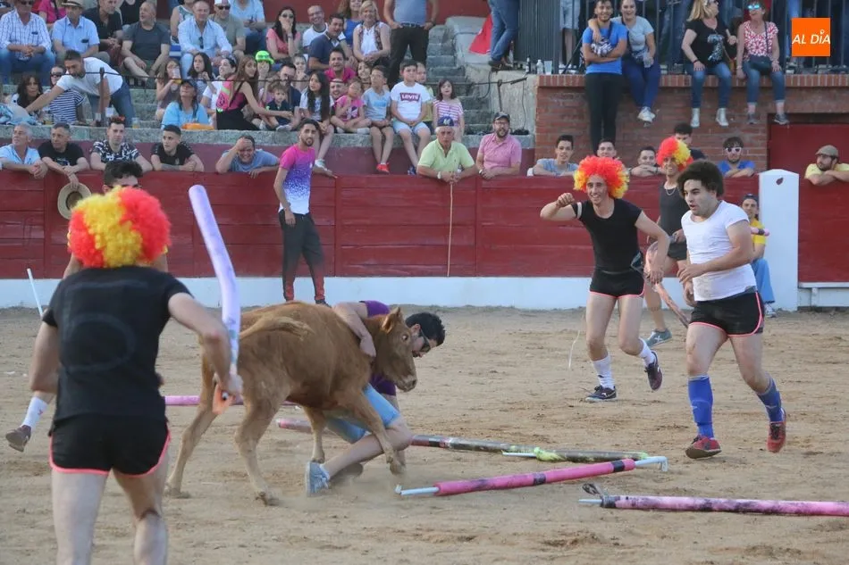 A continuación saldrían dos erales más y una vaca para los aficionados, y seguidamente otra para los más pequeños y las chicas más valientes, que hubo varias. Así se llegaba a los carretones y la algarabía salía del ruedo con decenas de niños dispuestos a correr delante de los ?morlacos? de Carlos Huertos.