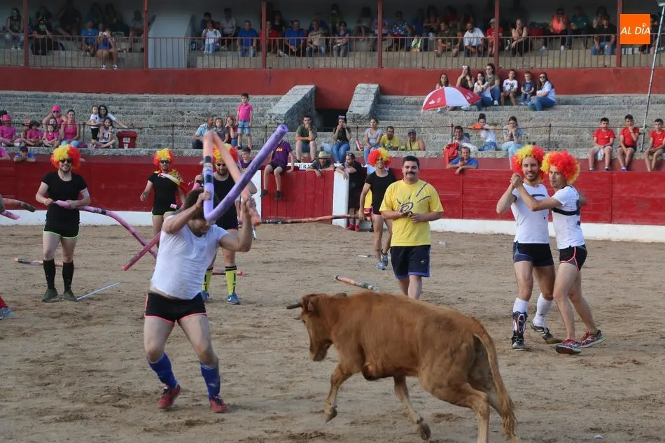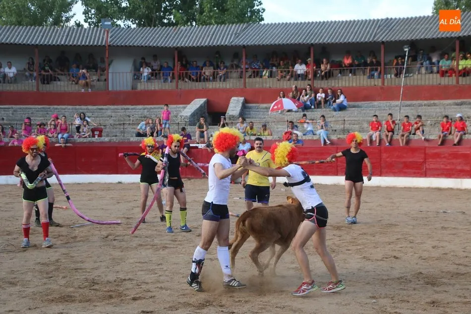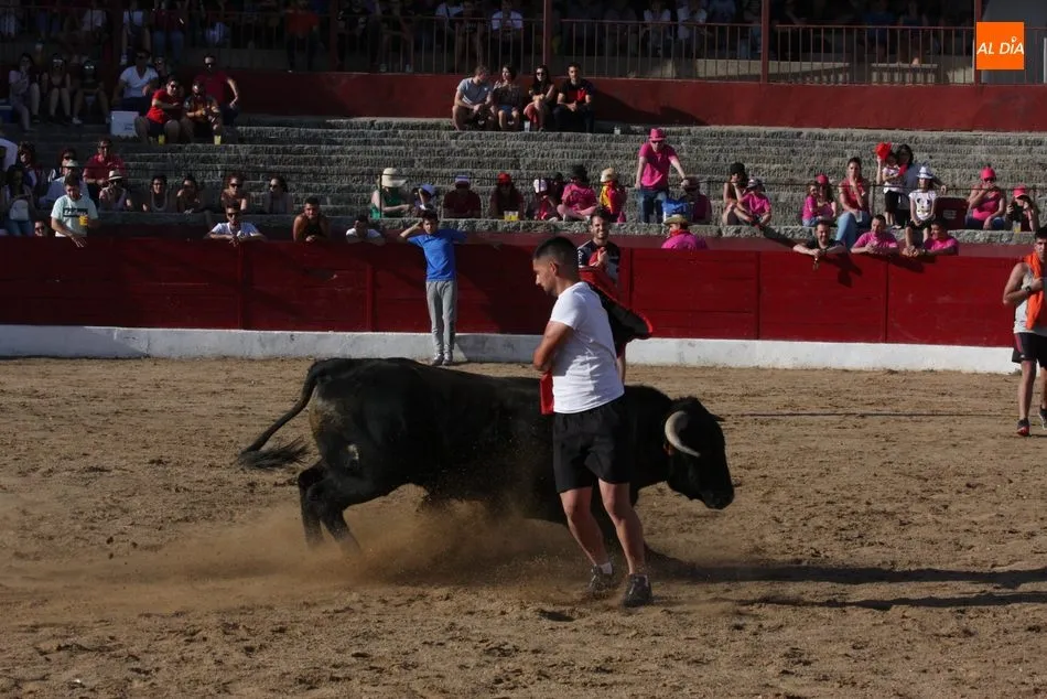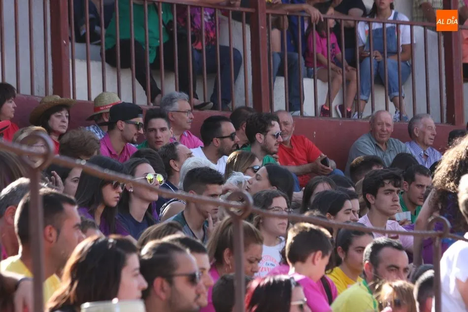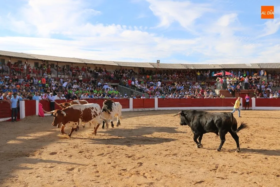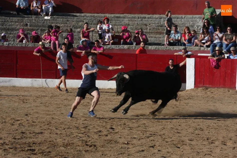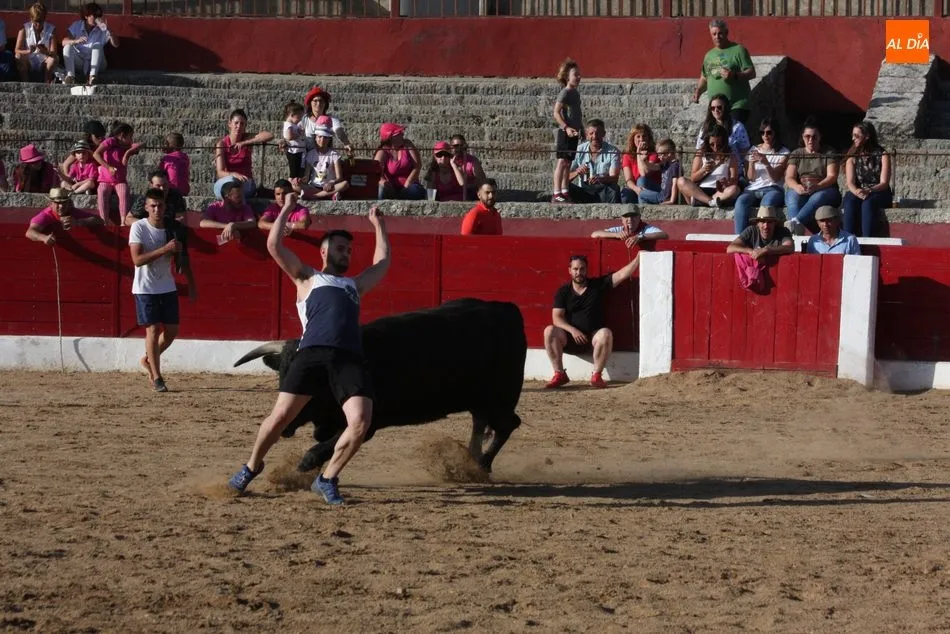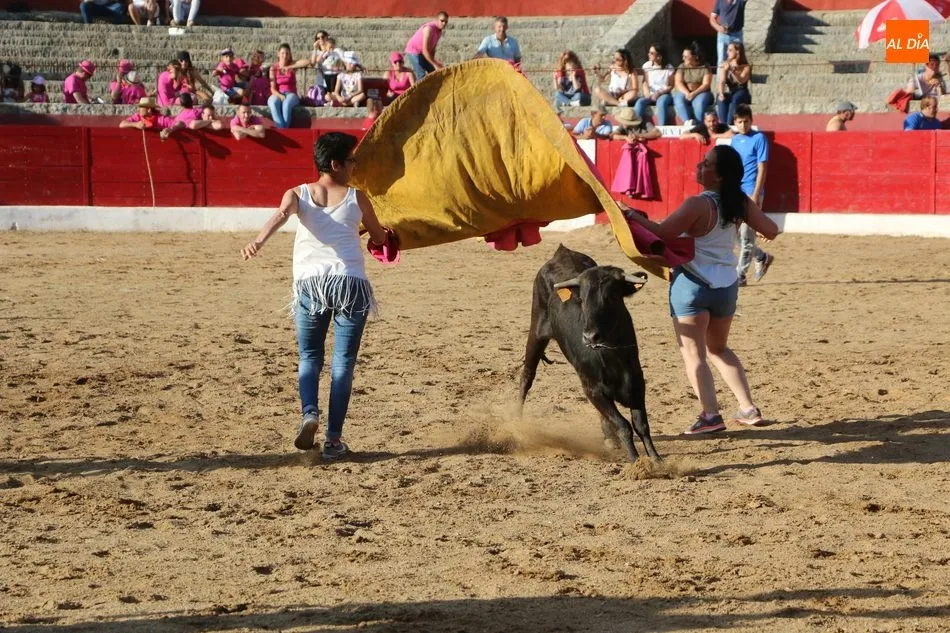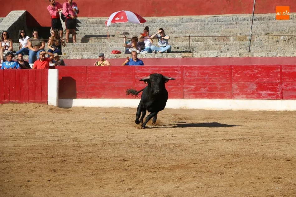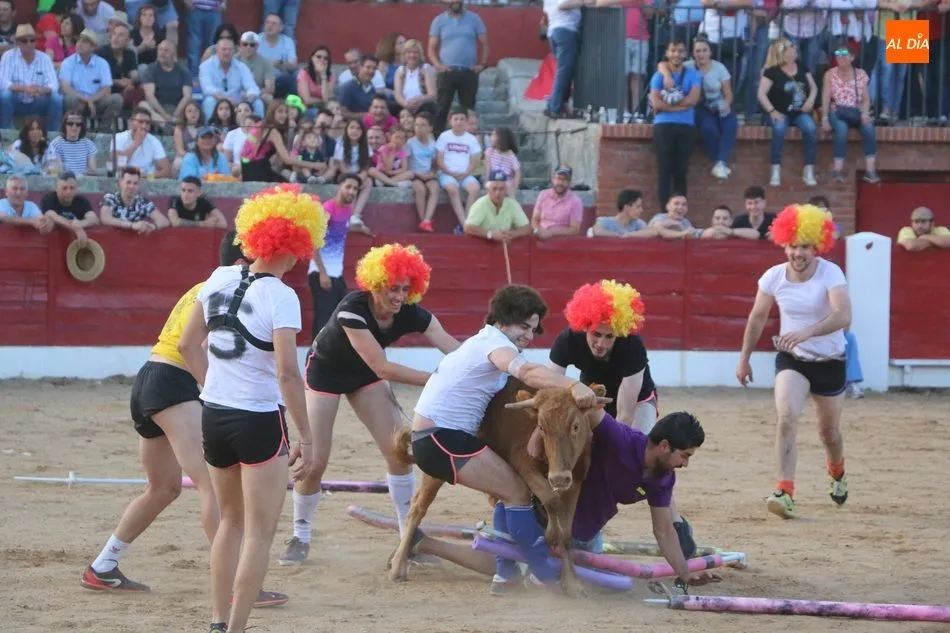 A continuación saldrían dos erales más y una vaca para los aficionados, y seguidamente otra para los más pequeños y las chicas más valientes, que hubo varias. Así se llegaba a los carretones y la algarabía salía del ruedo con decenas de niños dispuestos a correr delante de los ?morlacos? de Carlos Huertos.