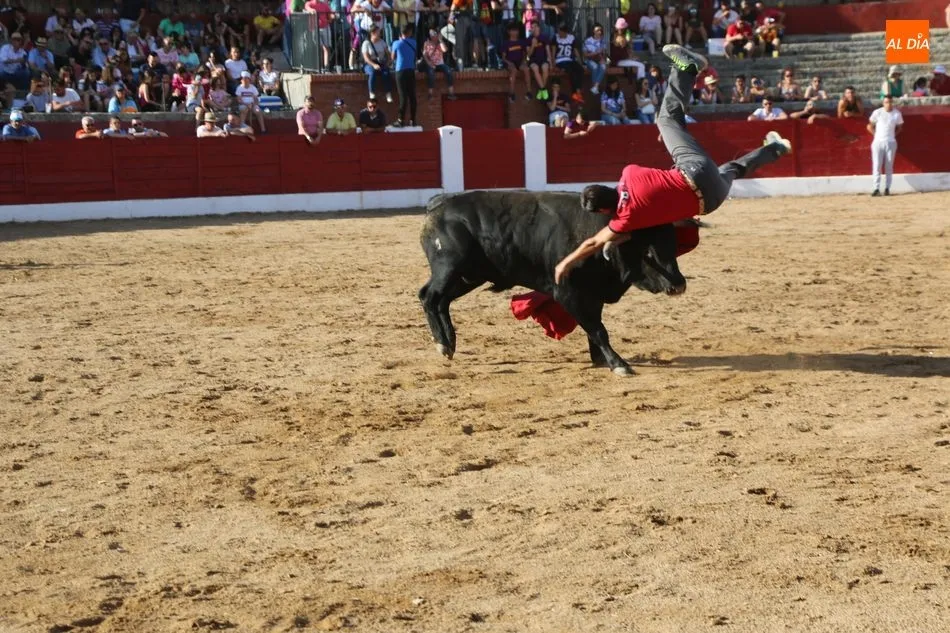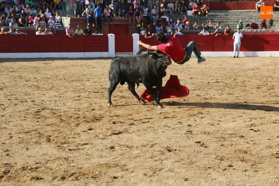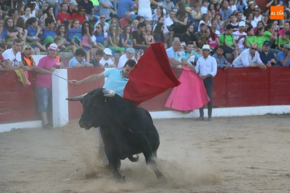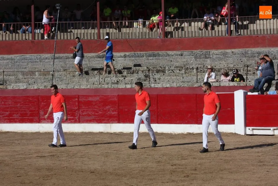 El festejo comenzaba con una exhibición de recortes a cargo de Luisán Martín, de Santa de Marta; Arturo Tapia, de San Pelayo de la Guareña; y Jhonatan Sánchez, de Mieza, y que ofrecieron un bonito espectáculo ayudados por un extraordinario novillo de Cilleros, siempre presto a embestir desde lejos.