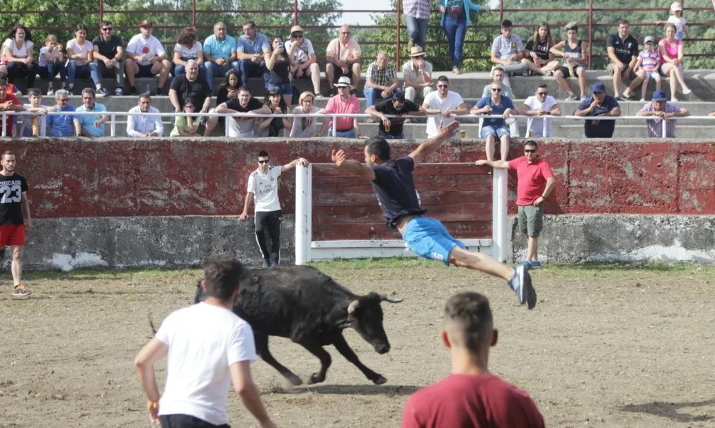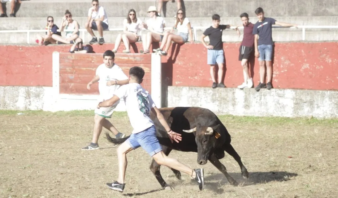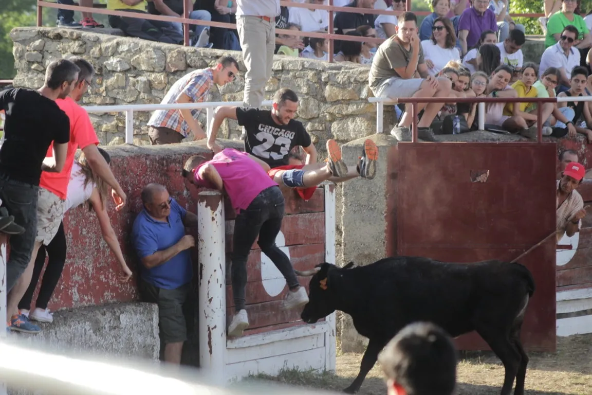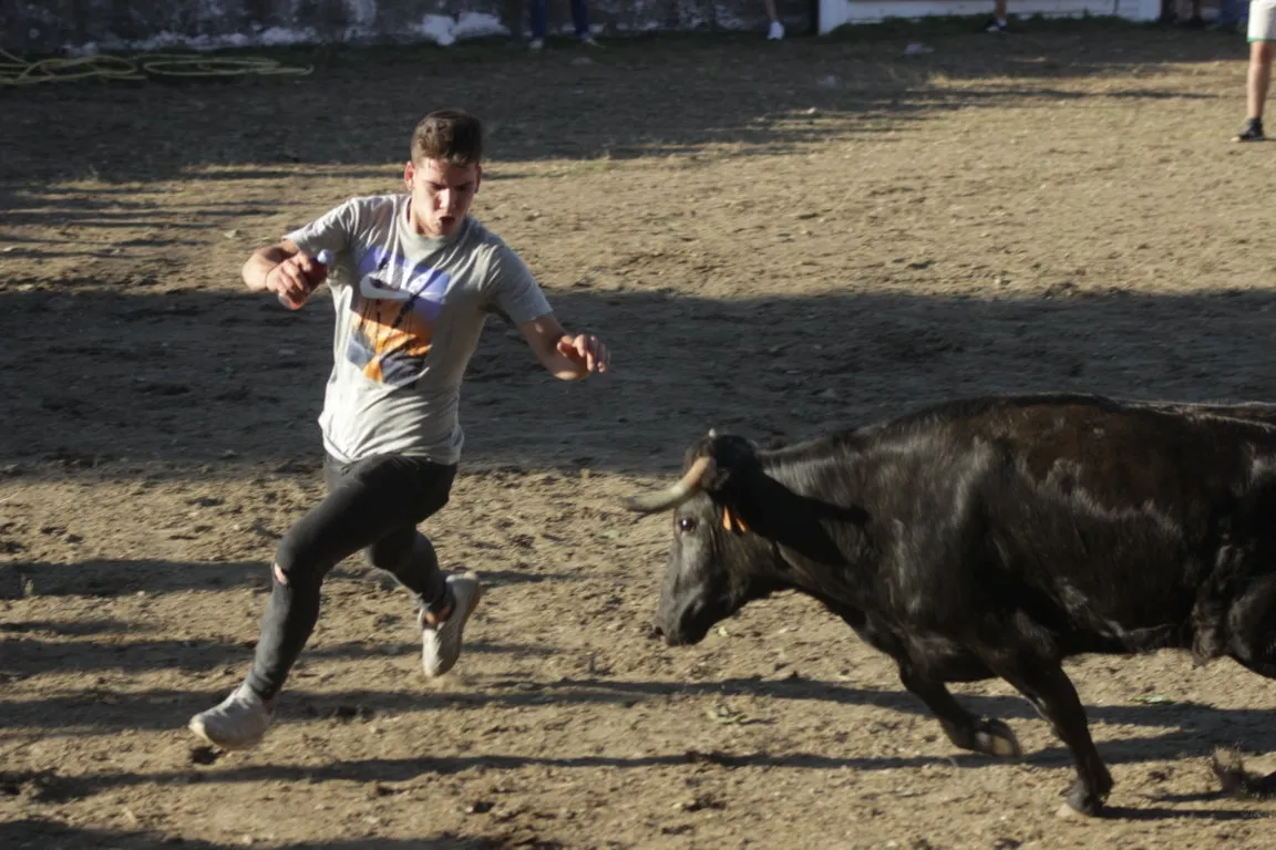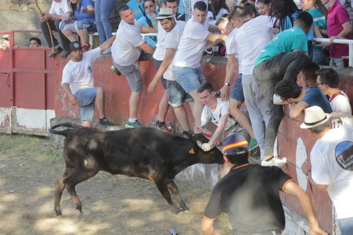 La tarde de sábado de las fiestas de San Juan en Navasfrías incluyó una nueva cita taurina, en este caso una capea de vaquillas en la plaza fija de la localidad, que contó con la animación musical de la charanga Los Despistados. La capea estuvo de lo más animada, viéndose una amplísima colección tanto de momentos ?buenos? como ?malos?. En el primero de los capítulos, los mozos ?y algunos ya no tan mozos- que estuvieron en el coso probaron todo tipo de recortes, quiebros y saltos, viéndose varios de una bella factura.