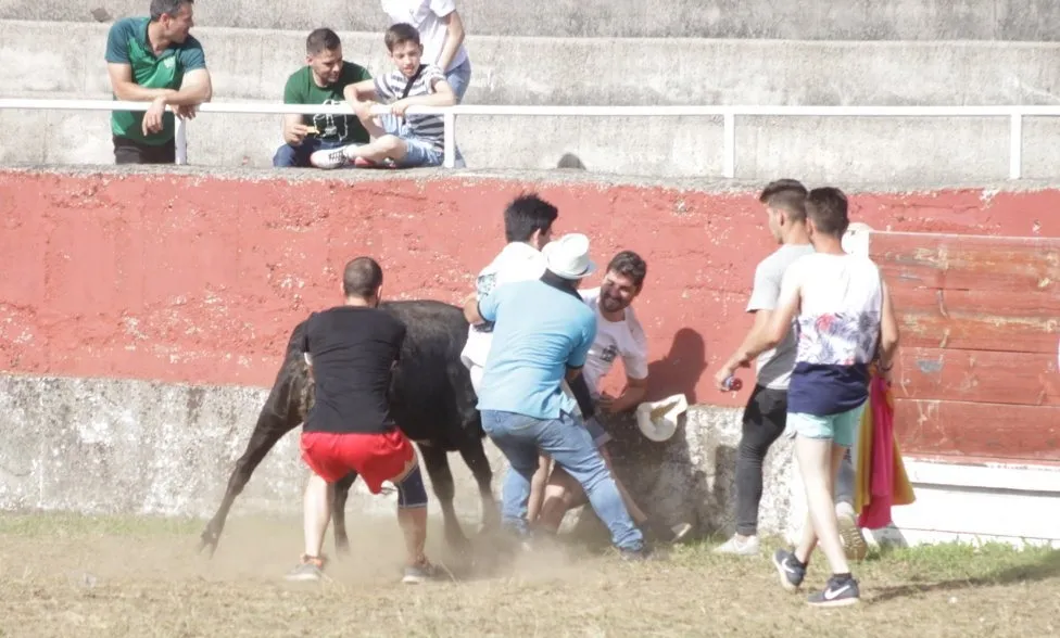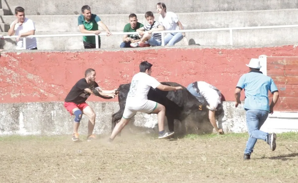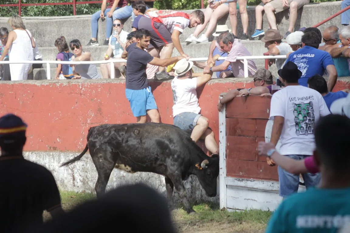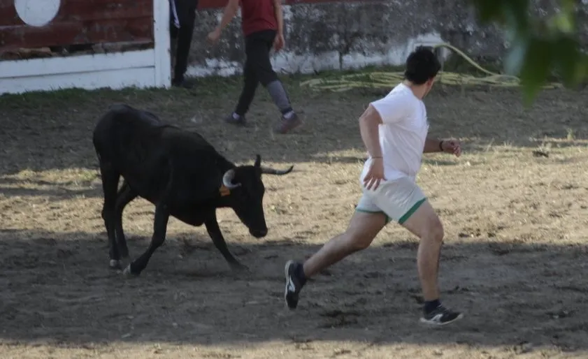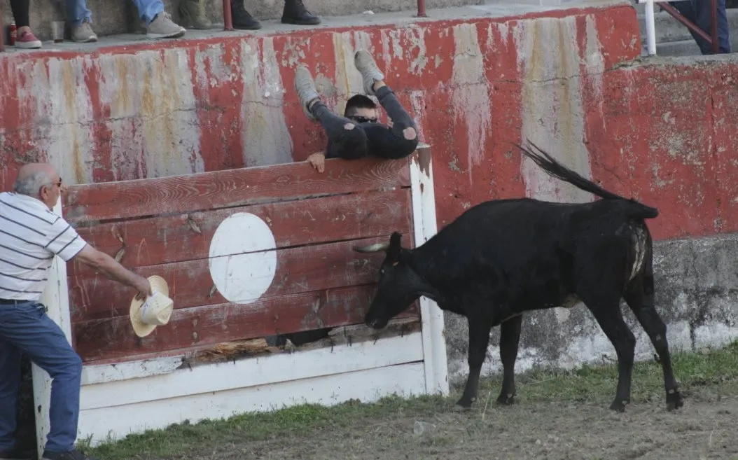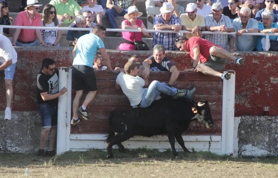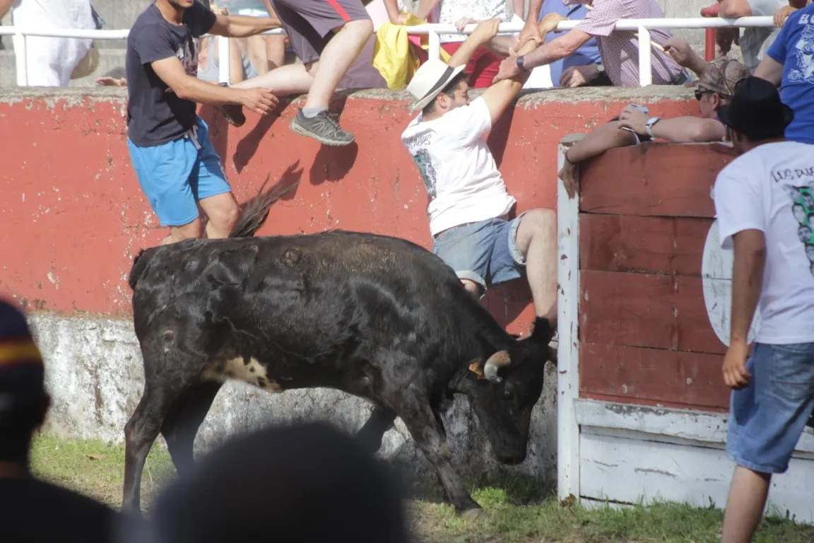 Mientras, en el capítulo de los momentos ?malos?, las vacas volvieron a mostrarse muy peleonas, deparando unos cuantos momentos de apuro, incluido varios revolcones, especialmente un par contra la pared del coso. Como es lógico, cuando esos momentos se produjeron rápidamente salieron al quite otros mozos, viviéndose en una ocasión incluso un momento que parecía de los forcados de la vecina Portugal.