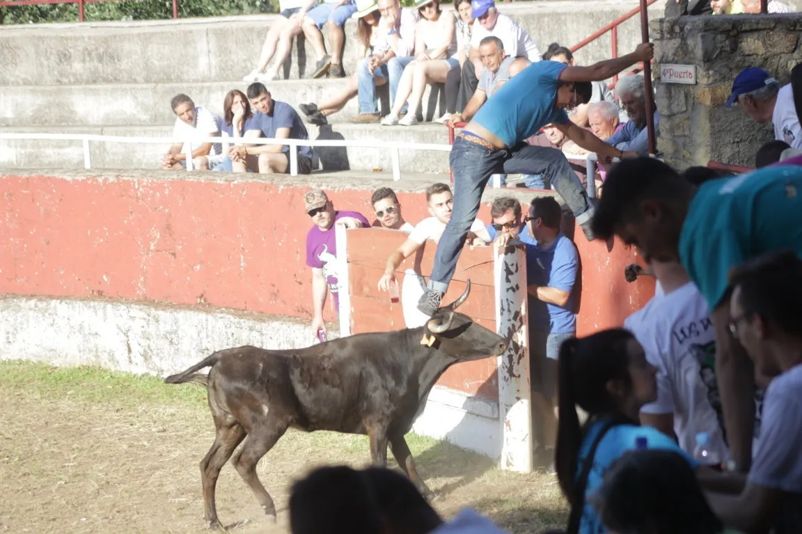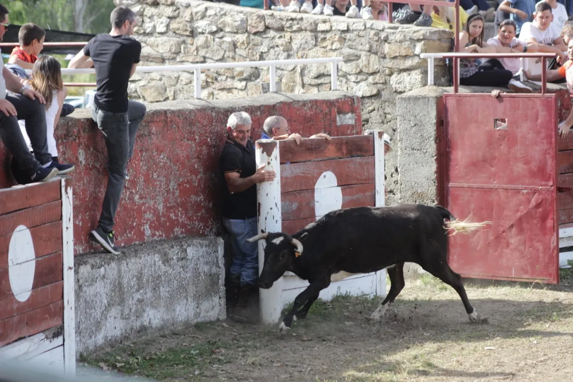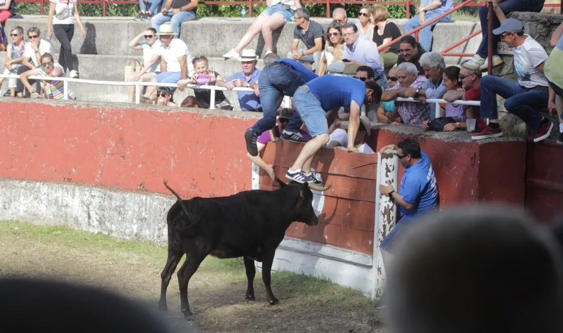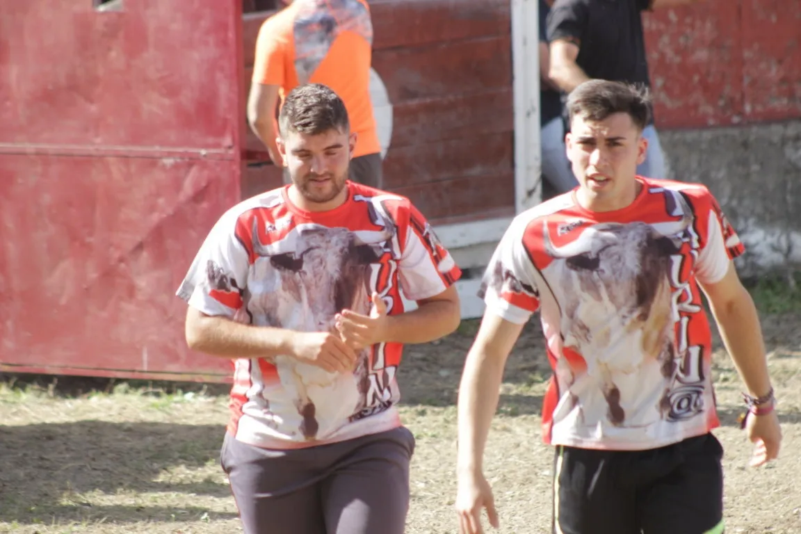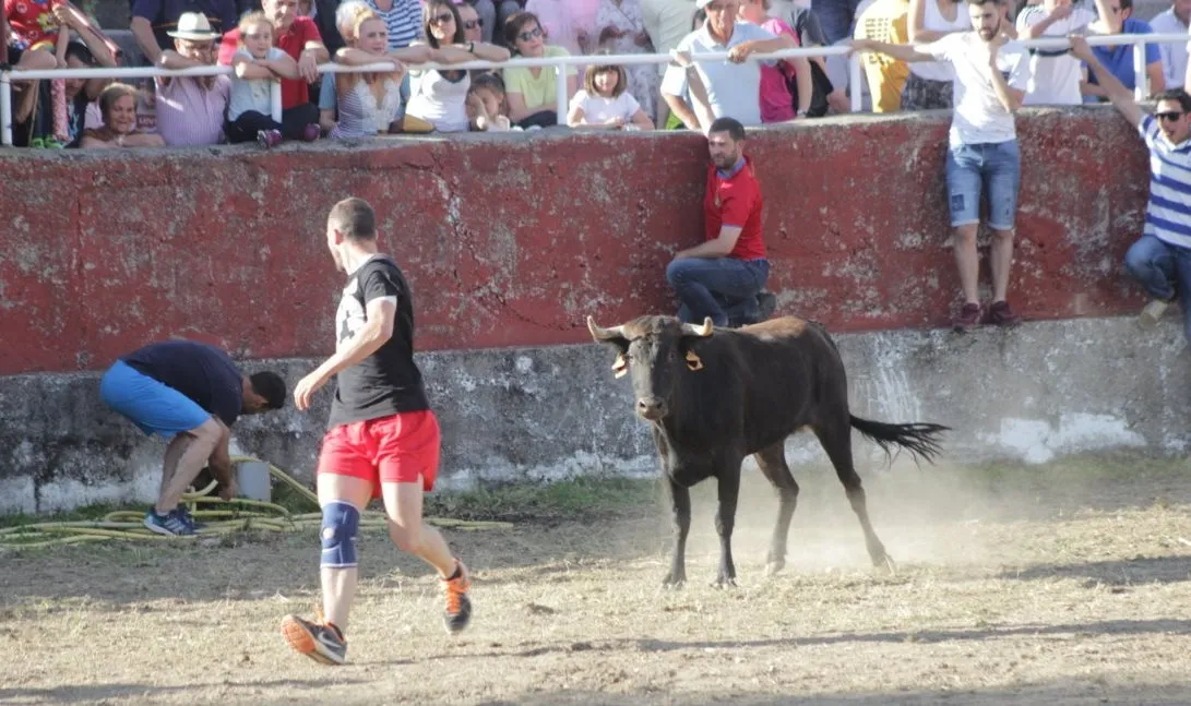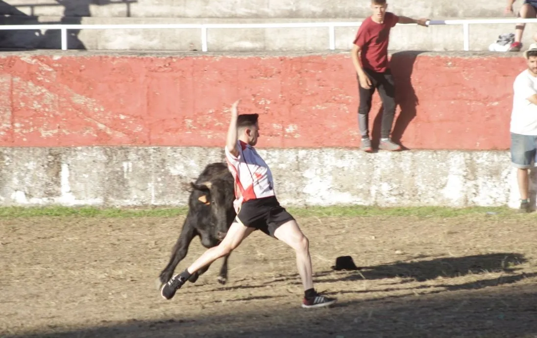 Mientras, en el capítulo de los momentos ?malos?, las vacas volvieron a mostrarse muy peleonas, deparando unos cuantos momentos de apuro, incluido varios revolcones, especialmente un par contra la pared del coso. Como es lógico, cuando esos momentos se produjeron rápidamente salieron al quite otros mozos, viviéndose en una ocasión incluso un momento que parecía de los forcados de la vecina Portugal.