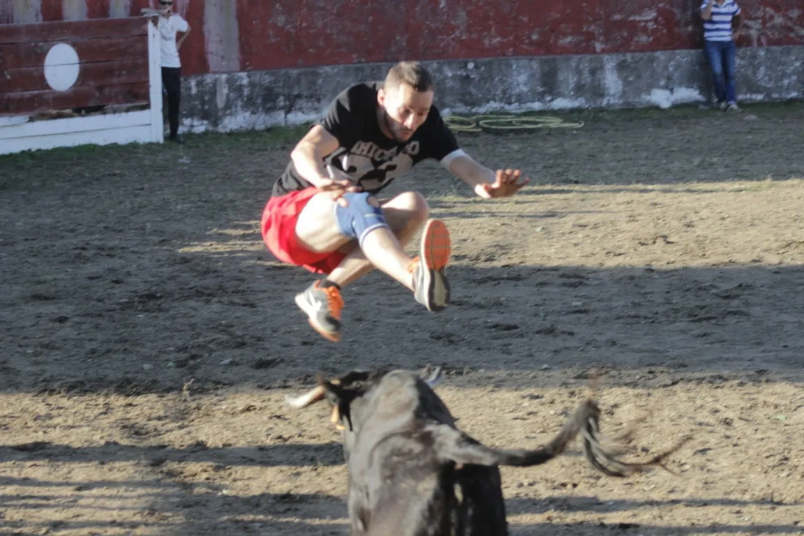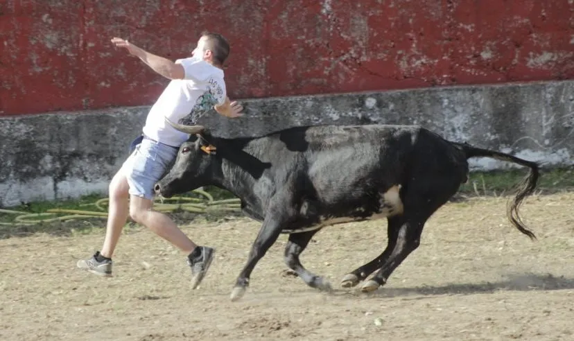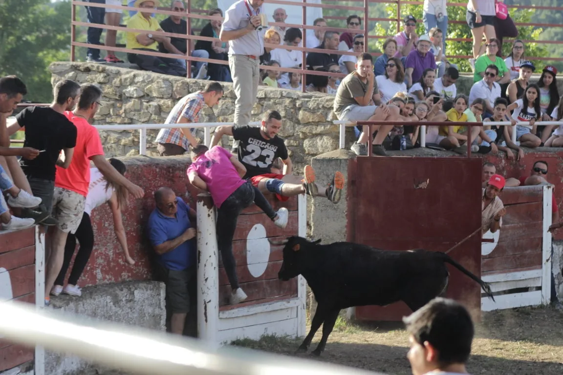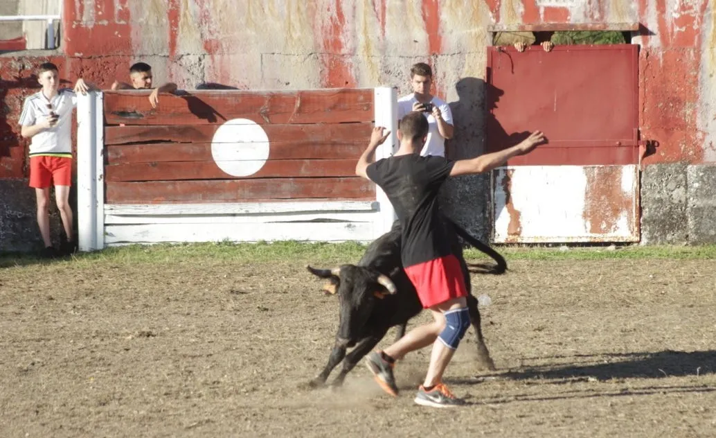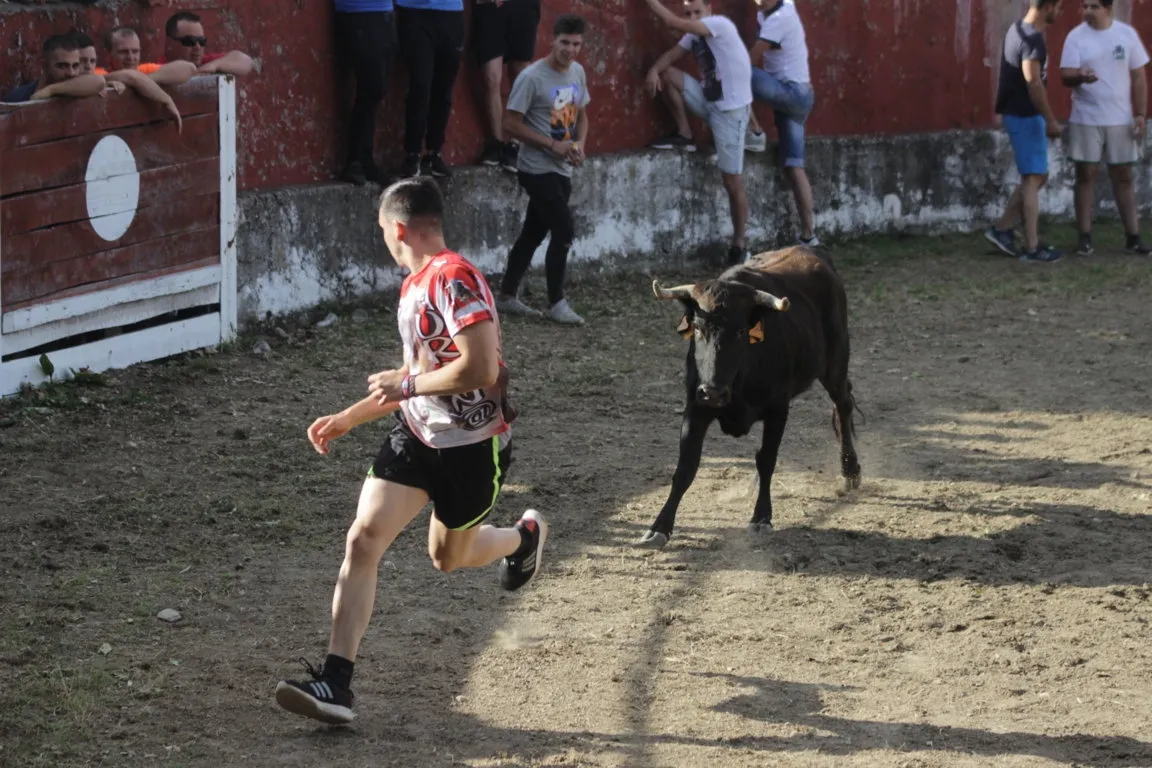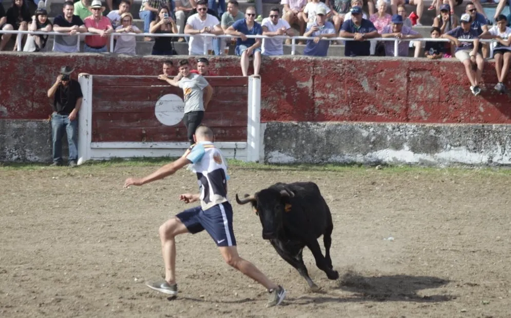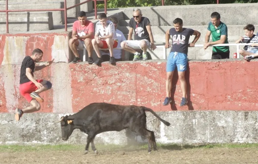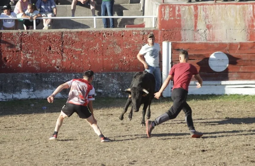 Mientras, en el capítulo de los momentos ?malos?, las vacas volvieron a mostrarse muy peleonas, deparando unos cuantos momentos de apuro, incluido varios revolcones, especialmente un par contra la pared del coso. Como es lógico, cuando esos momentos se produjeron rápidamente salieron al quite otros mozos, viviéndose en una ocasión incluso un momento que parecía de los forcados de la vecina Portugal.