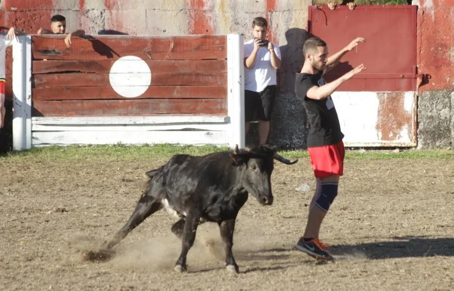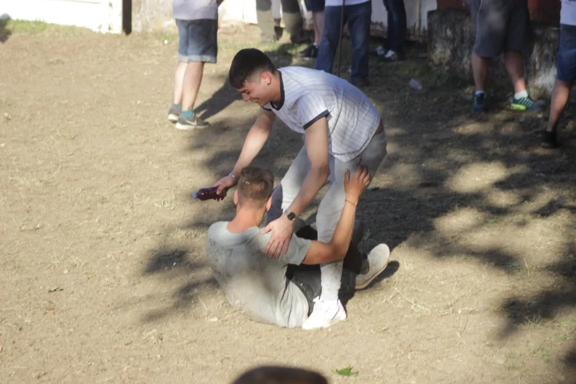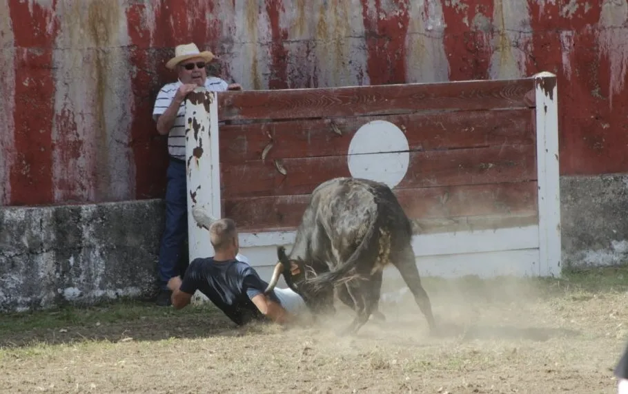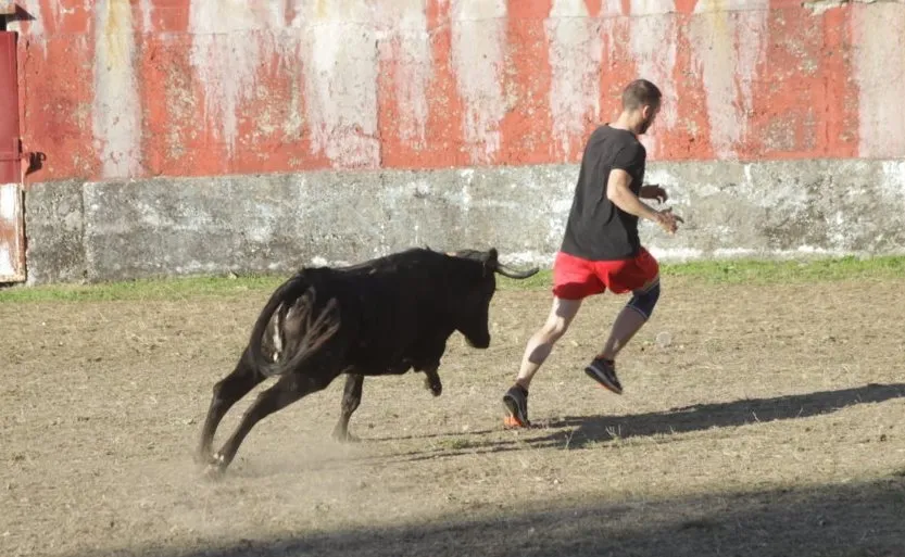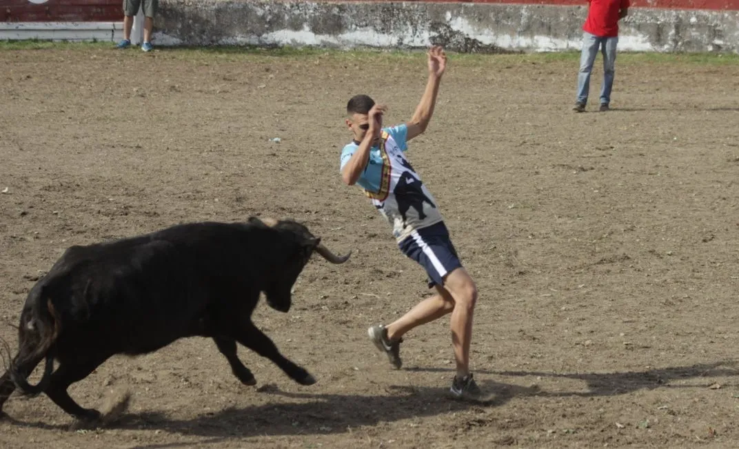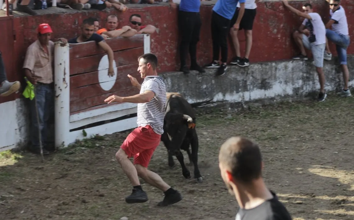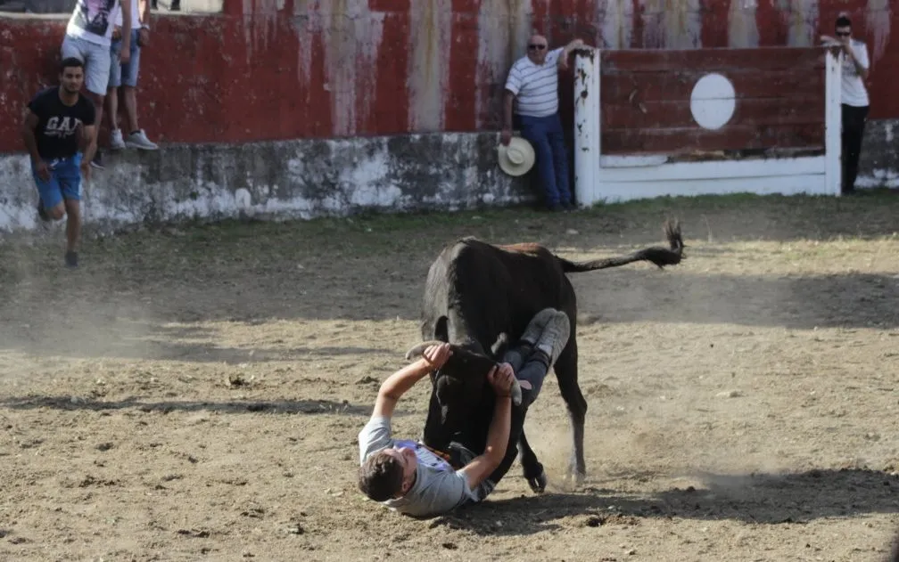 Mientras, en el capítulo de los momentos ?malos?, las vacas volvieron a mostrarse muy peleonas, deparando unos cuantos momentos de apuro, incluido varios revolcones, especialmente un par contra la pared del coso. Como es lógico, cuando esos momentos se produjeron rápidamente salieron al quite otros mozos, viviéndose en una ocasión incluso un momento que parecía de los forcados de la vecina Portugal.