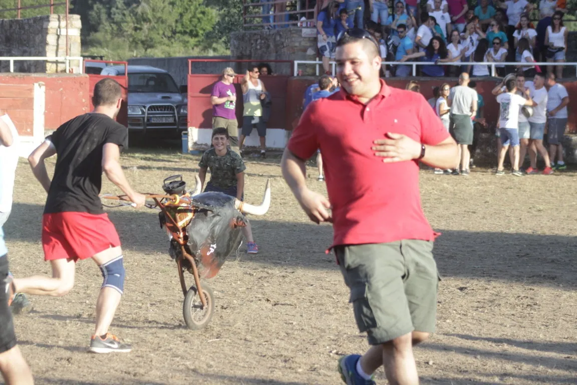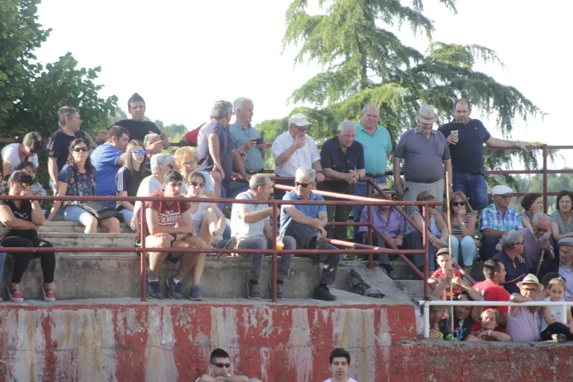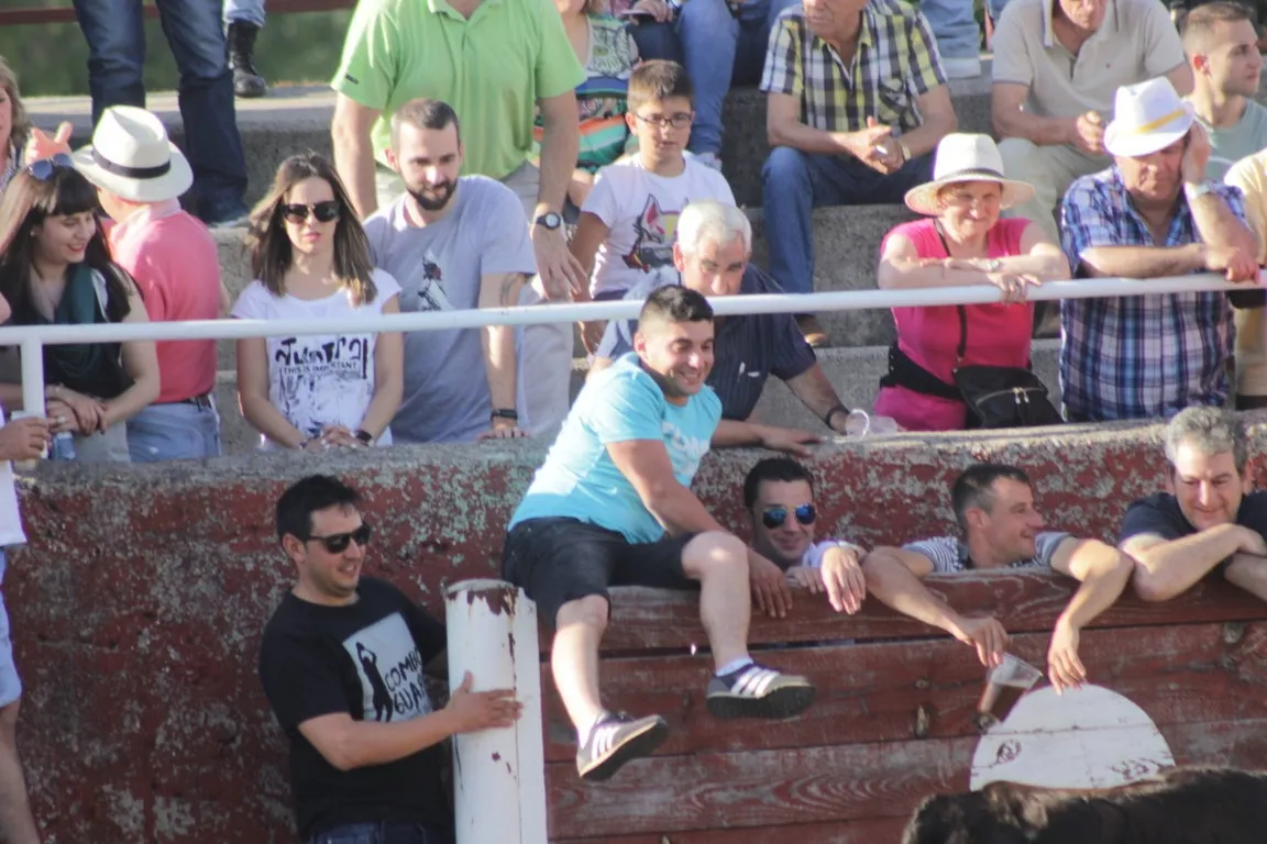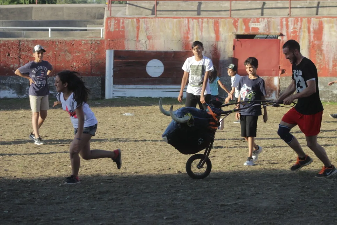 Una vez finalizó el espectáculo para los adultos, hubo un cambio de tercio para dar paso a niños, y a personas que quizás no son tan valientes para medirse a las vacas de verdad, que se enfrentaron en este caso a unos cuantos carretones sobre la misma arena. En las gradas hubo una buena asistencia de público, que optó por las zonas de sombra. A la hora de publicarse esta información, está en marcha la verbena Max Music Show + Tributo.