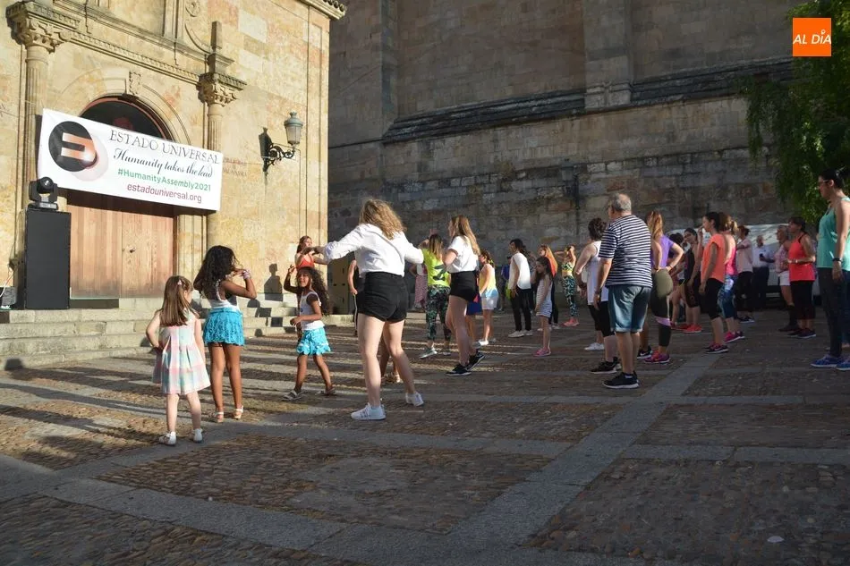 La Plaza de Anaya ha acogido esta tarde una solidaria propuesta titulada ?Bailarán por la paz? en la que han participado cerca de 200 personas. La actividad ha sido organizada por los promotores del proyecto de la Red Social Estado Universal (www.estadouniversal.org). Según el creador de Red Social Estado Universal, el ingeniero aeronáutico Juan Carlos Martín Yuste, se trata de primer evento en Salamanca de su proyecto, que pretende crear un espacio 'online' que sirva para impulsar una sociedad más igualitaria, comprensiva y respetuosa.
