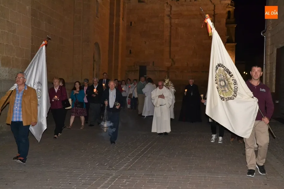 Como novedad, los participantes en esta procesión nocturna portaron velas. Al regresar a la Catedral, todavía volvieron a meterse a la misma para rematar de forma definitiva la Vigilia. Este domingo, la cita en la Seo mirobrigense será a las 12.00 horas, con la Misa Estacional presidida por Jesús García Burillo, a cuya conclusión se procesionará al Santísimo Sacramento por las calles del centro histórico.