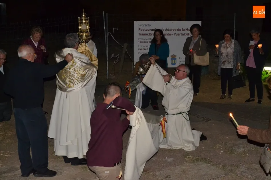 Como remate de la Vigilia, todos los presentes se dirigieron al exterior para procesionar por primera vez al Santísimo Sacramento (este domingo lo hará otra vez), quién fue llevado hasta la Brecha Grande de la Muralla, donde se impartió la bendición de campos. El encargado de portar al Santísimo fue Prudencio Manchado Vicente, asistiendo también el Administrador Apostólico Jesús García Burillo, y los sacerdotes Fernando Días Bailón y Efraín Peinado.