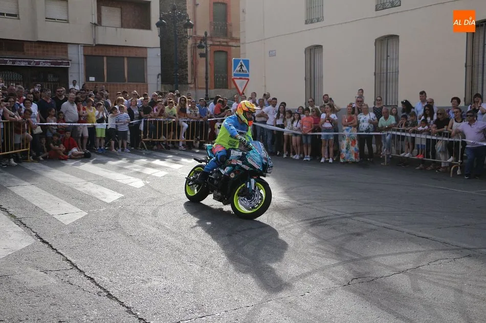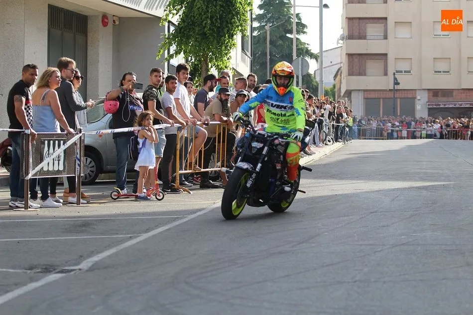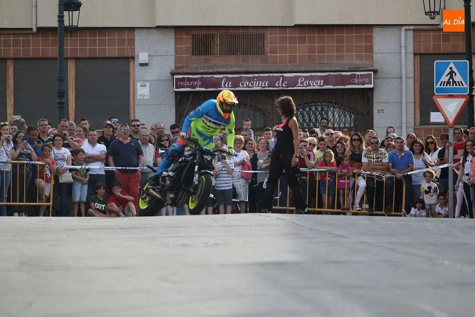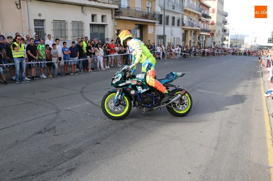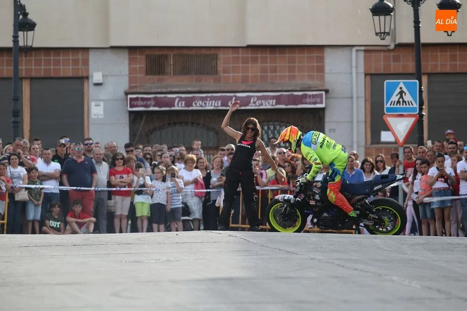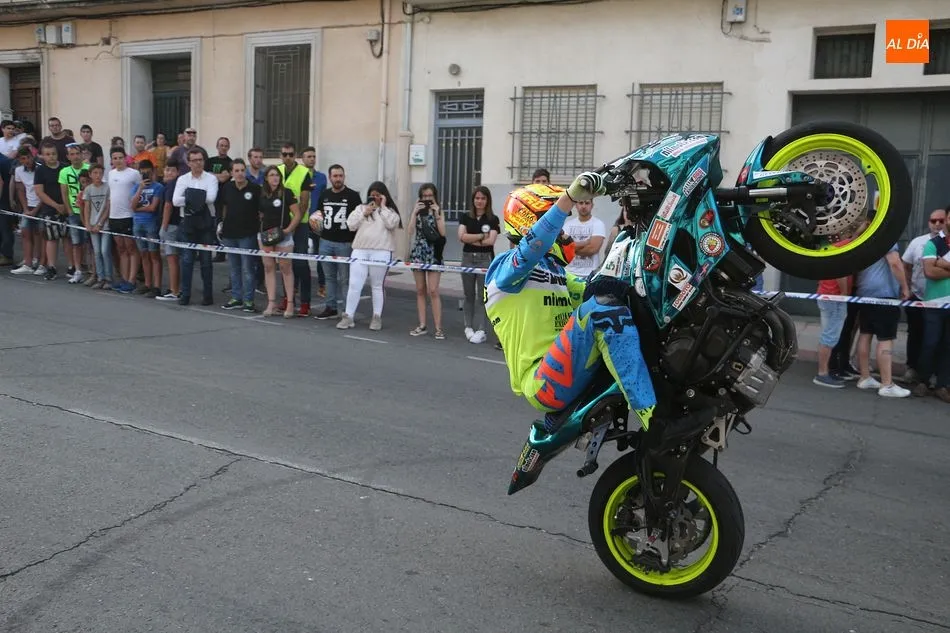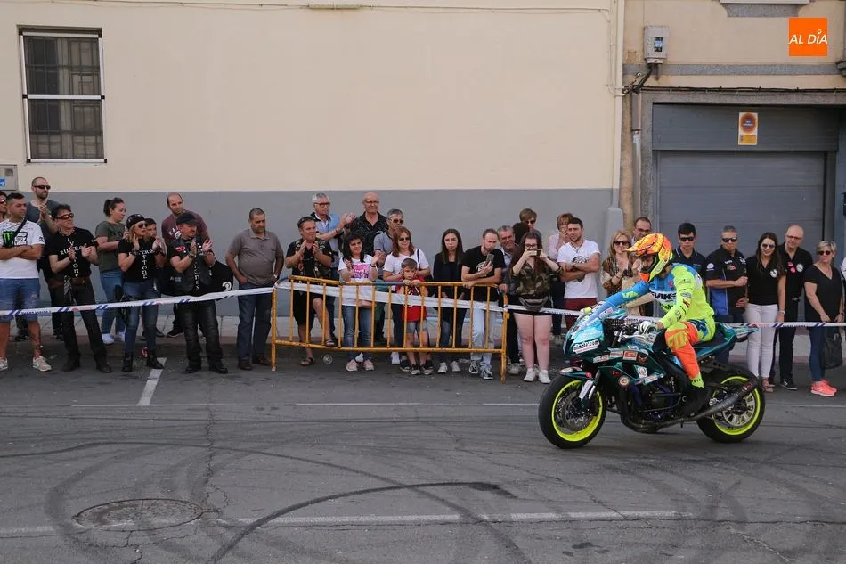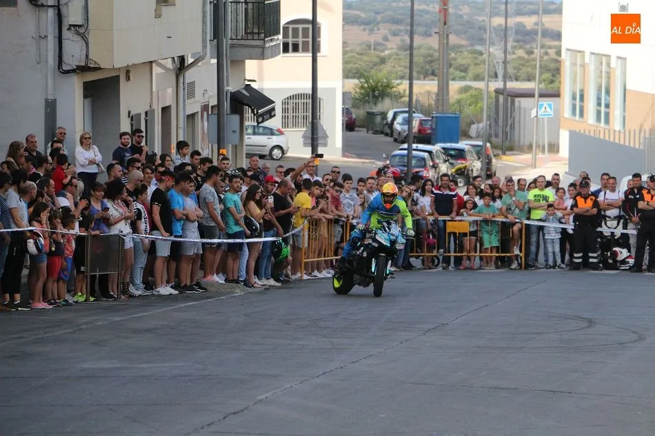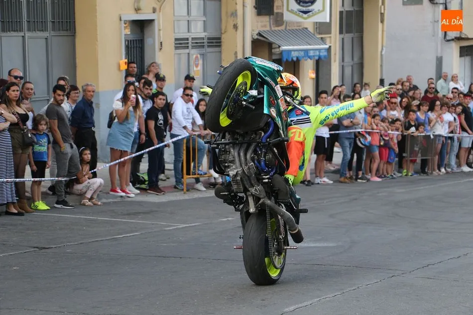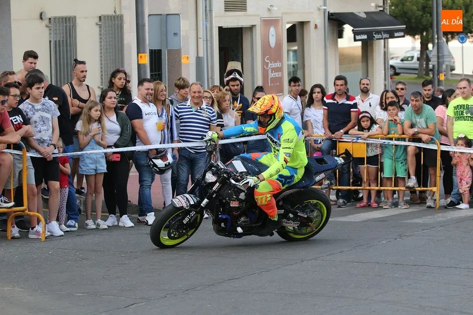 Cientos de aficionados a las motos se dieron cita en la calle Guardia Civil para ver la exhibición del acróbata