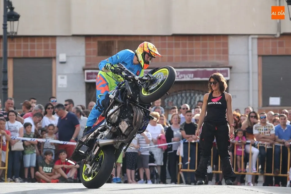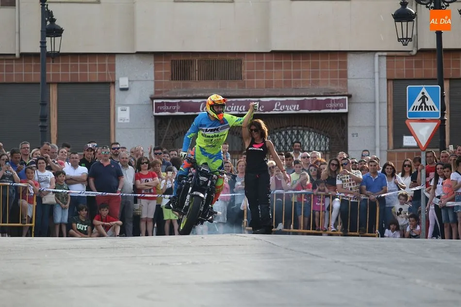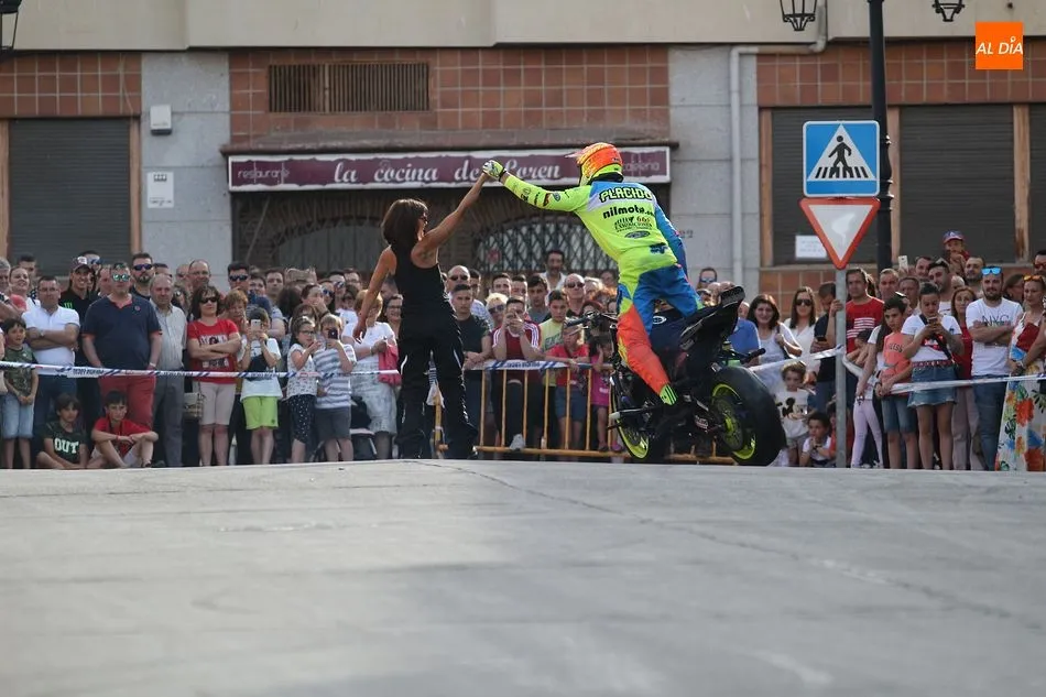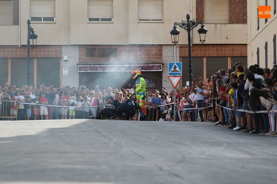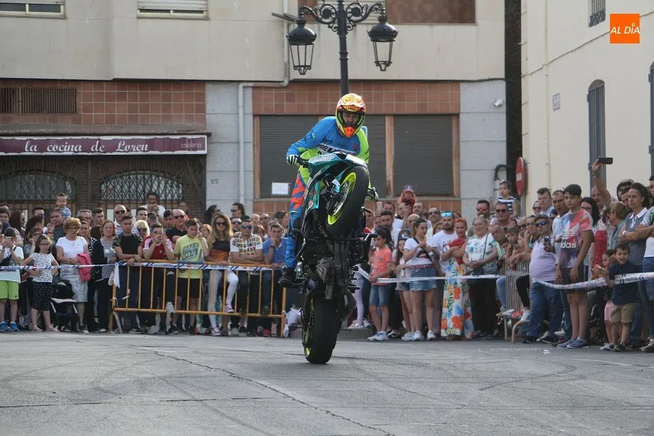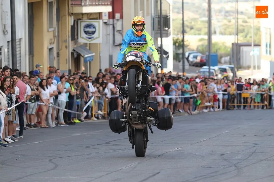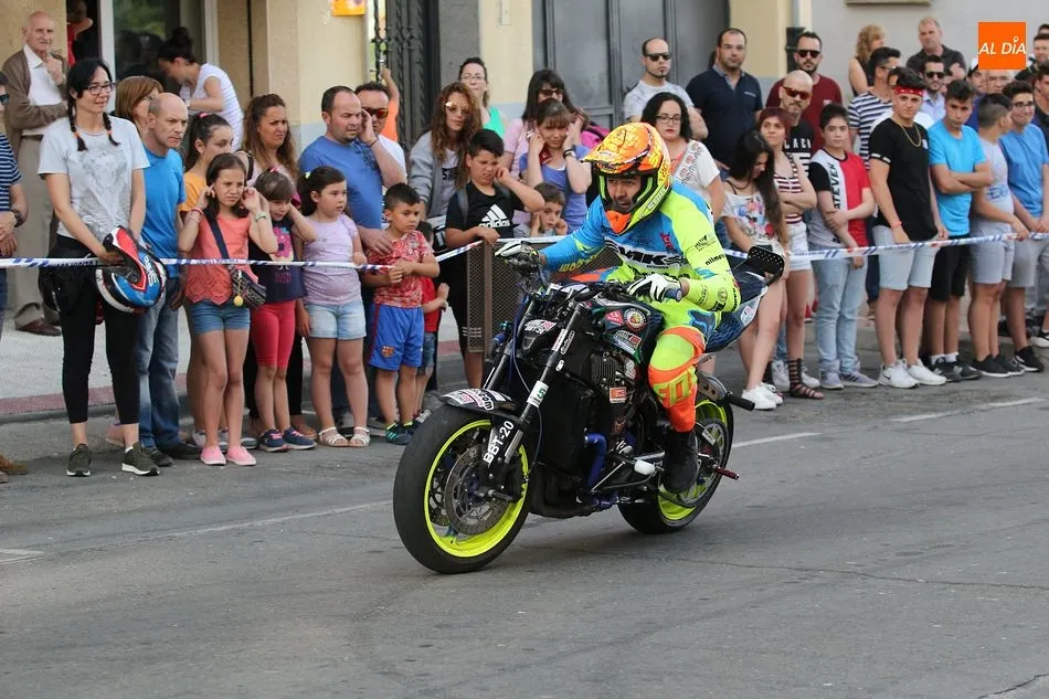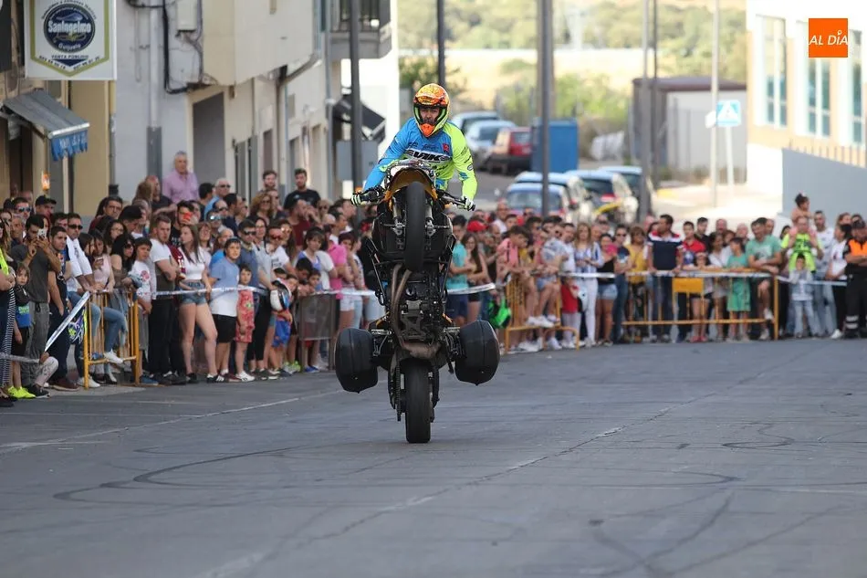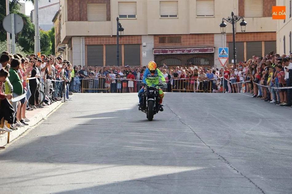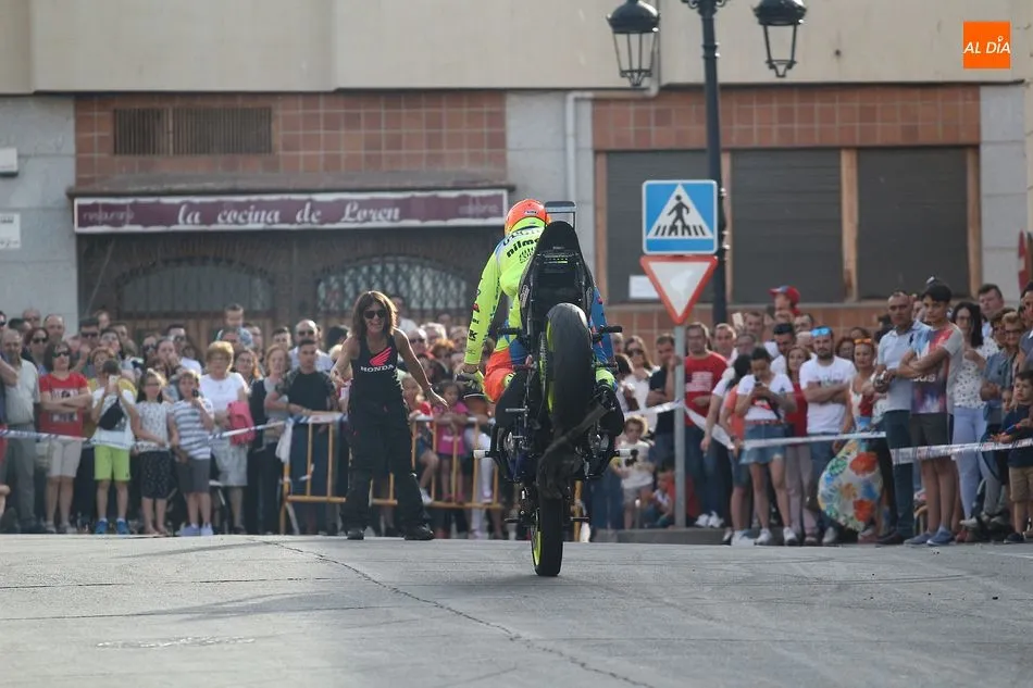 Cientos de aficionados a las motos se dieron cita en la calle Guardia Civil para ver la exhibición del acróbata