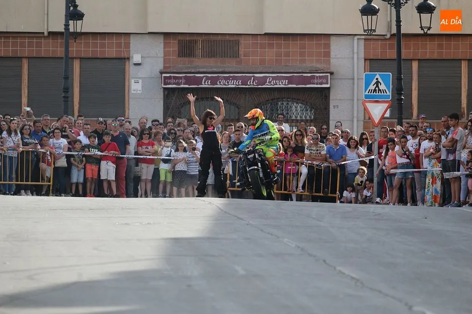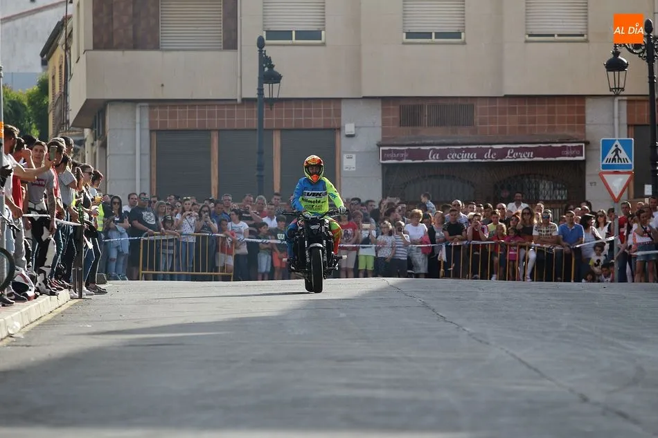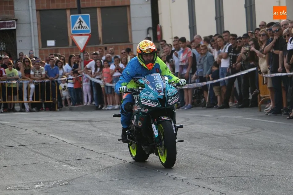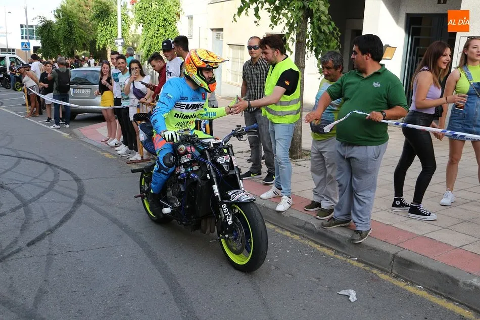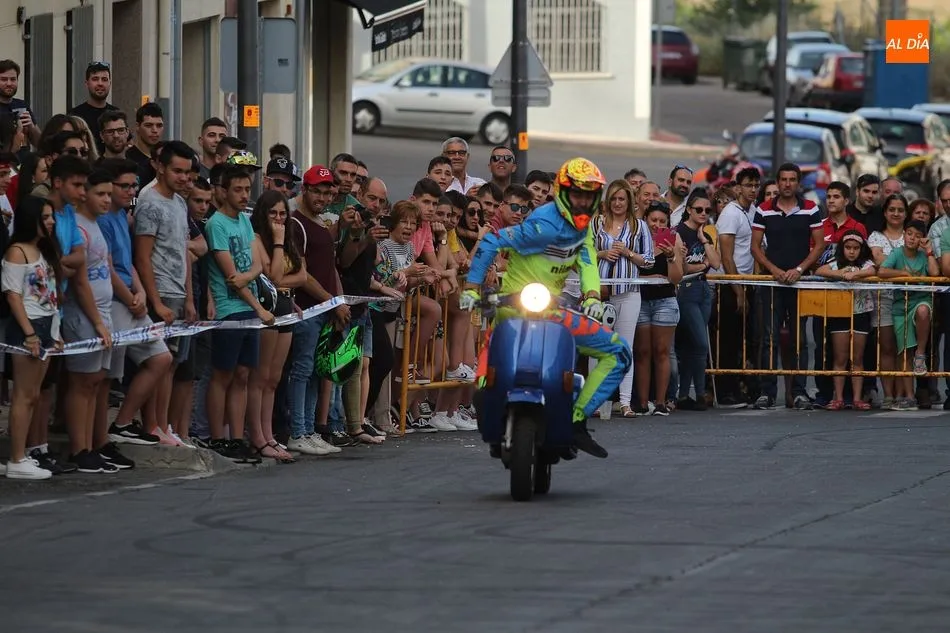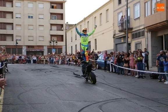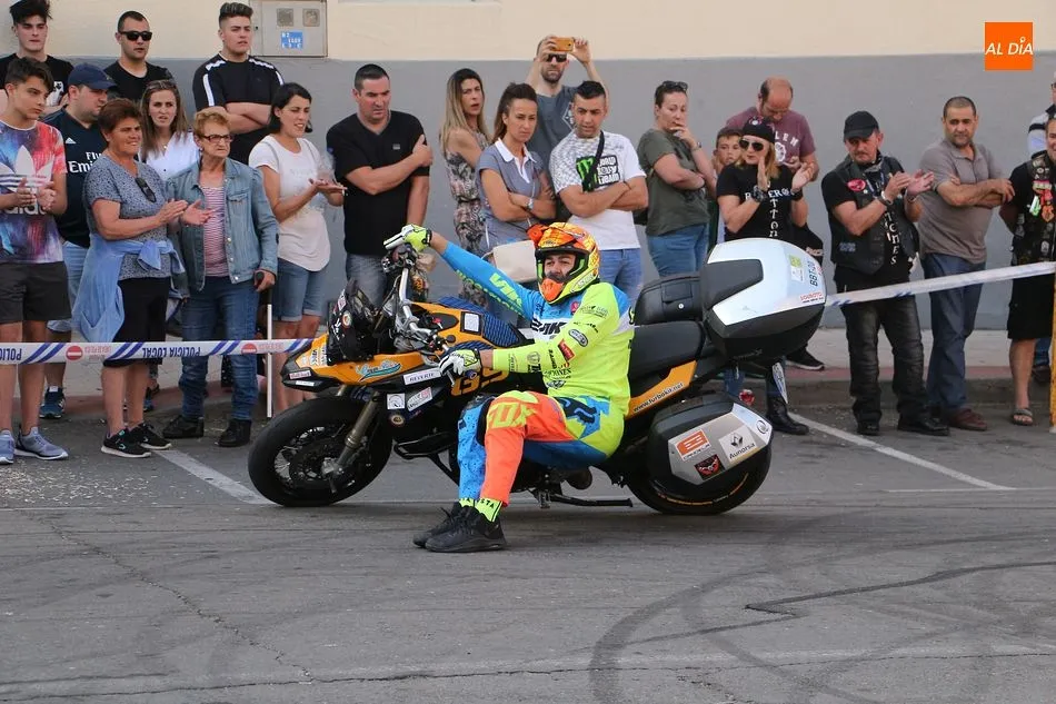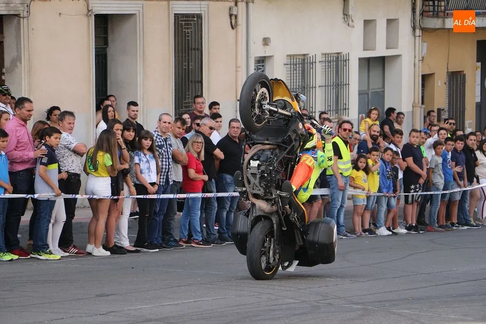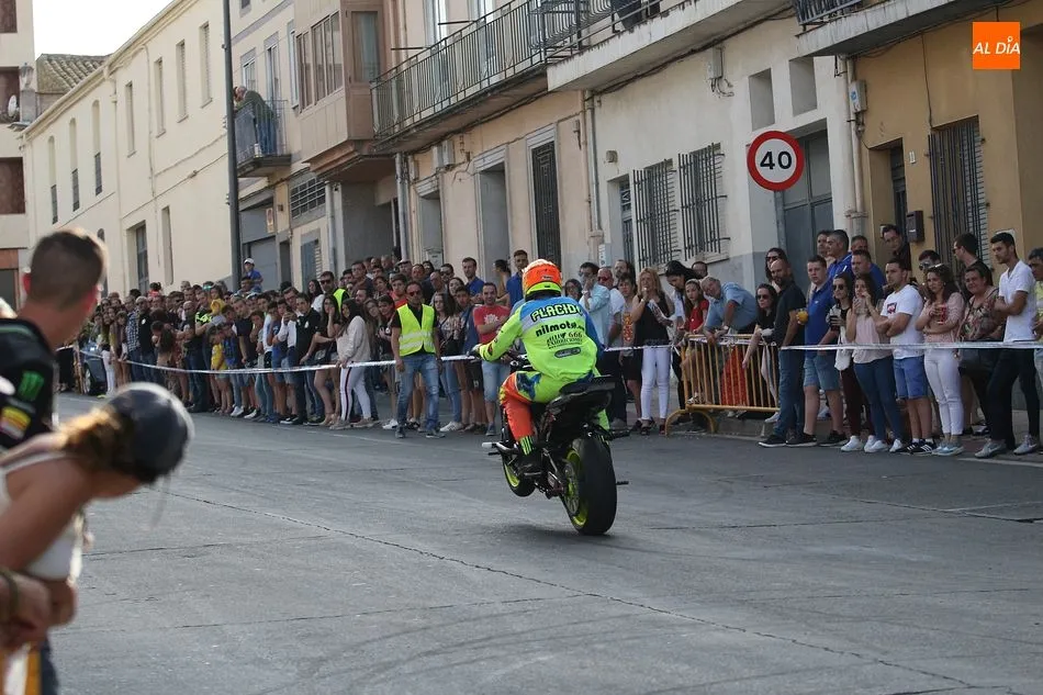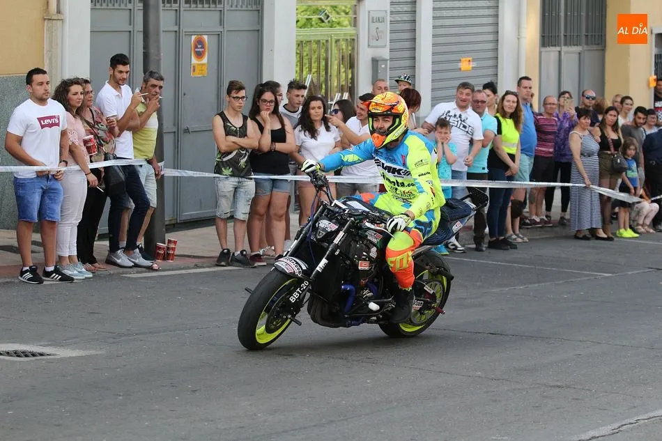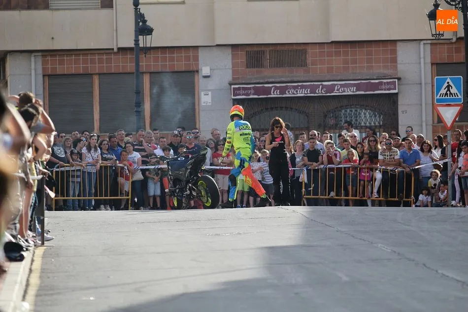 Cientos de aficionados a las motos se dieron cita en la calle Guardia Civil para ver la exhibición del acróbata