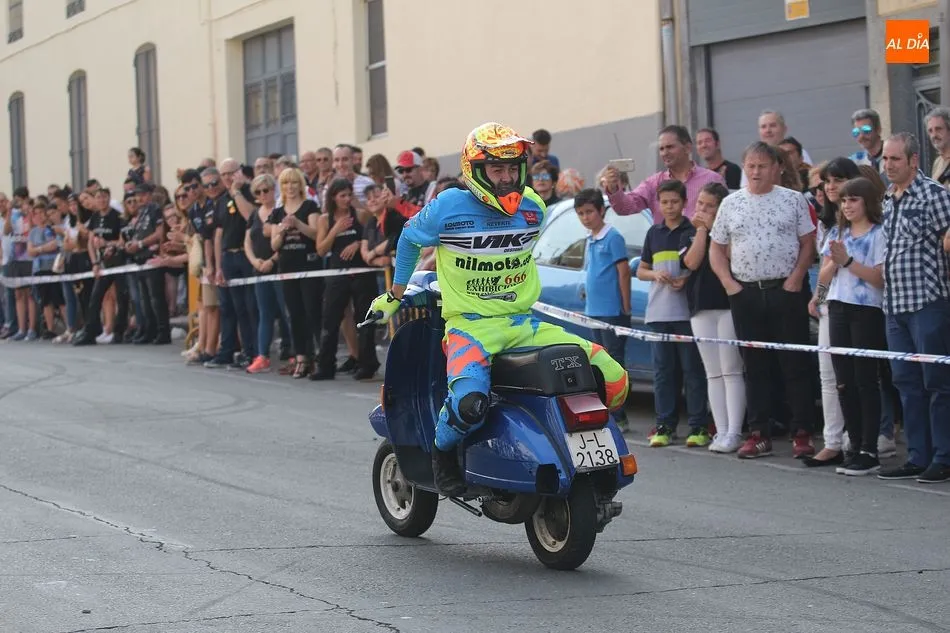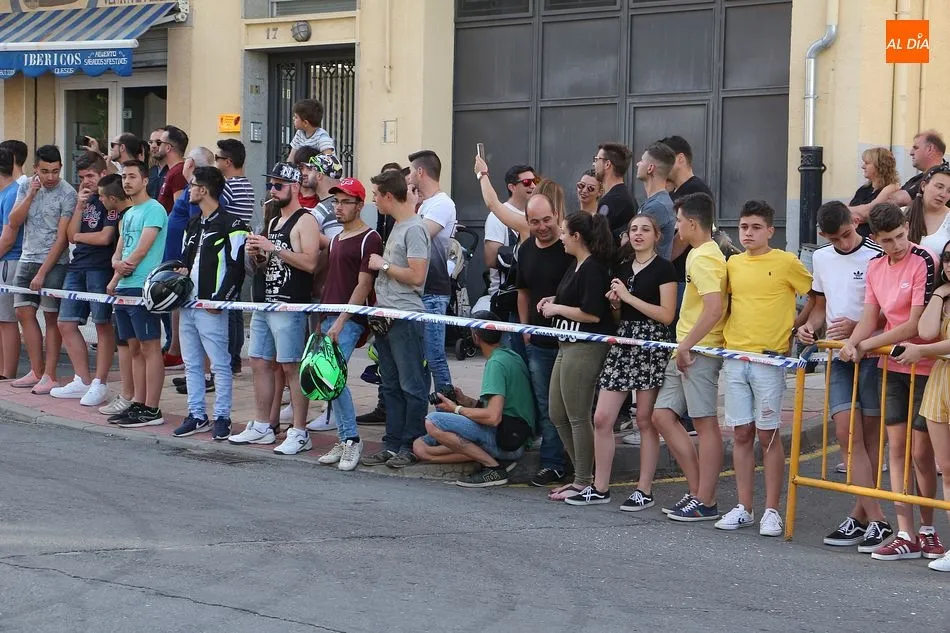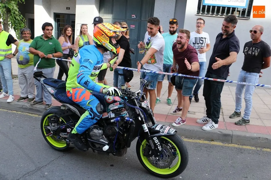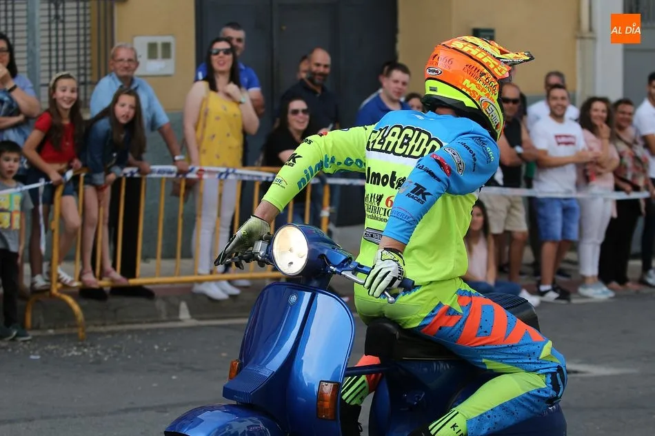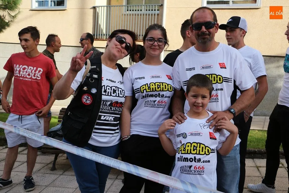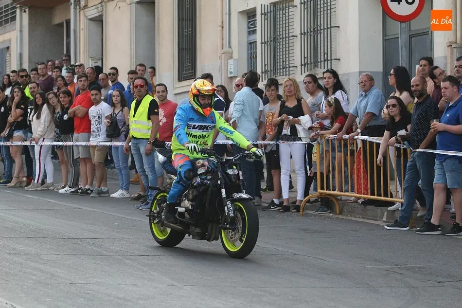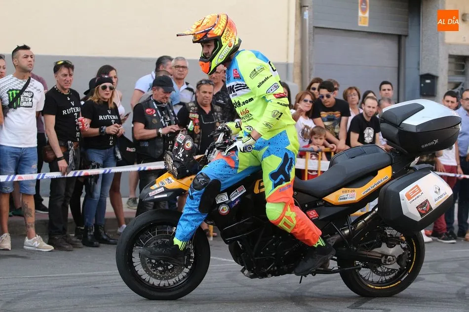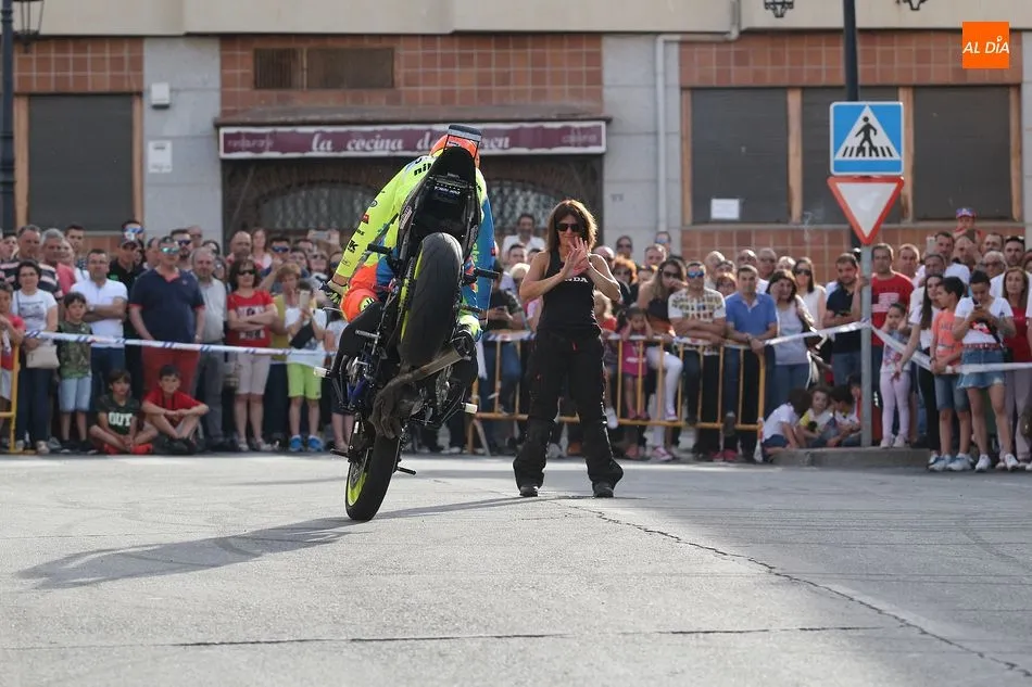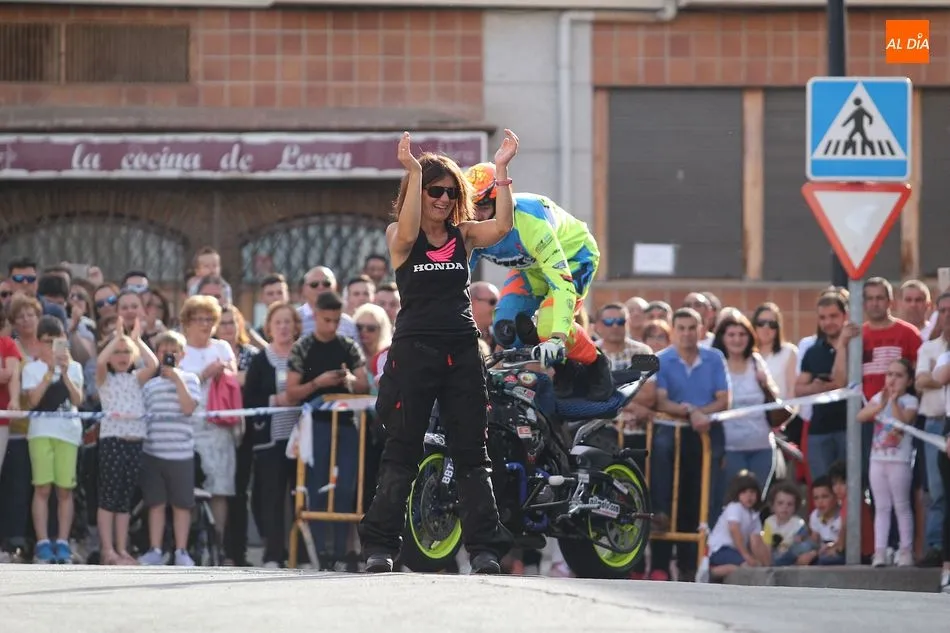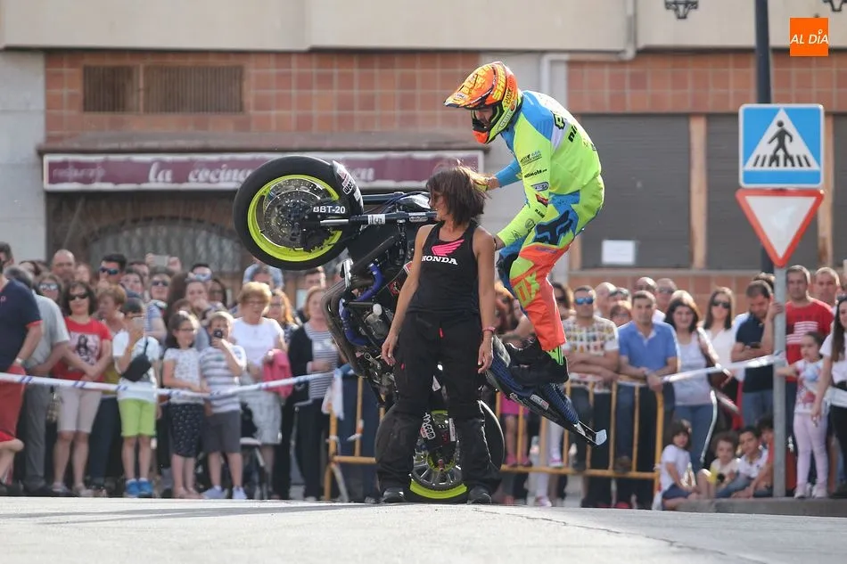 Cientos de aficionados a las motos se dieron cita en la calle Guardia Civil para ver la exhibición del acróbata