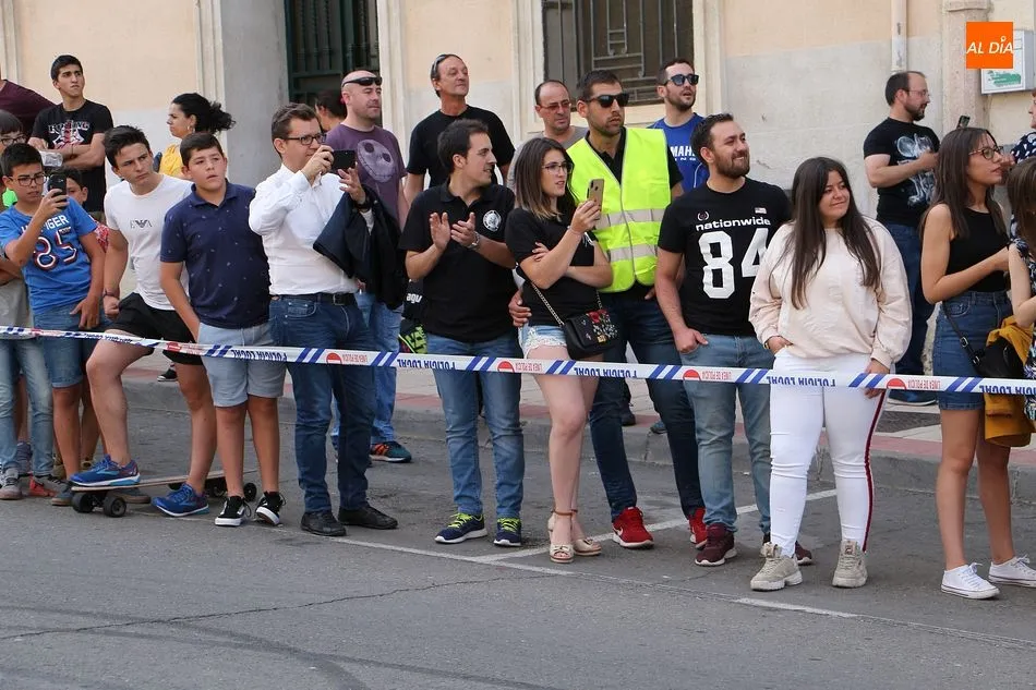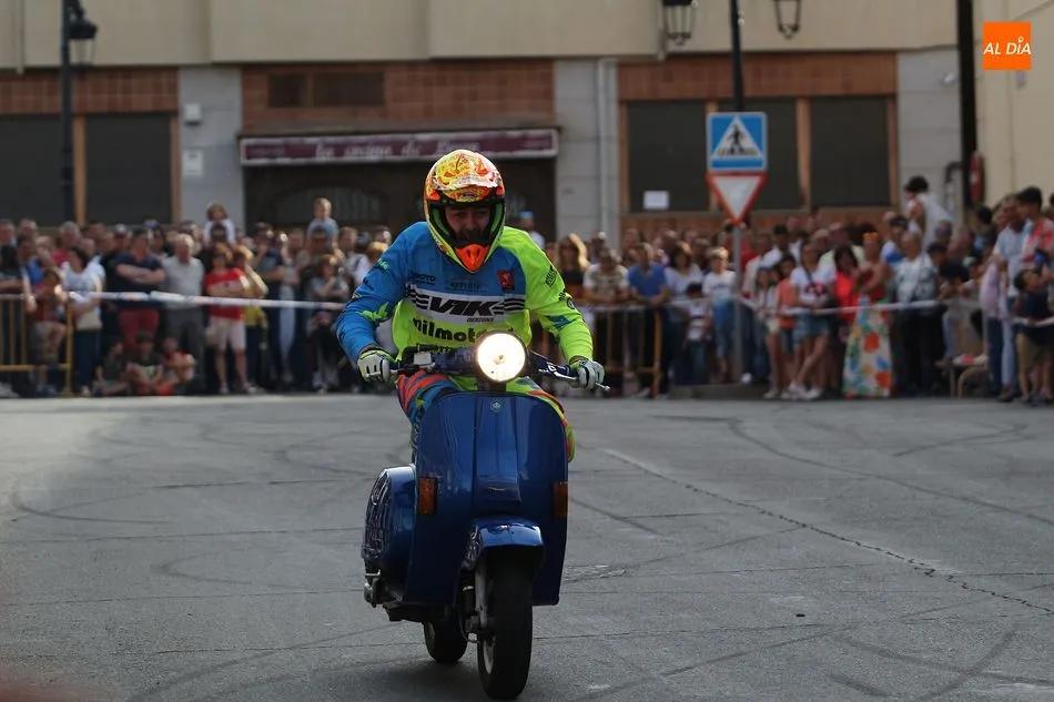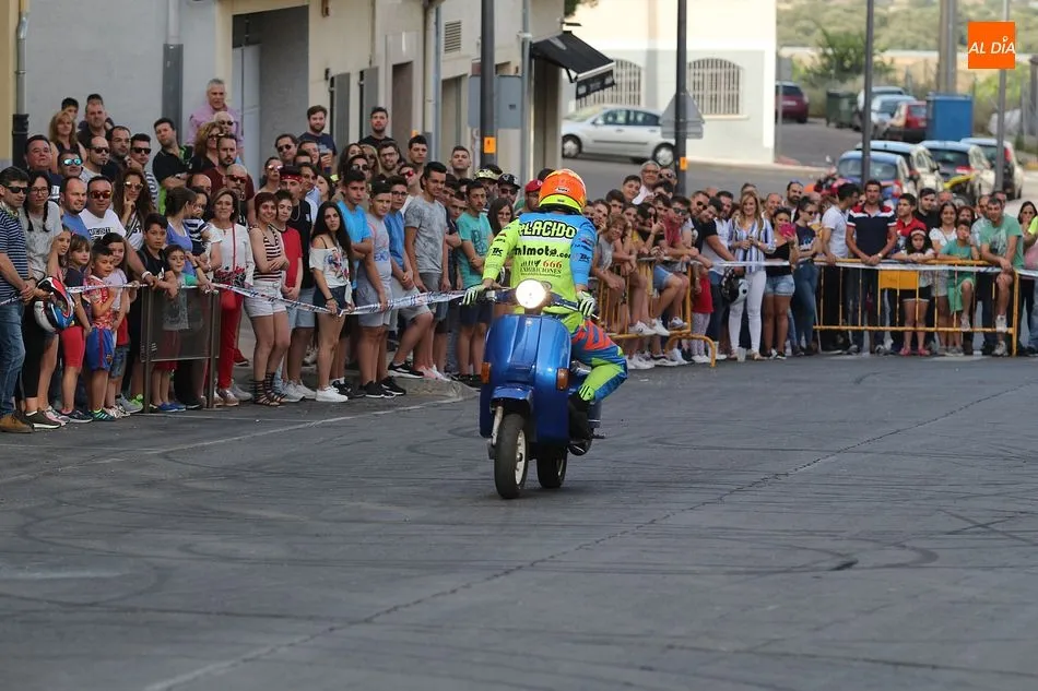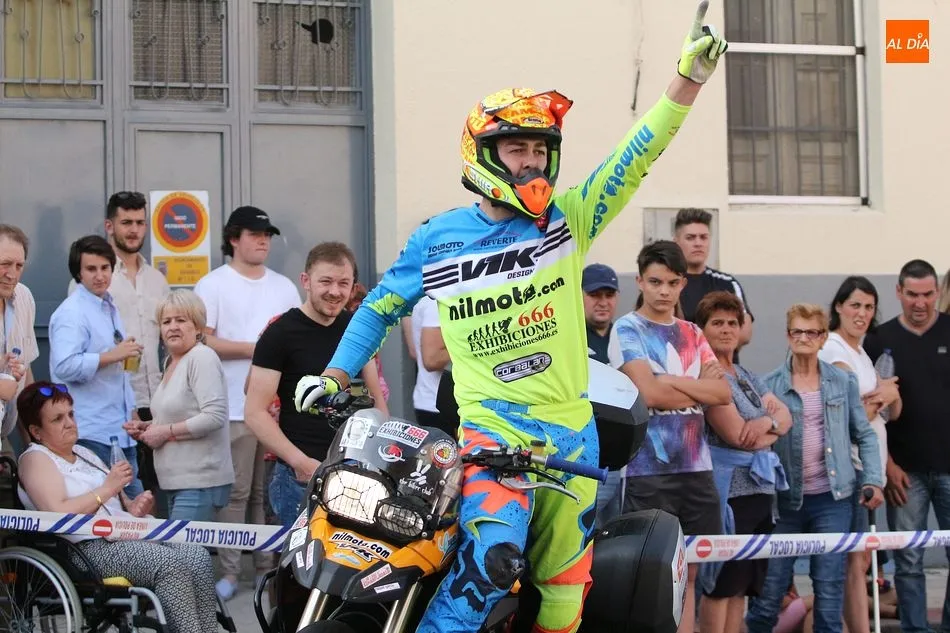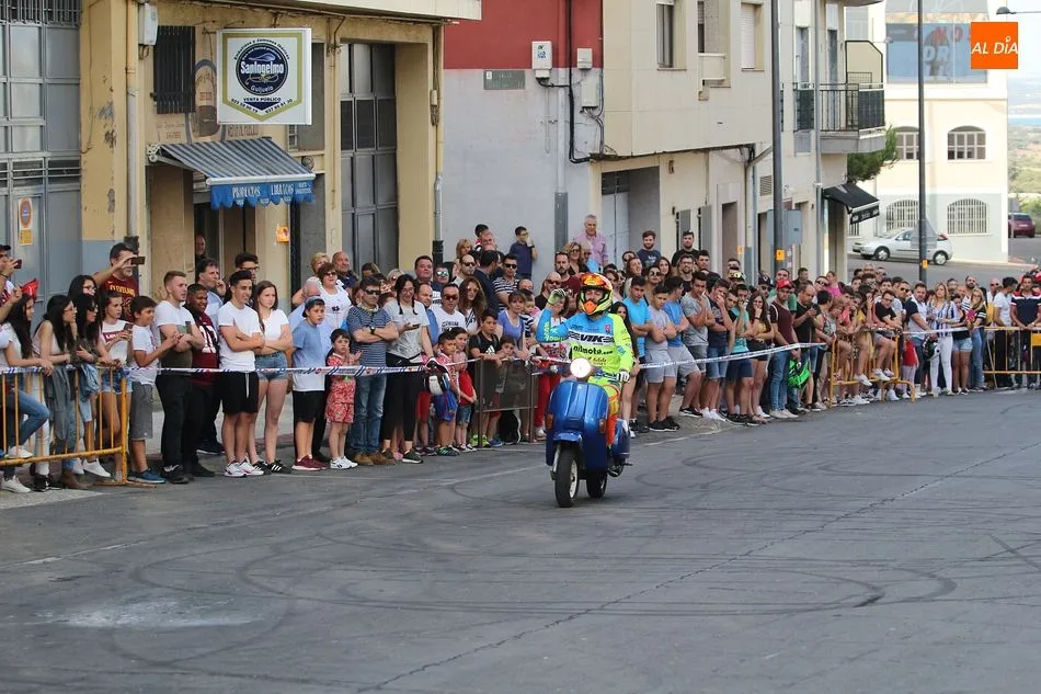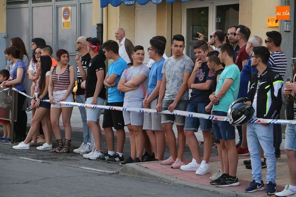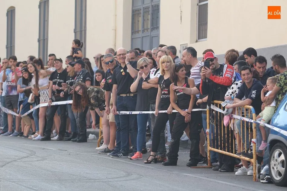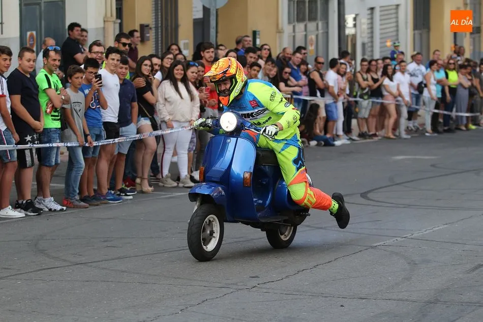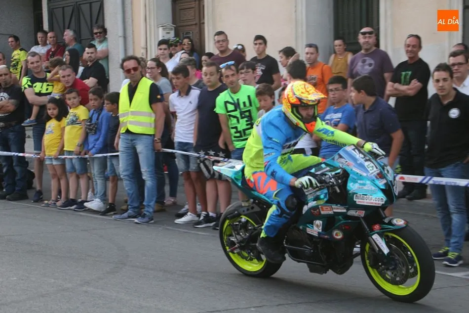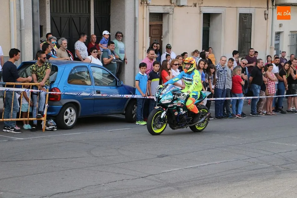 Cientos de aficionados a las motos se dieron cita en la calle Guardia Civil para ver la exhibición del acróbata