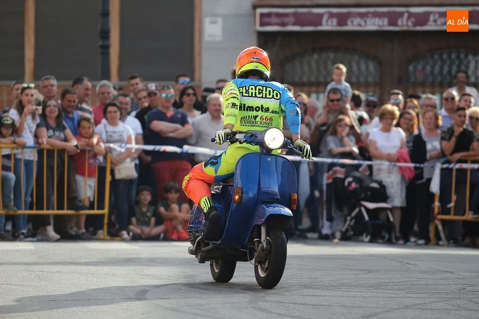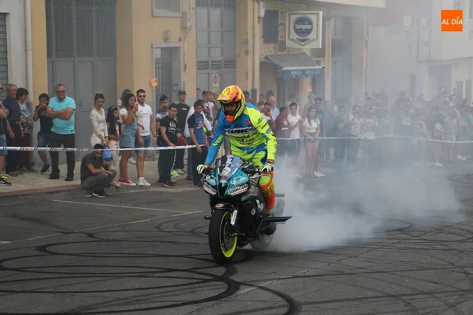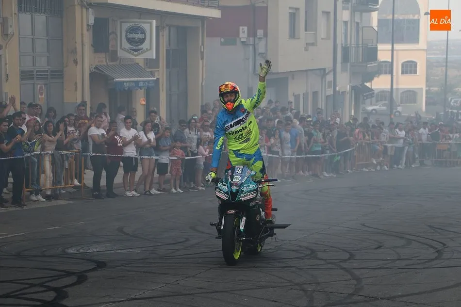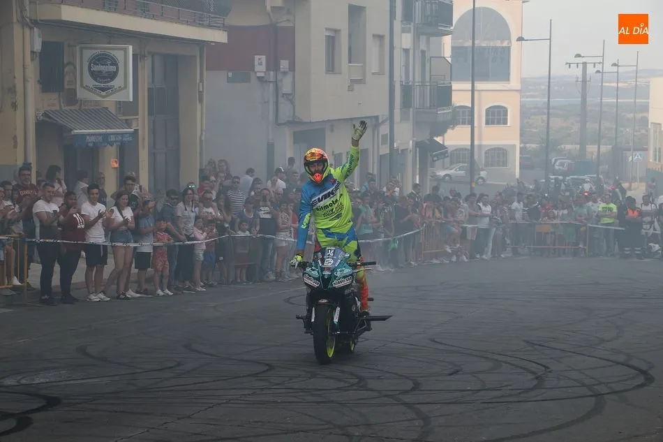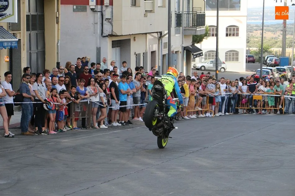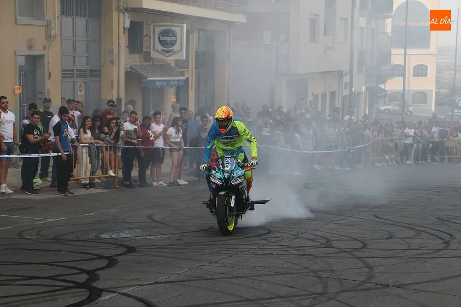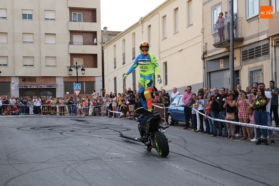 Riesgo, velocidad y olor a neumáticos quemados. El público asistente a la Concentración de Motos Pata Negra de Guijuelo ha disfrutado esta tarde de una espectacular exhibición acrobática a manos de Plácido Pérez, conocido ?stunt? que ha deleitado a los aficionados a las dos ruedas con las cabriolas, locas maniobras y vertiginosas carreras por la calle Guardia Civil, que se acordonó debidamente para el espectáculo.