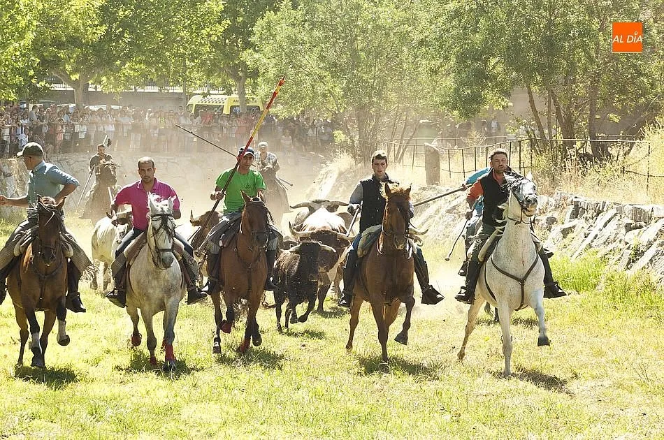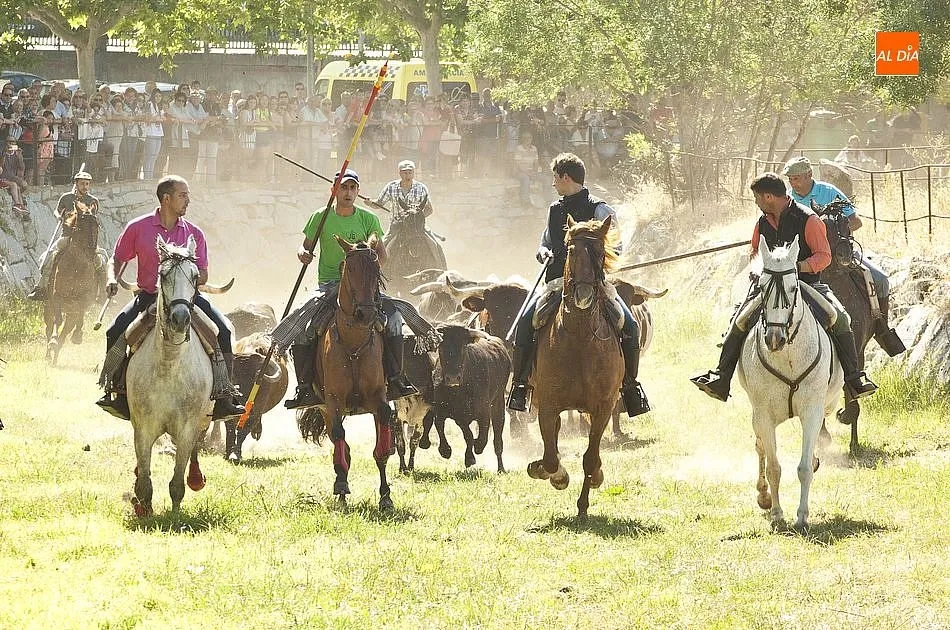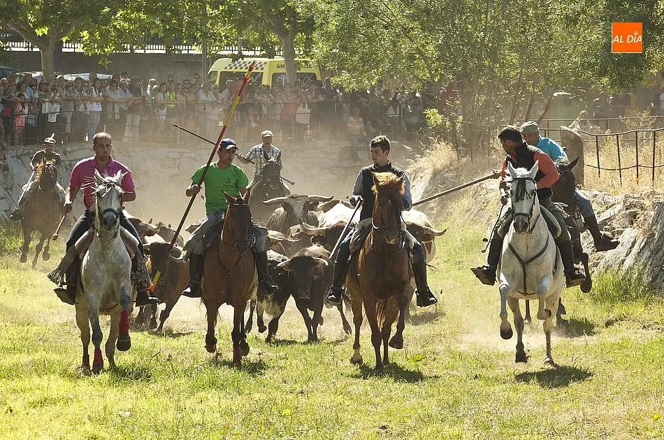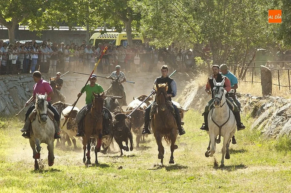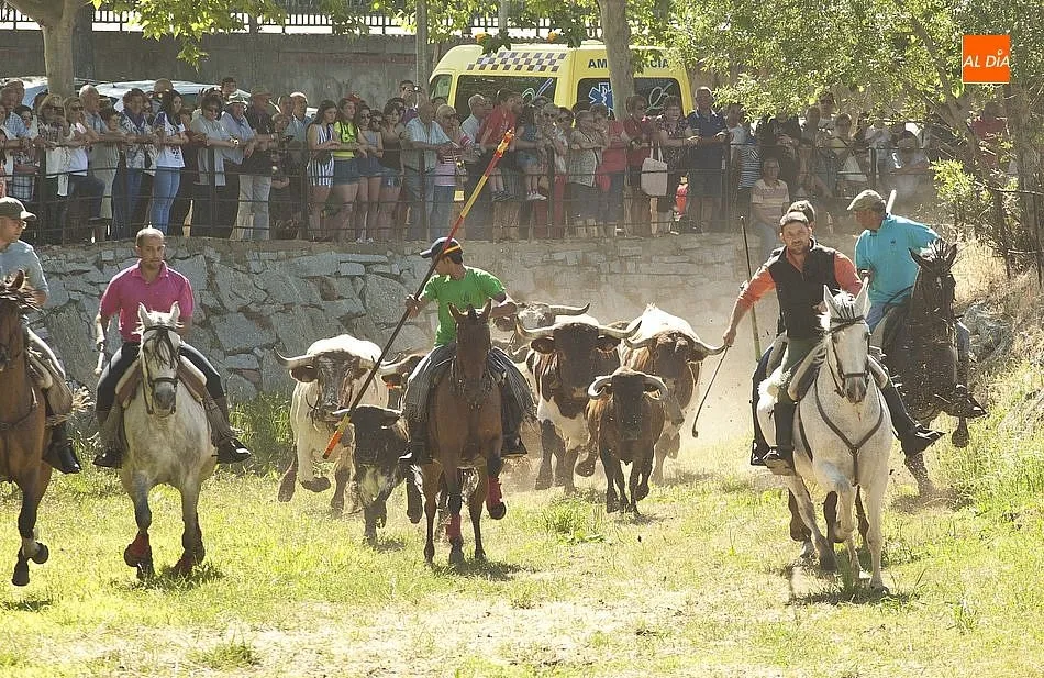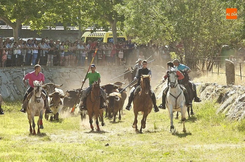 Una vez llegó la hora del encierro, se puso en marcha con total puntualidad y discurrió de una forma muy rápida, con la manada de El Sierro y Sepúlveda (con mansos de Bueyes Vitigudino) bien guiada por los caballistas. El escenario del encierro volvió a ser como es habitual el cauce del río Gavilanes, que a diferencia de lo que ocurrió el año pasado, esta vez no tiene ni pizca de agua, brindando unas estampas totalmente diferentes.