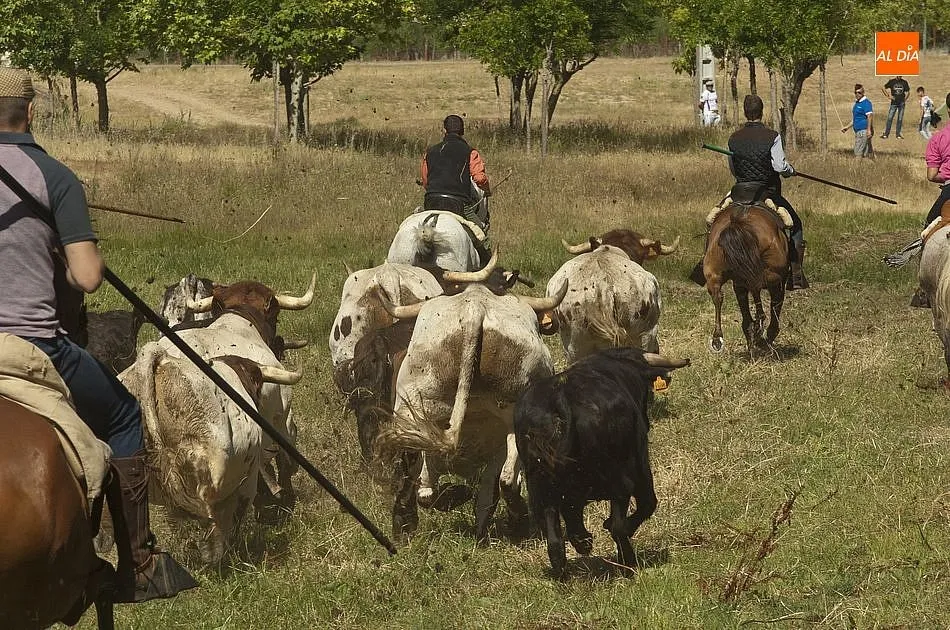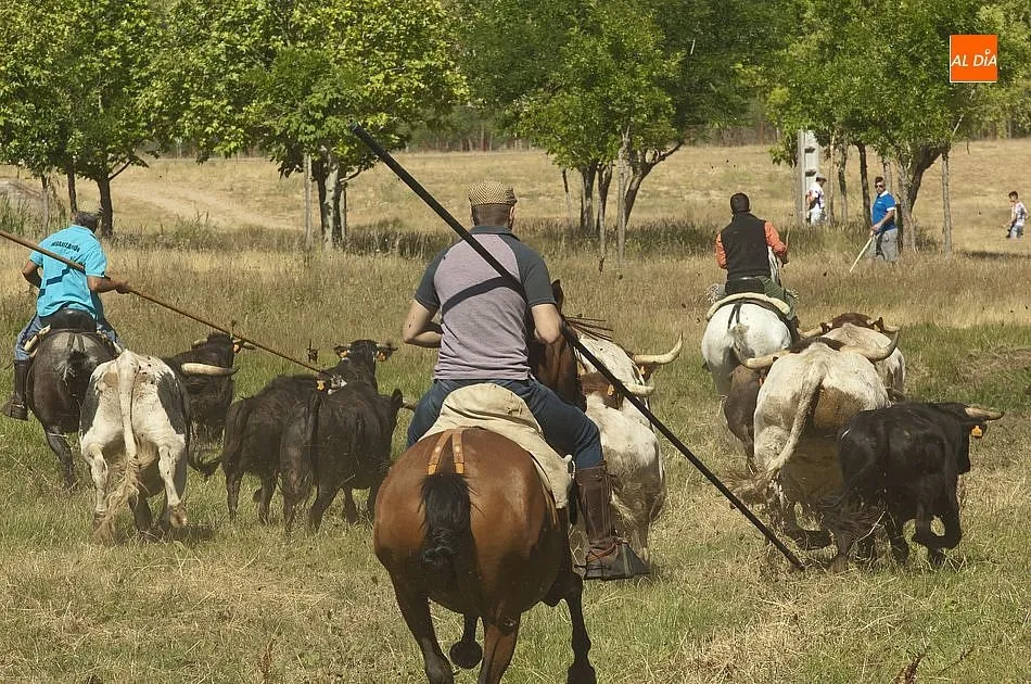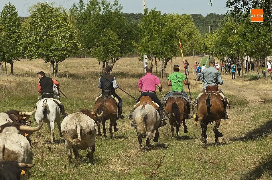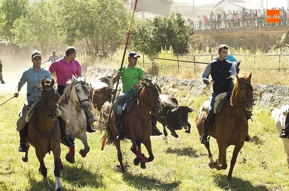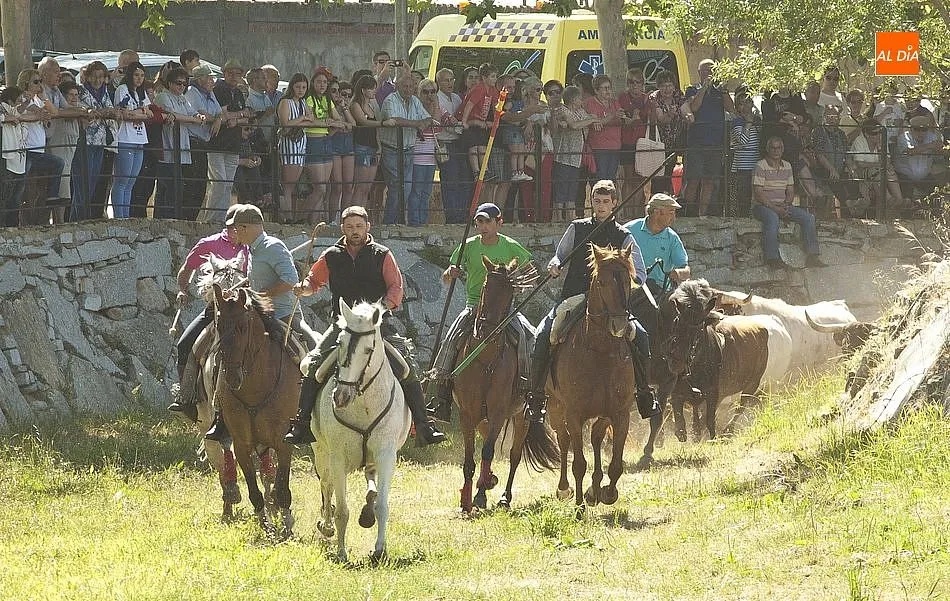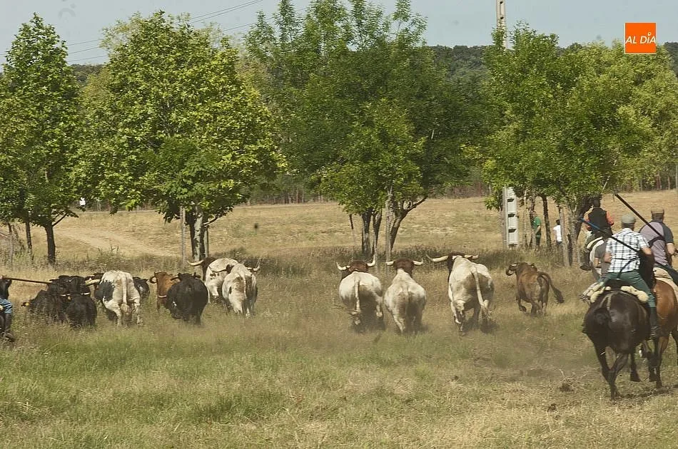 Una vez llegó la hora del encierro, se puso en marcha con total puntualidad y discurrió de una forma muy rápida, con la manada de El Sierro y Sepúlveda (con mansos de Bueyes Vitigudino) bien guiada por los caballistas. El escenario del encierro volvió a ser como es habitual el cauce del río Gavilanes, que a diferencia de lo que ocurrió el año pasado, esta vez no tiene ni pizca de agua, brindando unas estampas totalmente diferentes.
