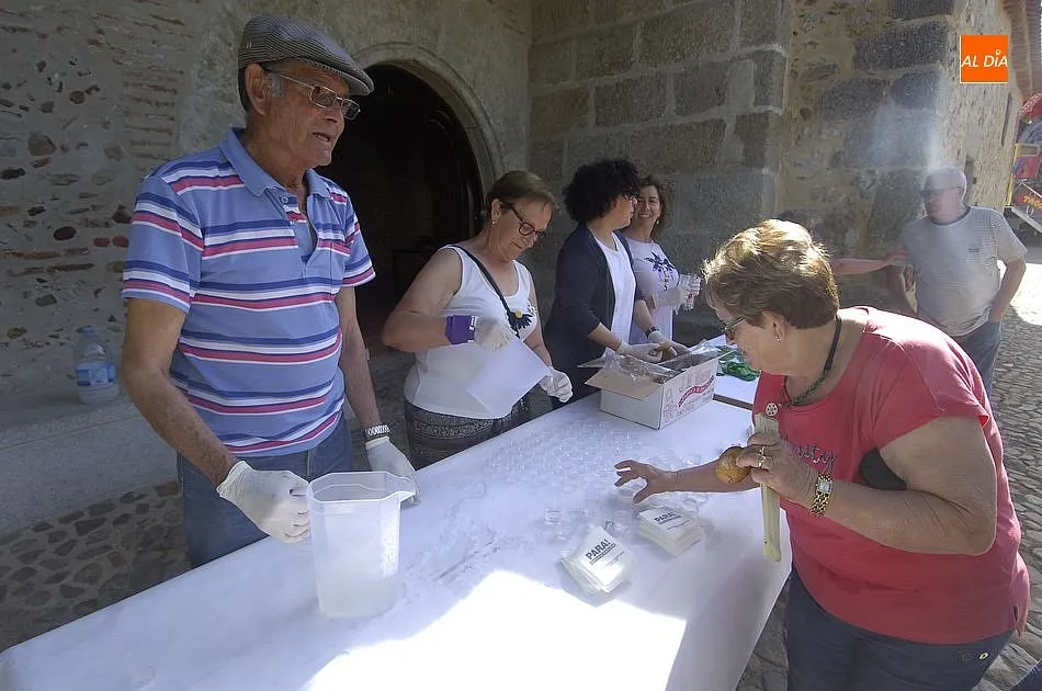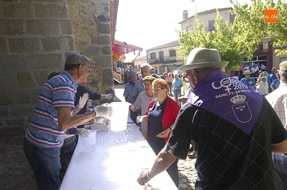 De forma previa al primer evento taurino (el primero de los encierros a caballo), y como marca la tradición en Sancti-Spíritus, se estuvieron repartiendo aguardiente y perrunillas a las puertas de la Iglesia Vieja. Aunque se repartían de forma gratuita, al mismo tiempo había instaladas unas huchas de la Asociación Española contra el Cáncer por si alguien quería hacer algún donativo solidario en esos momentos.