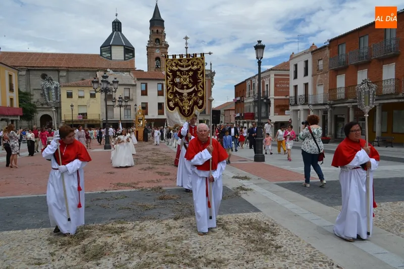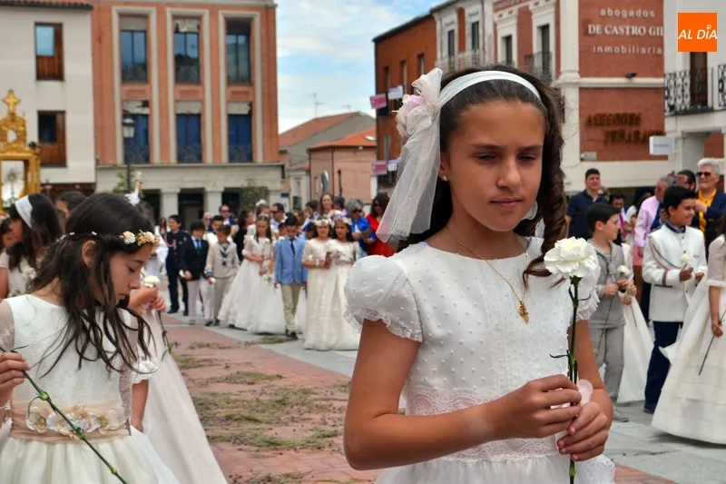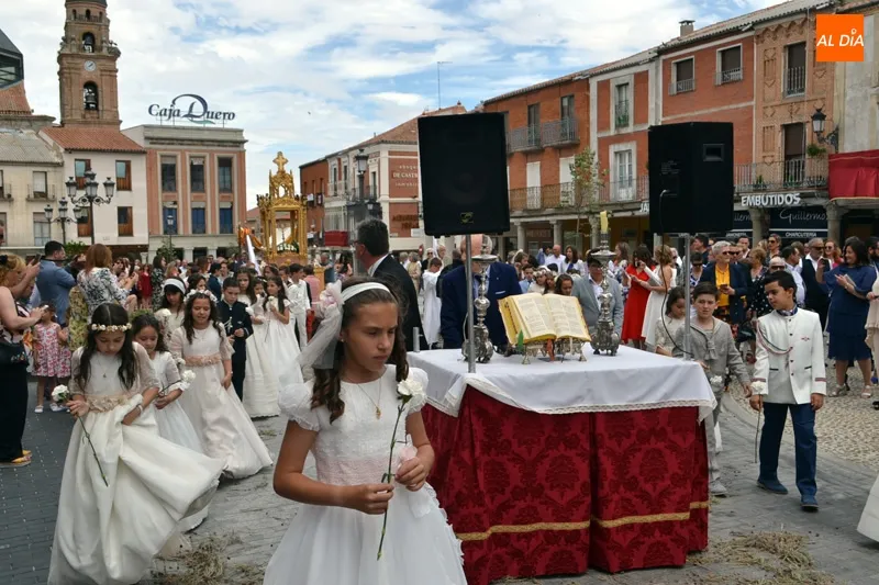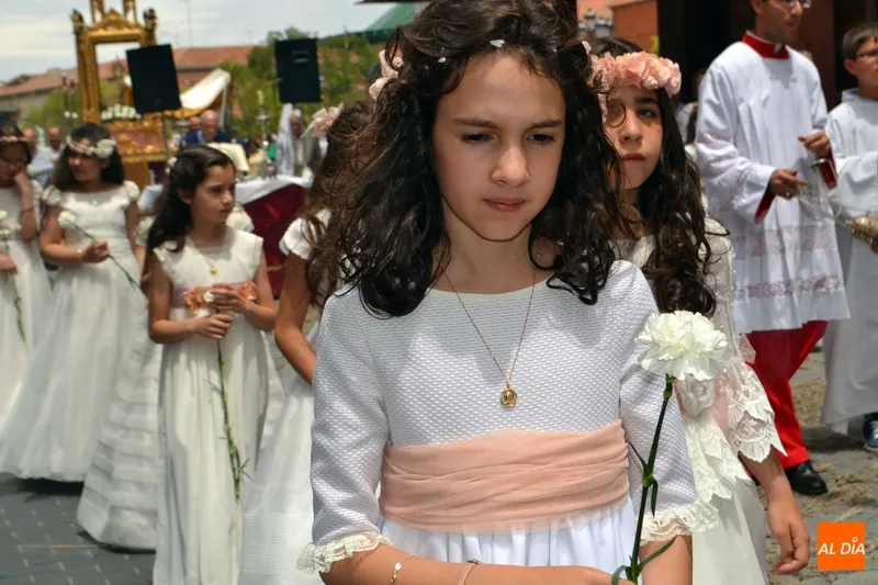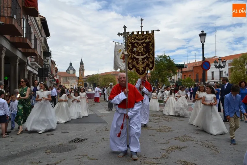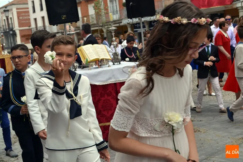 El intenso calor, suavizado con el viento protagonista durante buena parte de la mañana, ha reinado durante todo el recorrido de la procesión del Domingo de Corpus, en la que las decenas de niños y niñas que acaban de tomar su Primera Comunión, pudieron desfilar por calles y plazas, acompañados por multitud de familiares y vecinos.