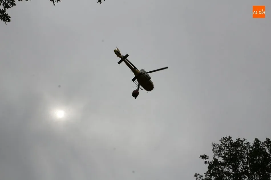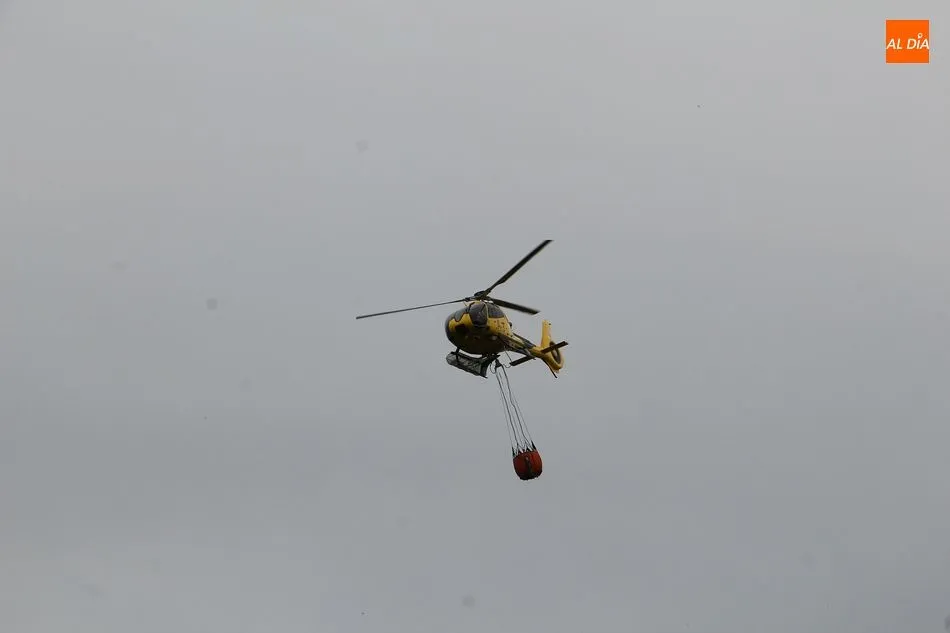 Diferentes medios contra incendios trabajan en una zona conocida como el ?prao del Conccejo?, incluyendo dos helicópteros