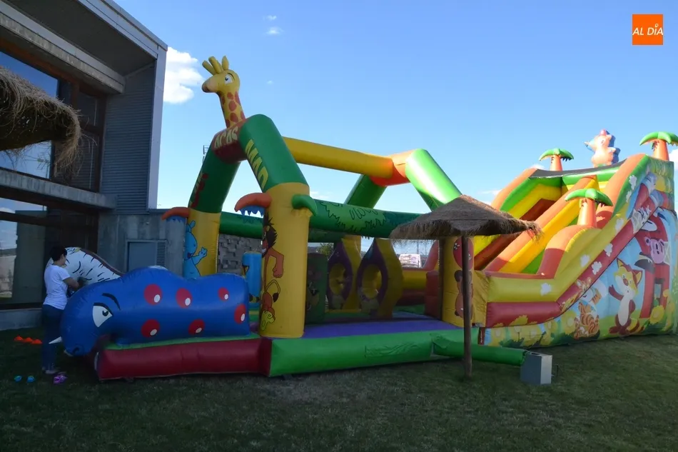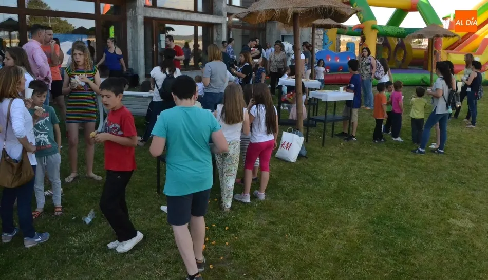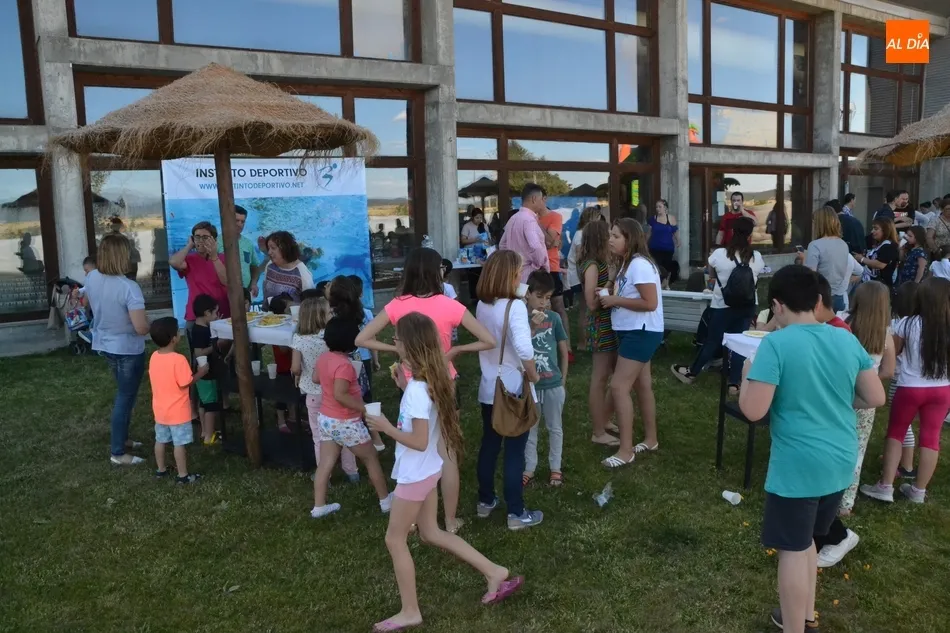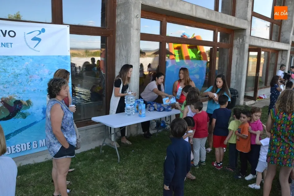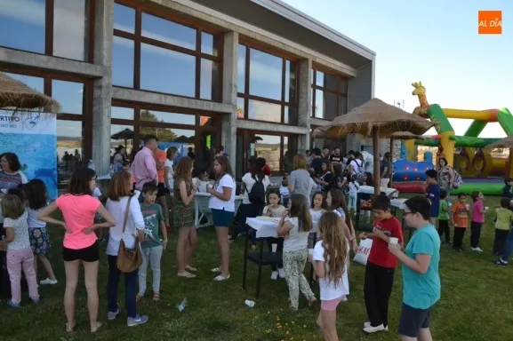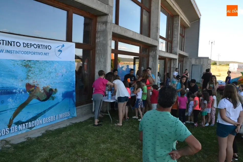 Por un lado, la fiesta contó con una serie de hinchables de la empresa Arte Charro, tanto en la piscina principal como en la zona de césped de la parte trasera del recinto, con los cuales los chavales se lo pasaron en grande. Por otro lado, se procedió a entregar a los participantes en los cursos anuales de los diplomas acreditativos de su asistencia a los mismos. Además, a todos los chavales que acudieron a la fiesta se les repartió una merienda, pudiendo disfrutar asimismo de un picoteo en varias mesas repartidas por el césped.