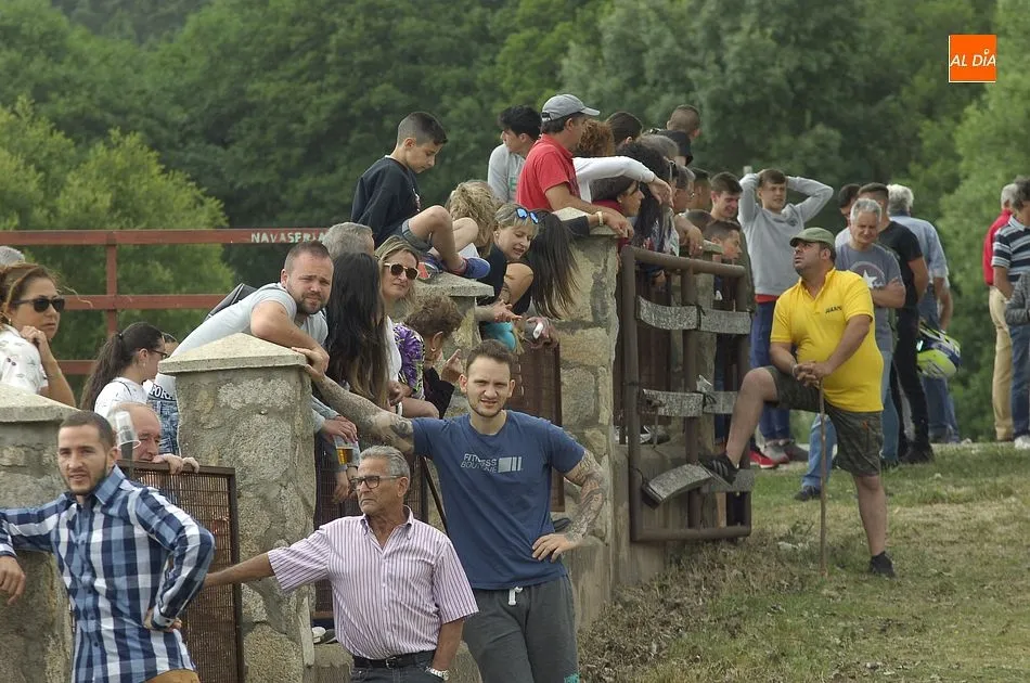 El motivo principal de que cueste tanto encerrar las vacas en Navasfrías es que los animales llegan de un recorrido muy ancho, siendo complicado meterlas en los últimos metros en un tramo estrecho y repleto de público, que por supuesto no duda en intentar incitar a las vacas para prolongar el espectáculo, que ya de por sí fue bastante largo en el Prado La Herradura.