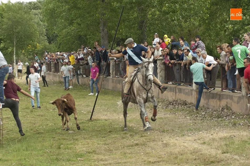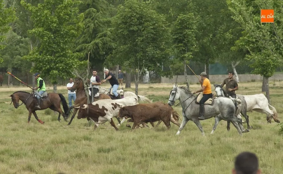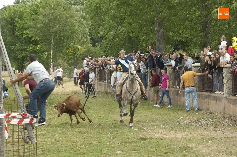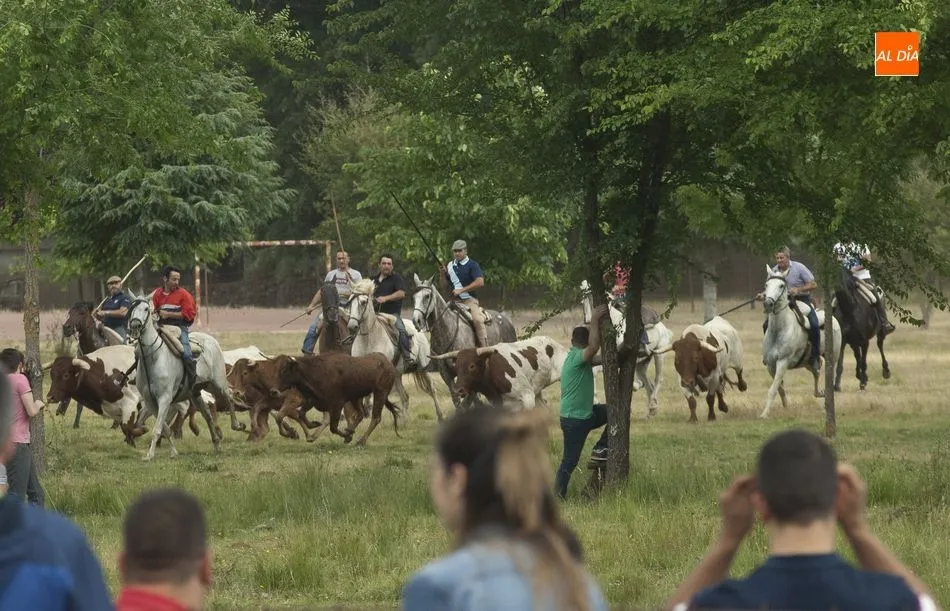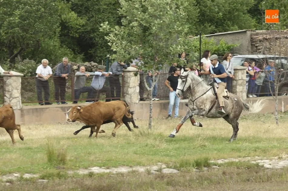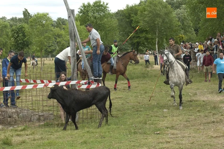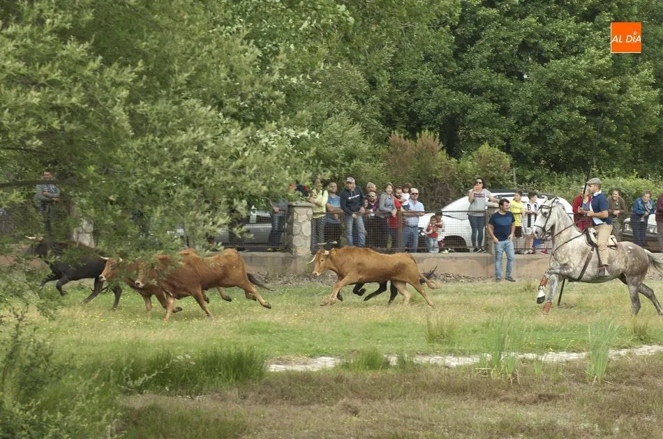 En la nublada mañana del domingo, Navasfrías vivió el segundo y último de los encierros a caballo de sus fiestas en honor a San Juan, que repitió algunos parámetros de la cita sabatina, especialmente la guerra que le dieron las vacas a los caballistas a la hora de intentar introducirlas en la plaza.