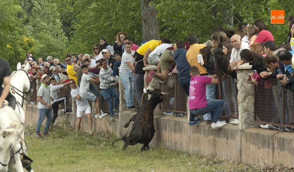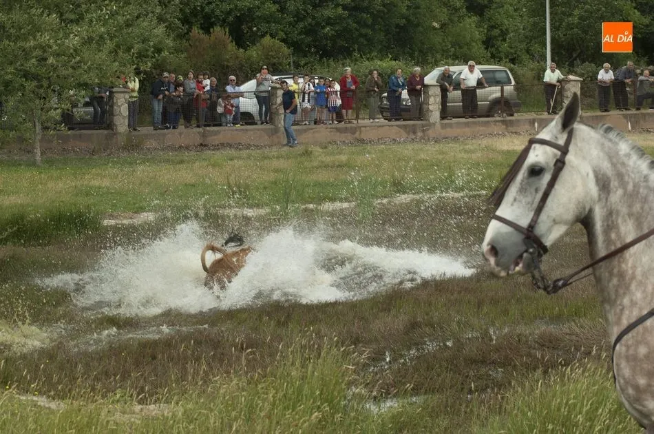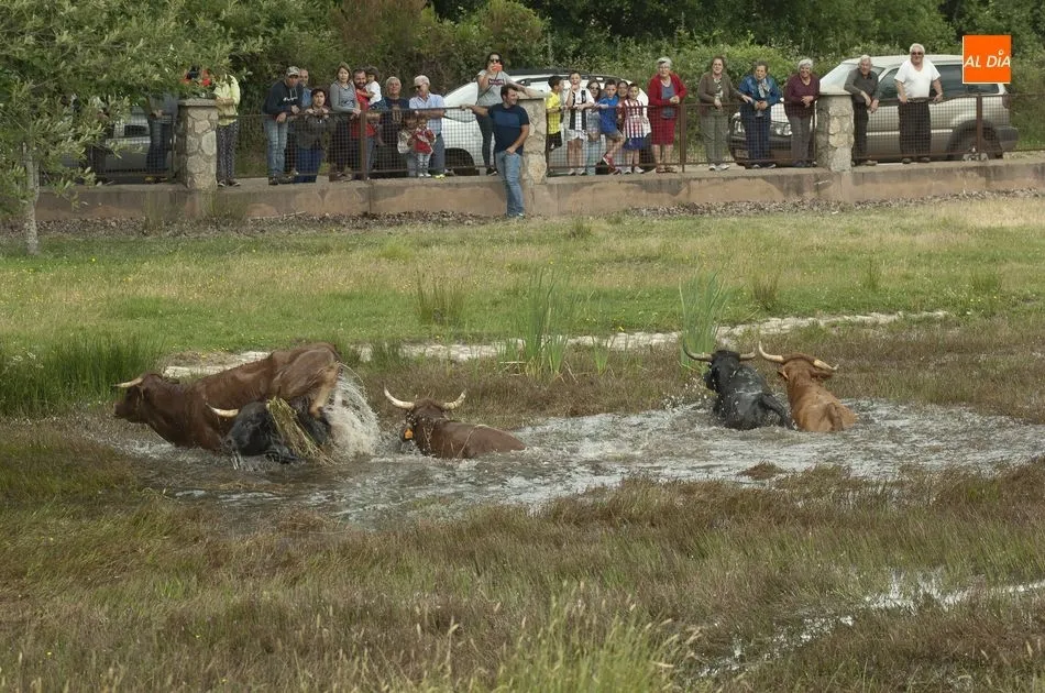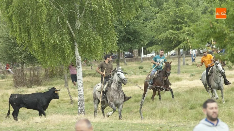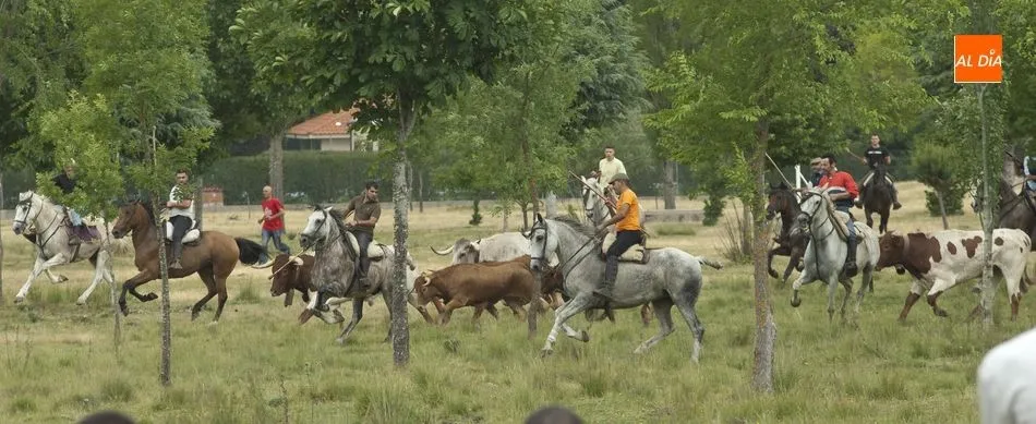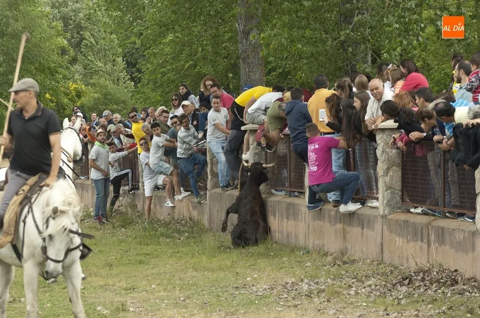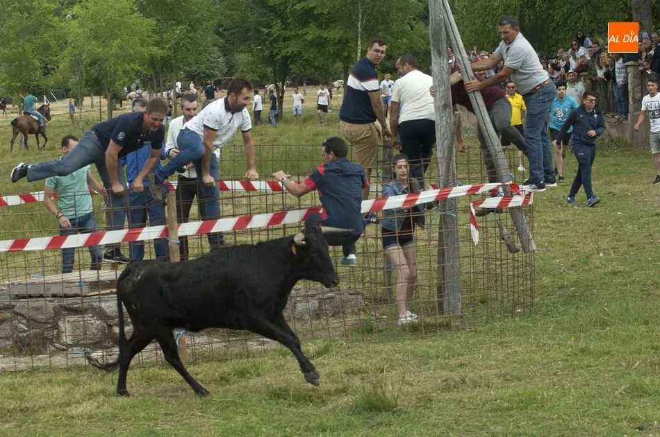 En la nublada mañana del domingo, Navasfrías vivió el segundo y último de los encierros a caballo de sus fiestas en honor a San Juan, que repitió algunos parámetros de la cita sabatina, especialmente la guerra que le dieron las vacas a los caballistas a la hora de intentar introducirlas en la plaza.