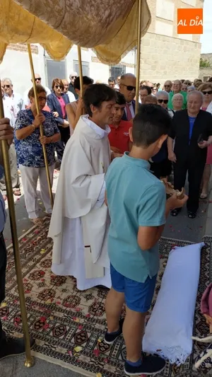 Macotera, Bóveda del Rio Almar y Santiago de la Puebla. Tres localidades que durante esta mañana veraniega de domingo han celebrado con solemnidad este clásico acto que se ha vivido en las calles, donde los niños y niñas que acaban de tomar la Primera Comunión, además de vecinos y familias, ha