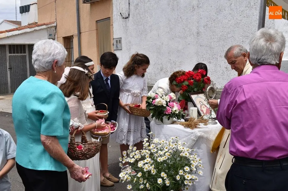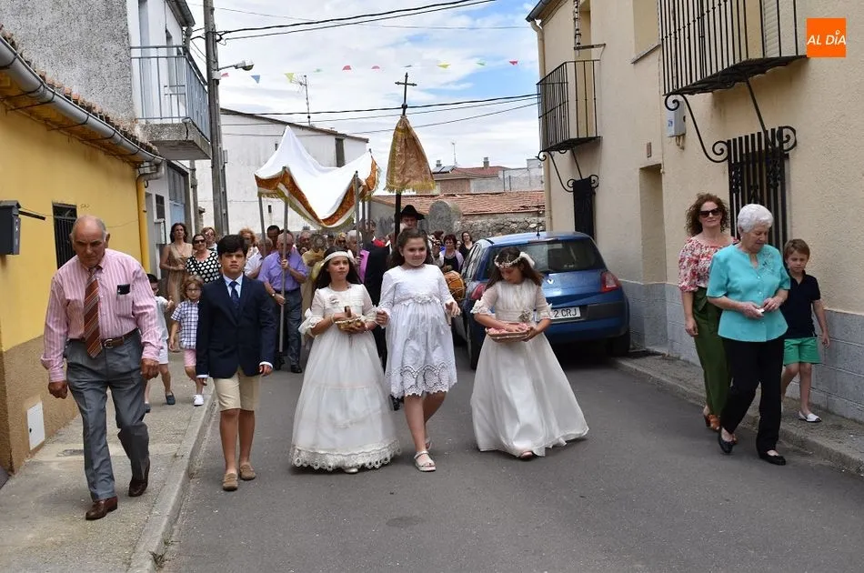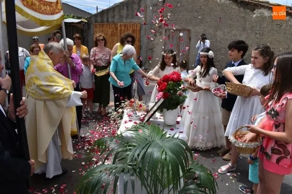 Encinas de Arriba celebró este domingo su tradicional procesión del Corpus en el Día del Señor. Los vecinos de la localidad acudieron a la misa y a la procesión por las calles con El Señor bajo palio, escoltado por los niños vestidos con los trajes de comunión. Al finalizar la procesión, no falto la visita de Mickey, Minnie y Olaf para los más pequeños.