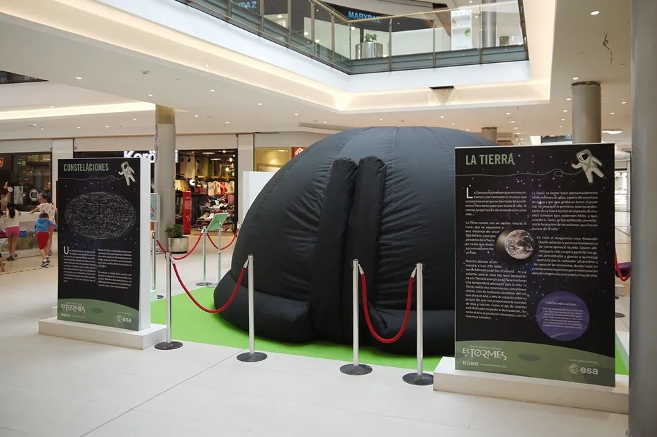 Hace unos meses aterrizó el cohete en el Centro Comercial, y hoy El Tormes ha inaugurado un planetario que estará en la plaza central hasta principios de septiembre con el fin de que niños y mayores puedan conocer algunos de los secretos del espacio. De esta manera, el Centro Comercial quiere celebrar además los 50 años de la llegada del hombre a la luna que se cumplen el próximo mes de julio.