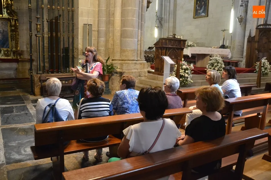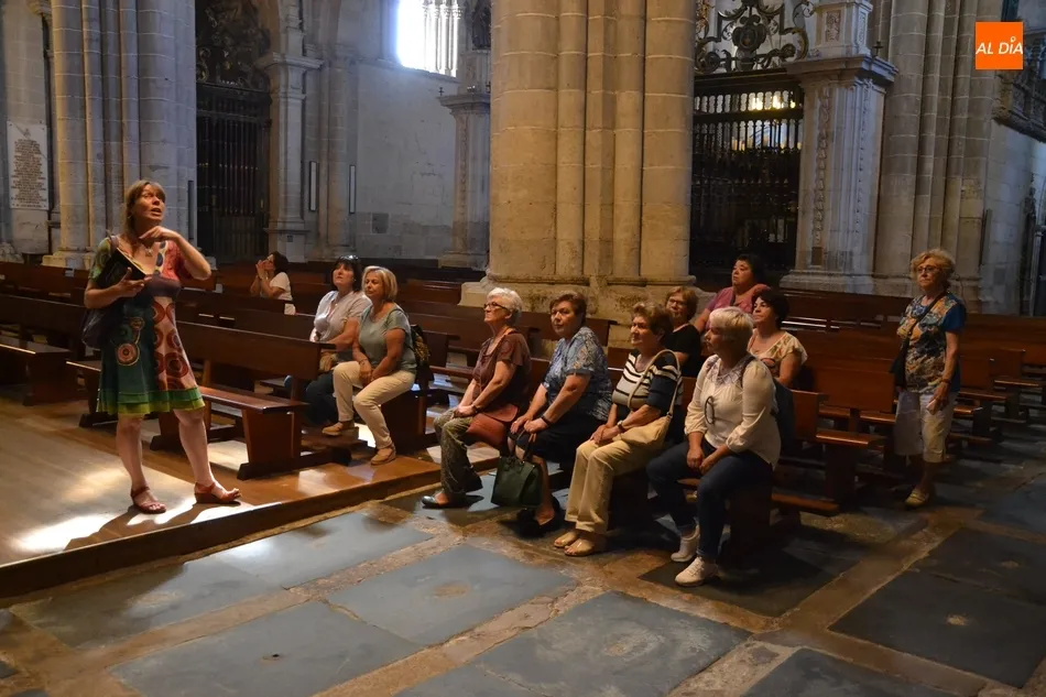 La Catedral de Santa María recibió en la tarde del miércoles la visita de un grupo de vecinos de Espeja, que se acercaron a Ciudad Rodrigo a descubrir todos los secretos de la Seo mirobrigense, tanto por fuera como por dentro, de la mano de la guía Pilar Sánchez.