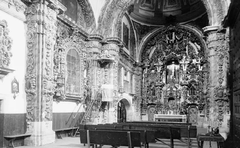En el interior destacan además del Cristo Resucitado del siglo XVIII y la imagen de Nuestra Señora de los Dolores, el retablo mayor obra de Joaquín Churriguera. A dicha capilla se accede desde una puerta de rejería abierta en el lado del Evangelio de la capilla principal.
