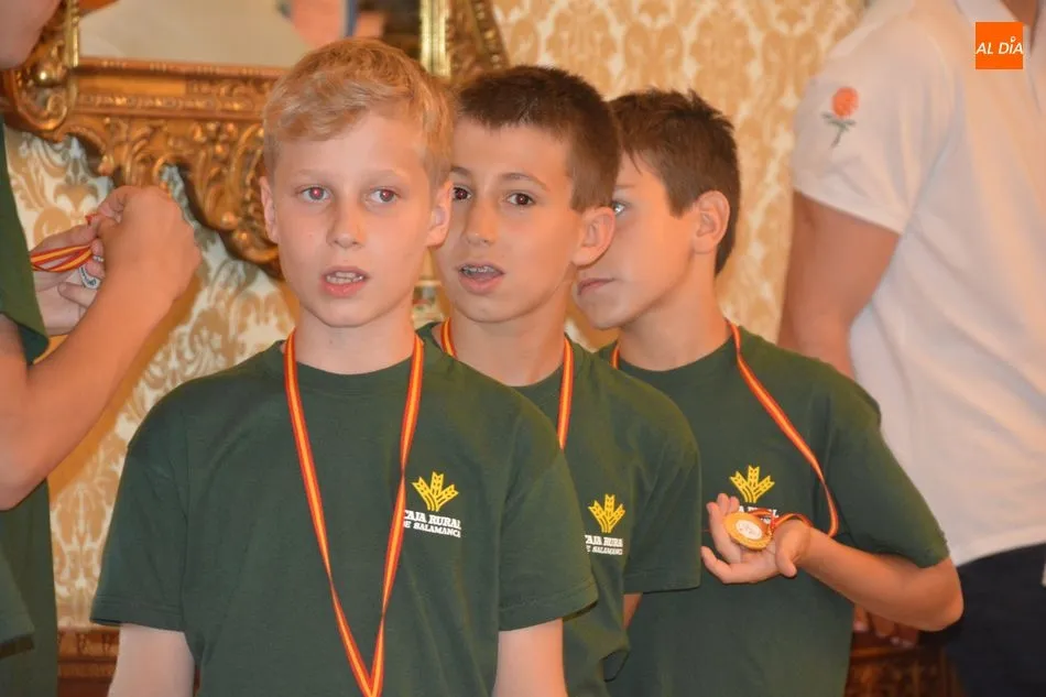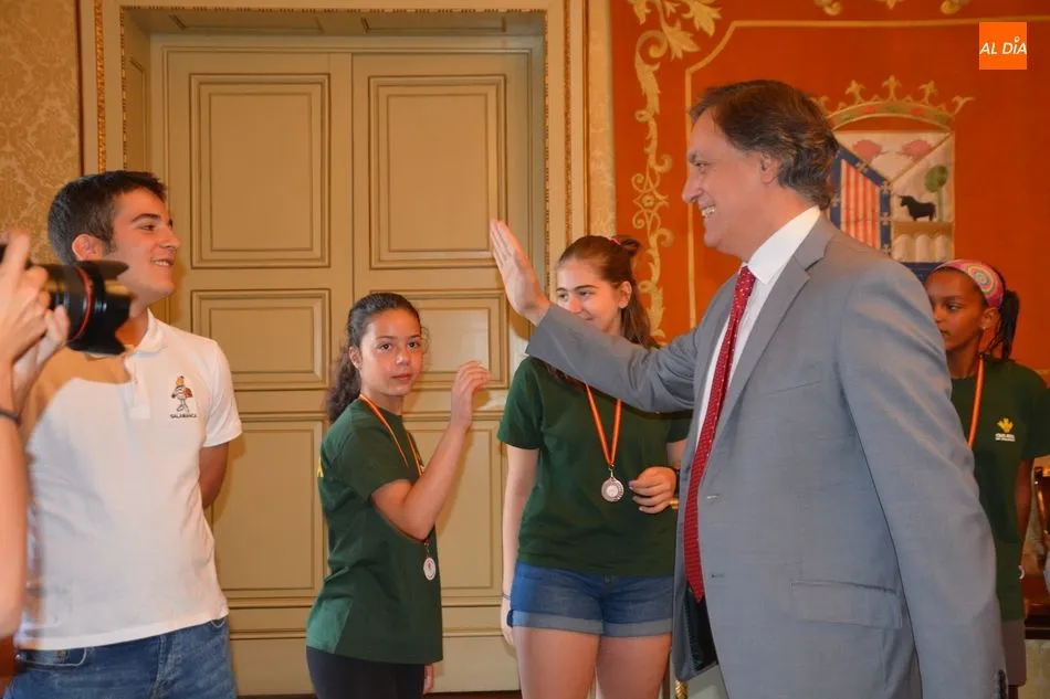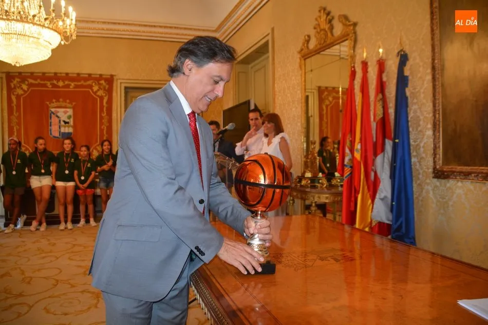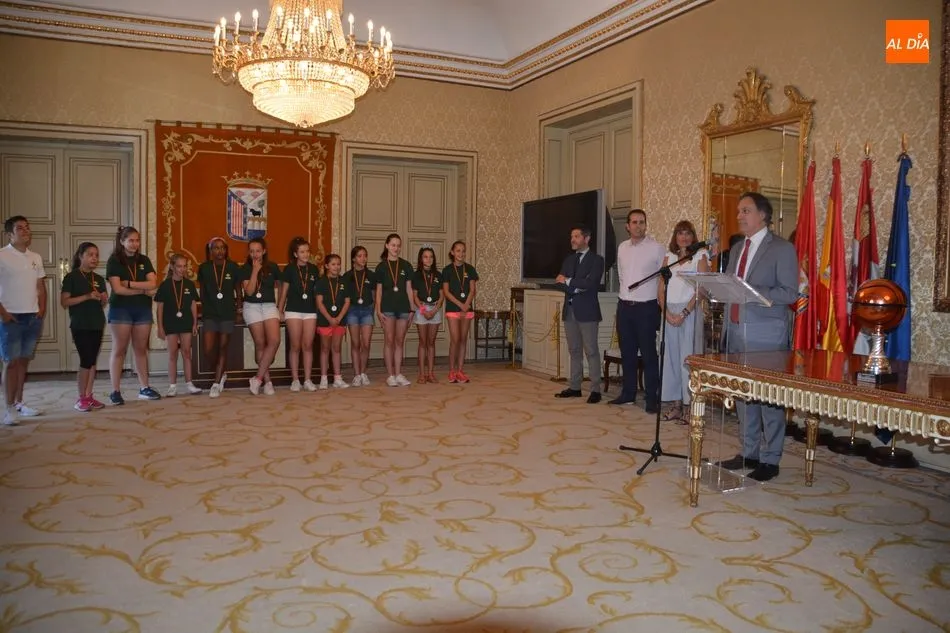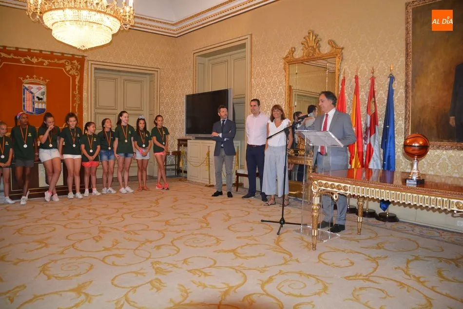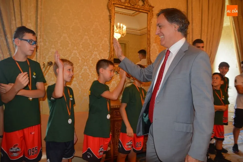 El alcalde de Salamanca, Carlos García Carbayo, ha recibido hoy a las selecciones masculina y femenina de baloncesto de Salamanca tras obtener las medallas de oro y bronce, respectivamente, en el Campeonato Autonómico del Programa Regional de Detección de Jóvenes Talentos.