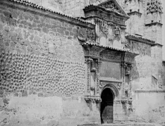 Los muros fueron cubiertos con pegotes de argamasa o guijarros pegados para impedir, de este modo, cualquier juego en ellas, y esto es lo que vemos en la fotografía adjunta, en la pared junto a la portada plateresca de la iglesia de Sancti Spiritus.
