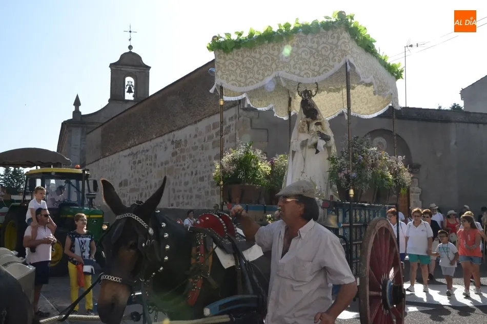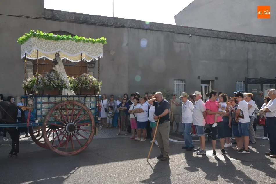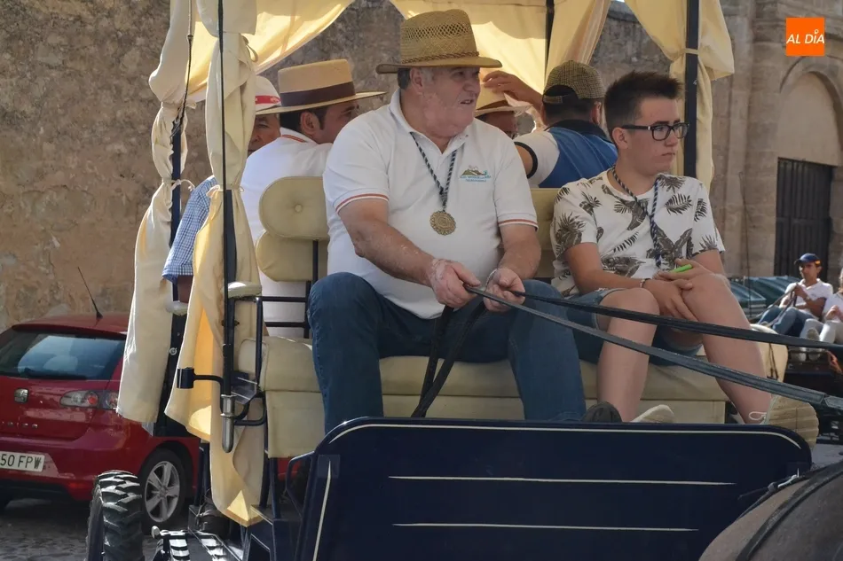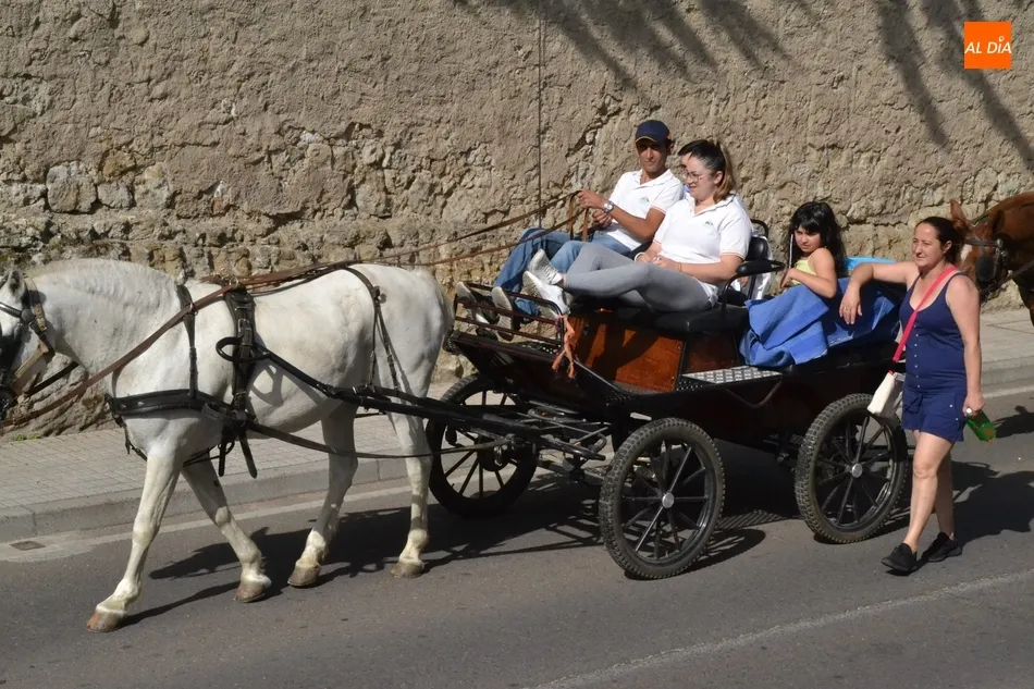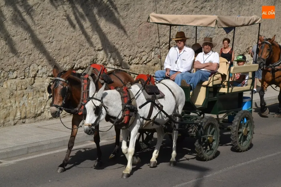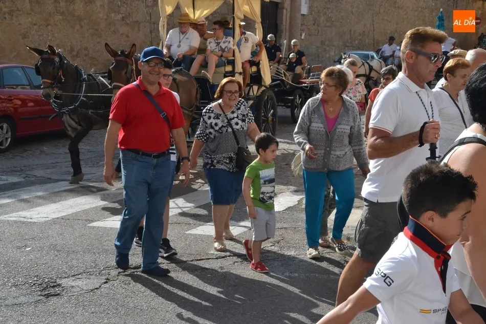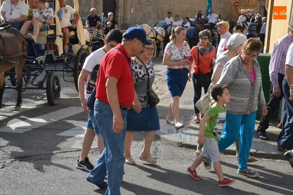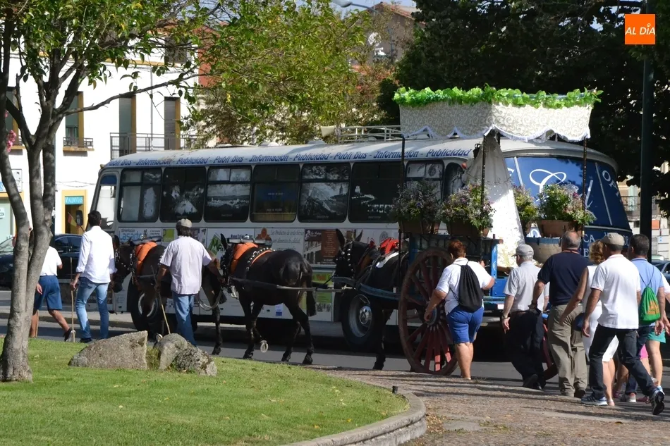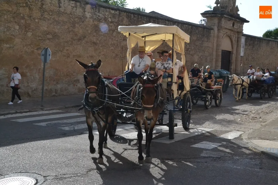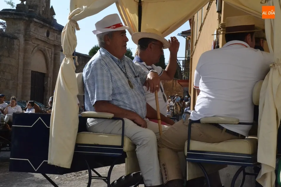 Los romeros se ponen en marcha esperando que el sol no les castigue demasiado   | Imagen 1Como es habitual, en esa salida a las puertas del Convento no sólo se dieron cita los romeros a pie, a caballo o en calesa que van a acompañar a la Virgen Morena estos días, sino también unos cuantos mirobrigenses más que quisieron presenciar ese simbólico momento, en el cual se cantó la Salve (este año incluso en dos ocasiones, una cuando la Virgen todavía estaba en tierra y otra ya subida a la carreta).