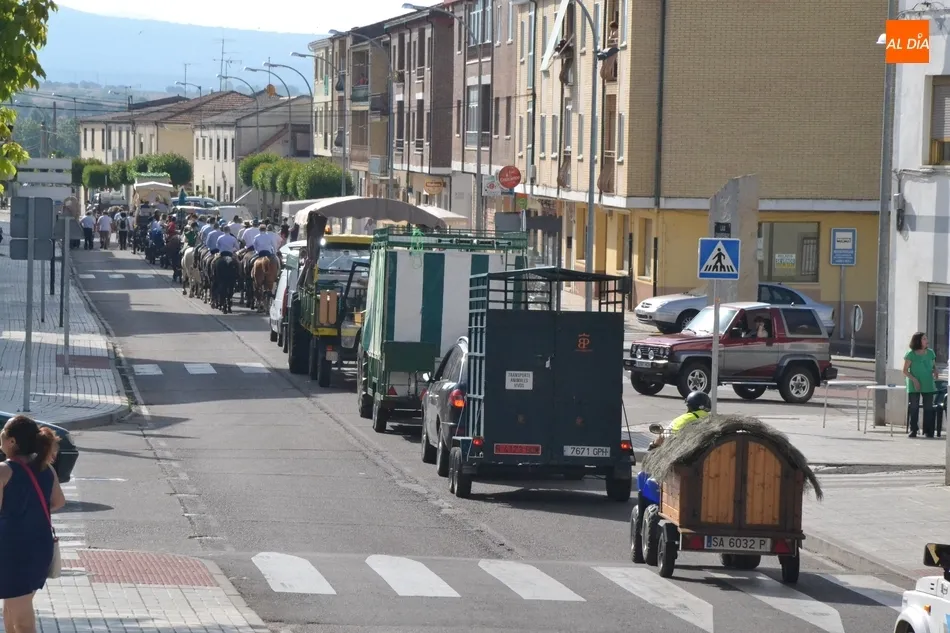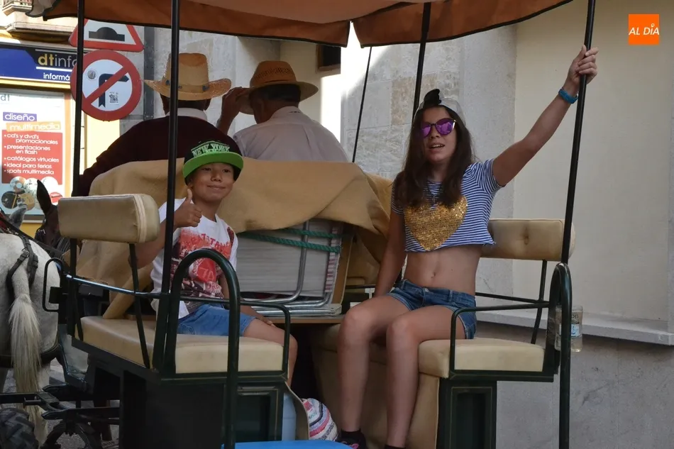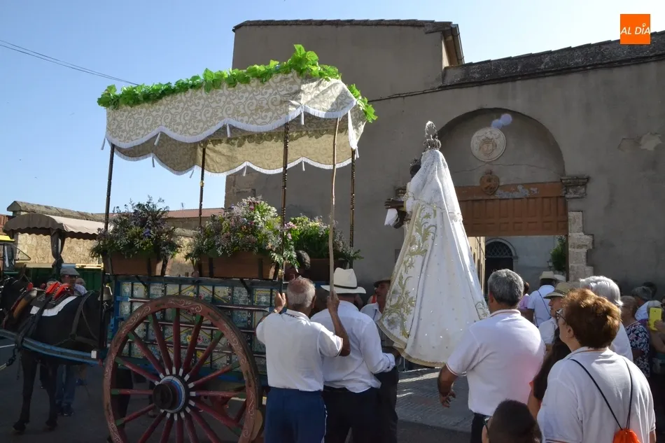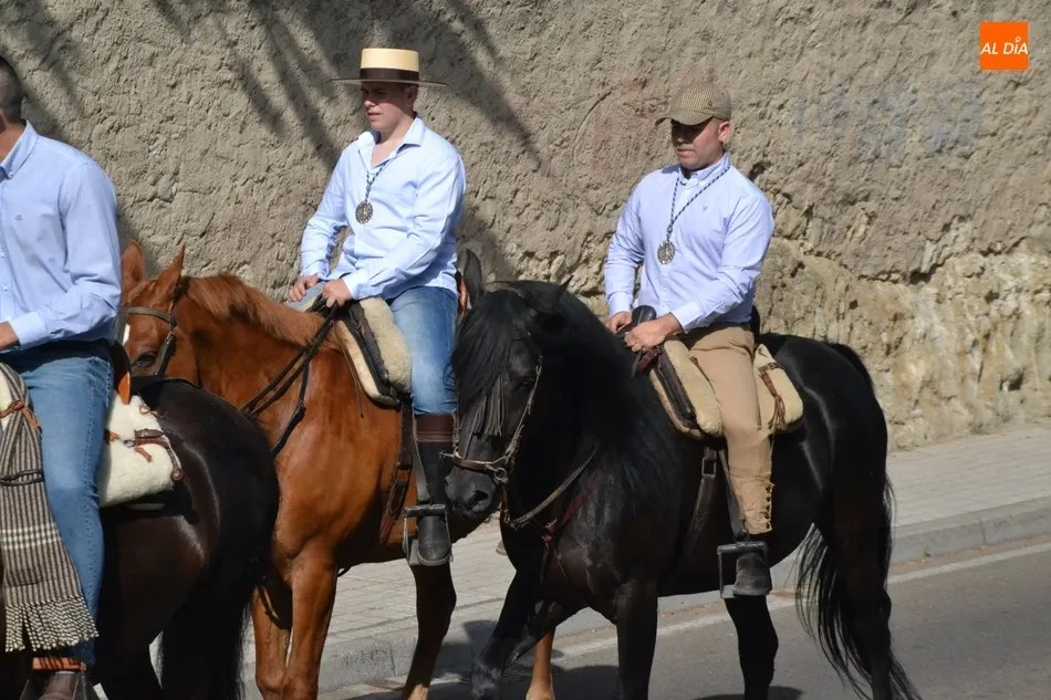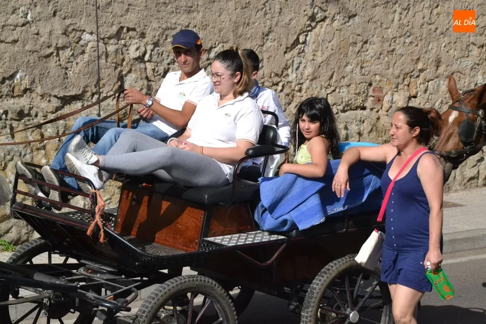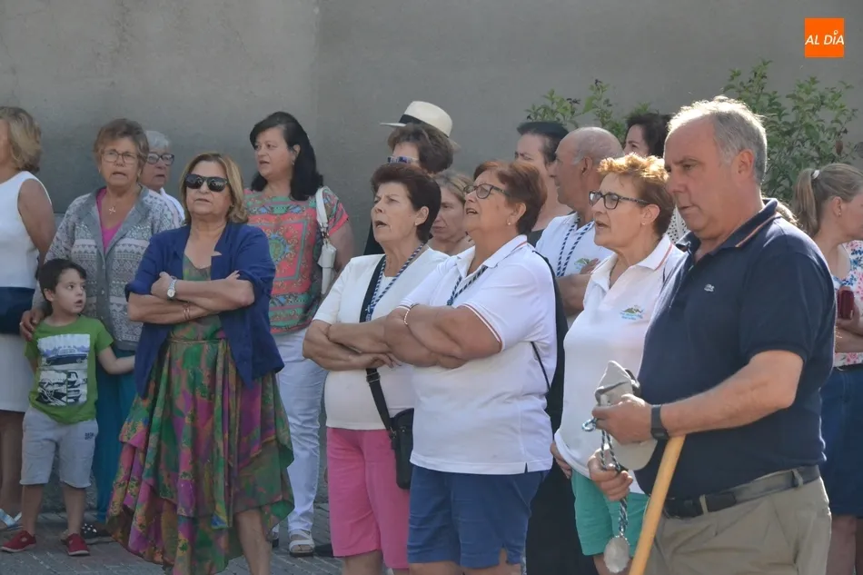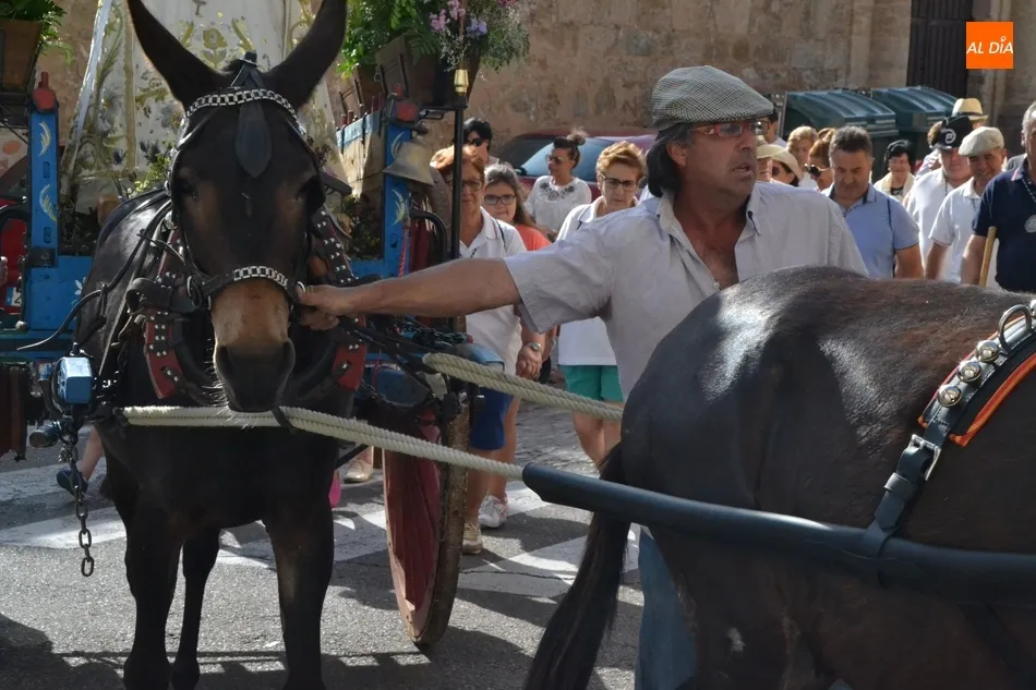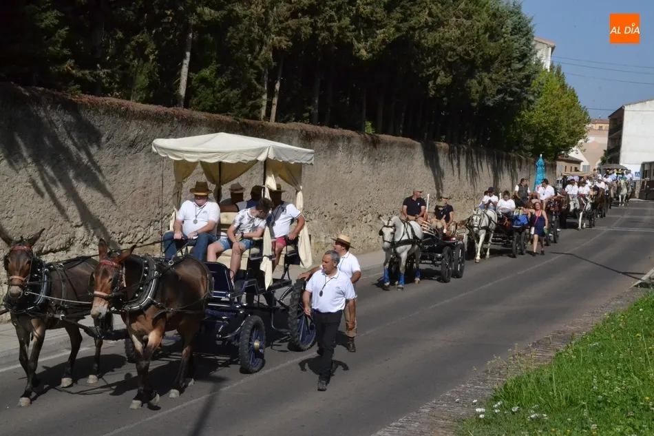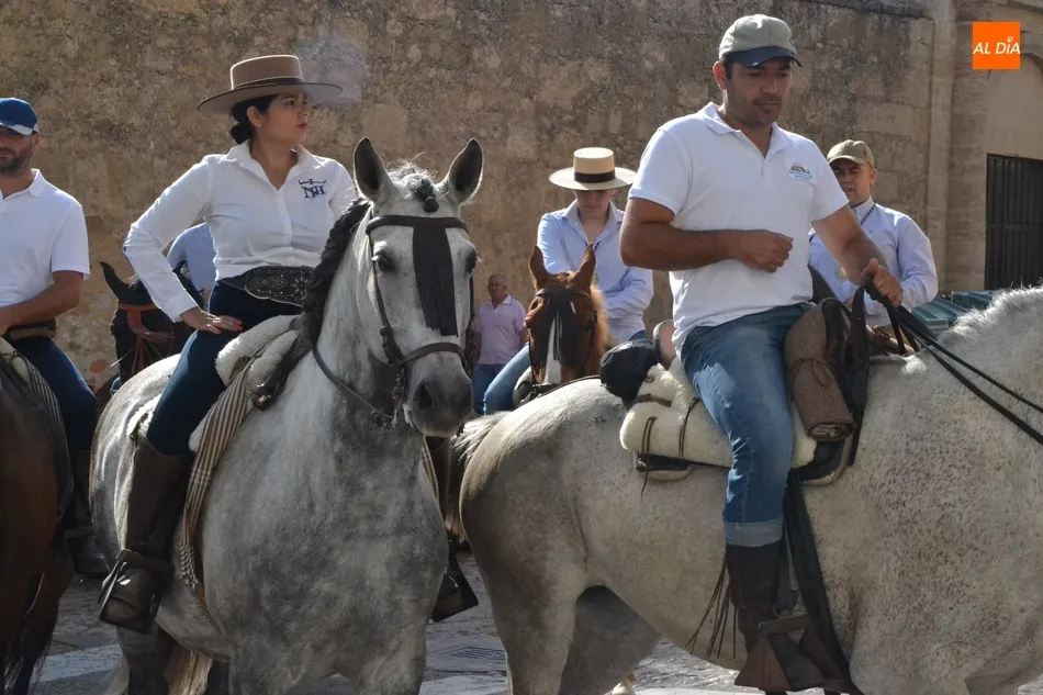 Los romeros se ponen en marcha esperando que el sol no les castigue demasiado   | Imagen 1Como es habitual, en esa salida a las puertas del Convento no sólo se dieron cita los romeros a pie, a caballo o en calesa que van a acompañar a la Virgen Morena estos días, sino también unos cuantos mirobrigenses más que quisieron presenciar ese simbólico momento, en el cual se cantó la Salve (este año incluso en dos ocasiones, una cuando la Virgen todavía estaba en tierra y otra ya subida a la carreta).