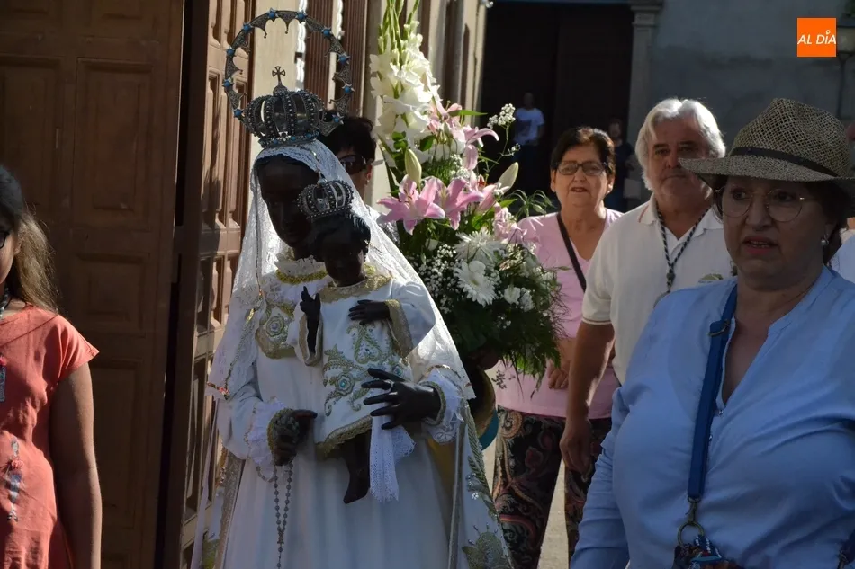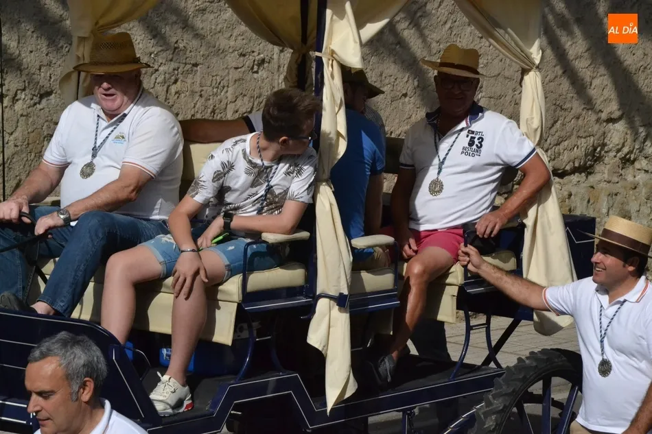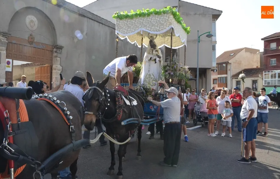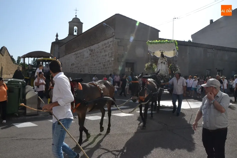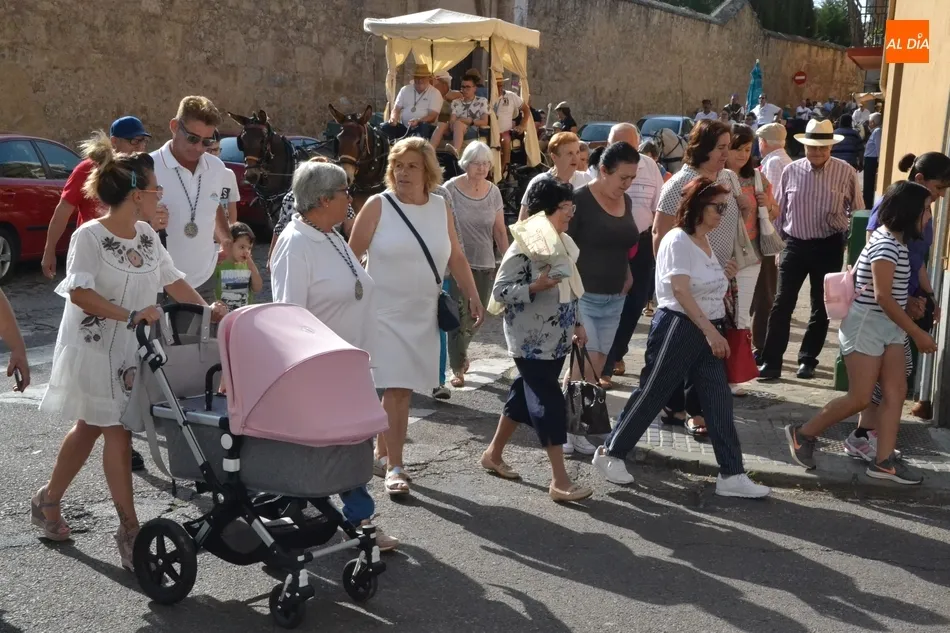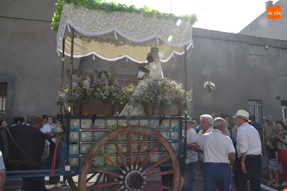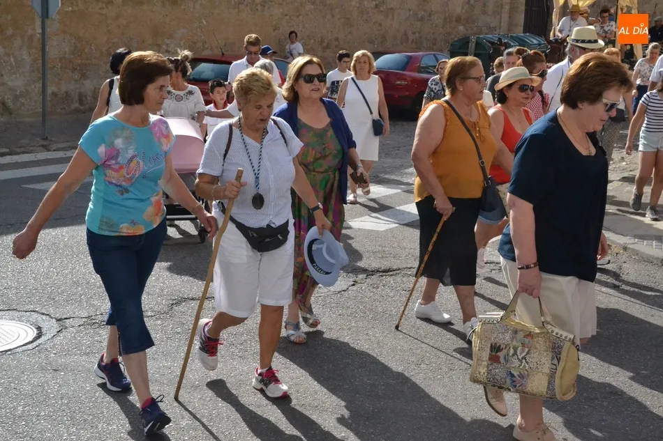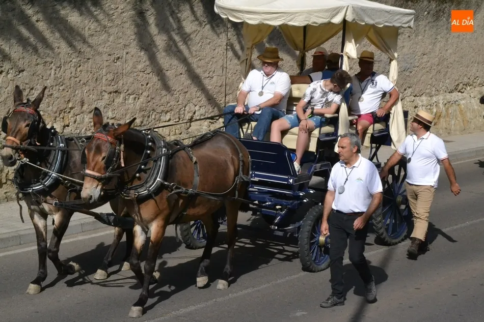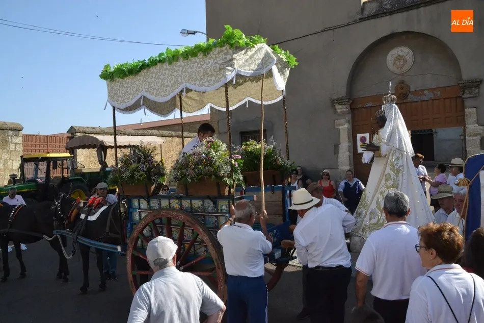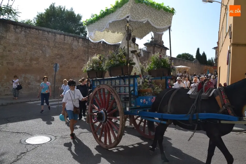 Los romeros se ponen en marcha esperando que el sol no les castigue demasiado   | Imagen 1Como es habitual, en esa salida a las puertas del Convento no sólo se dieron cita los romeros a pie, a caballo o en calesa que van a acompañar a la Virgen Morena estos días, sino también unos cuantos mirobrigenses más que quisieron presenciar ese simbólico momento, en el cual se cantó la Salve (este año incluso en dos ocasiones, una cuando la Virgen todavía estaba en tierra y otra ya subida a la carreta).