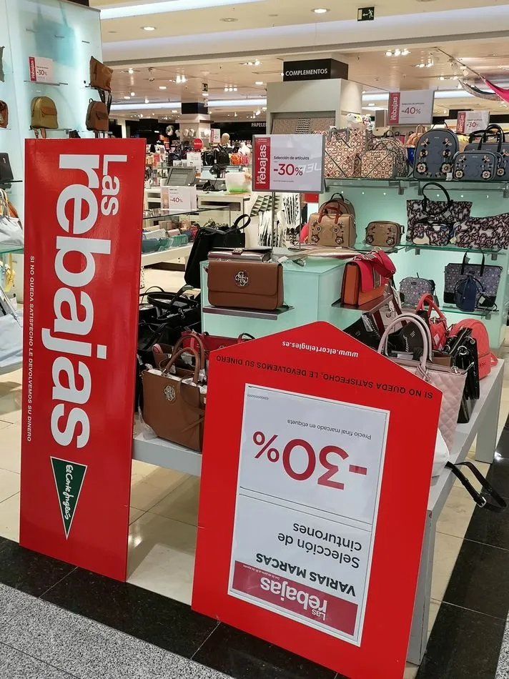 En la oferta comercial, destacan artículos de moda, hogar, ocio y accesorios, incluyendo productos de alta gama y firmas de prestigio. Entre los productos más demandados figuran los que componen el equipamiento para las vacaciones, bañadores y accesorios para la playa y la montaña. Además, sobresalen las prendas de moda, bolsos, zapatos y sandalias y otros complementos. El Corte Inglés también hace especial hincapié durante este periodo de rebajas en las promociones de los departamentos que no son de moda, como en muebles de terraza y jardín, textil hogar, electrodomésticos, tecnología y cultura y ocio, para que los clientes puedan disfrutar de descuentos en todas las áreas del centro comercial.