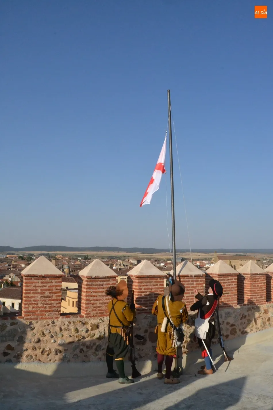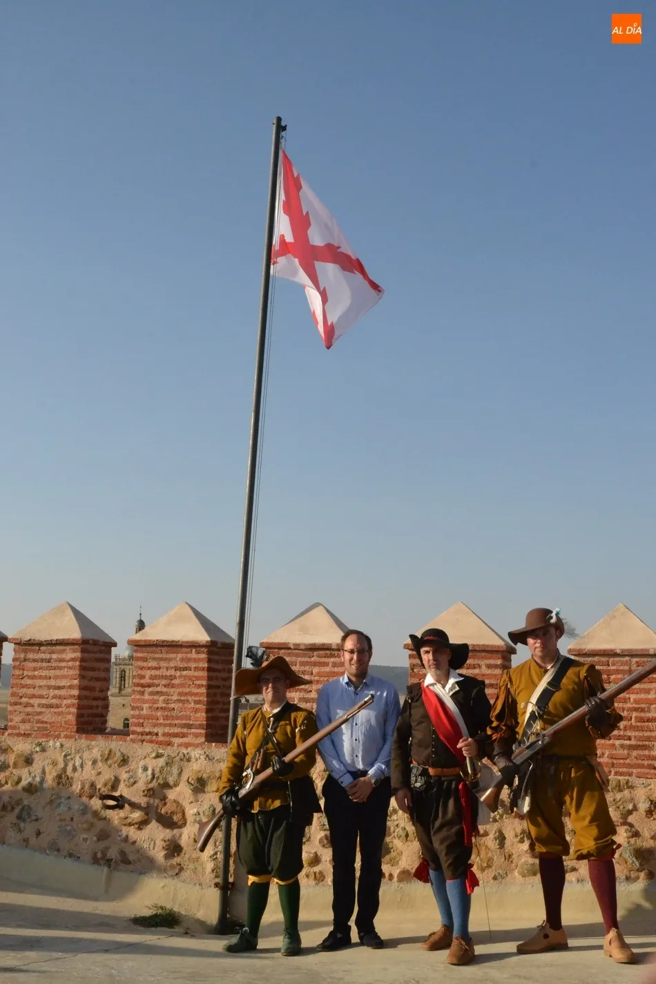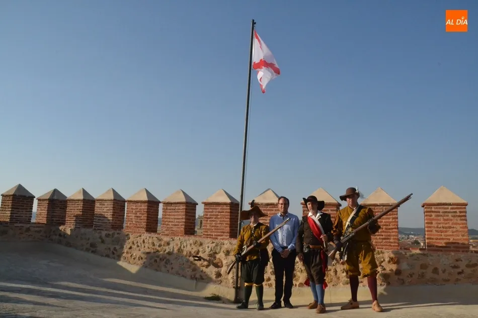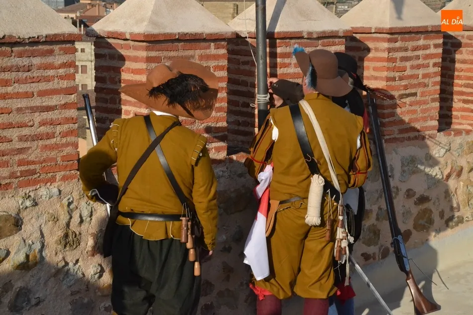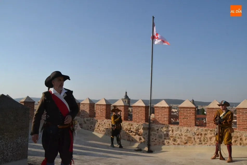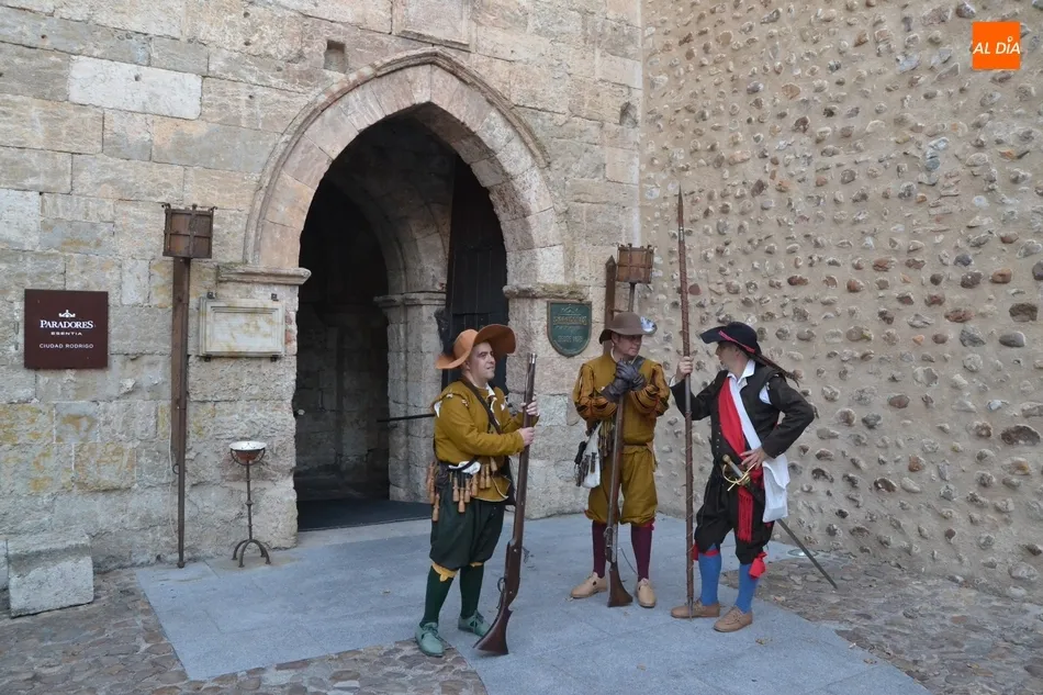 Junto a los Tercios, hasta lo alto del Parador también subió el alcalde de Ciudad Rodrigo, Marcos Iglesias, y varios involucrados más en el evento, que tuvieron la oportunidad de disfrutar de las espléndidas vistas de toda la ciudad que se pueden contemplar desde allí. Al mismo tiempo que esos recreadores izaban la bandera, a Ciudad Rodrigo fueron llegando unos cuantos más de diversos puntos de España.