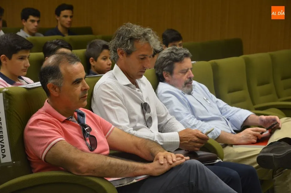 El secretario general de la Consejería de Cultura y Turismo, José Rodríguez Sanz-Pastor, acompañado de representantes de la Diputación, ha presentado esta mañana una charla sobre la historia de la tauromaquia en Castilla y León, que ha sido impartida por el periodista y escritor Paco Cañamero a los alumnos de la Escuela de Tauromaquia de Salamanca.