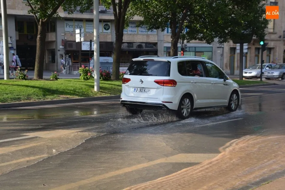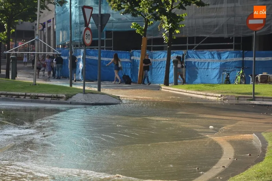 El reventón de una tubería ha provocado que el agua se expandiera por diversas calles desde María Auxiliadora hasta la Gran Vía, incluyendo a la avenida de Mirat y la plaza de España.