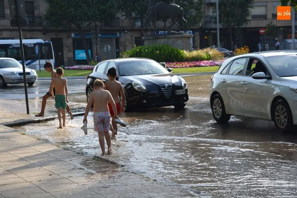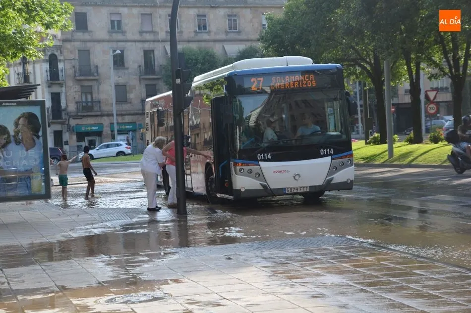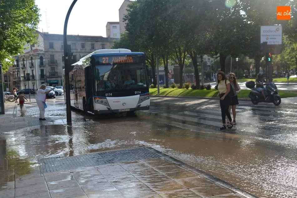 El tráfico tuvo que ser cortado por la gran cantidad de agua que había, llegando a afectar a sótanos y tiendas de las céntricas calles de la ciudad charra.