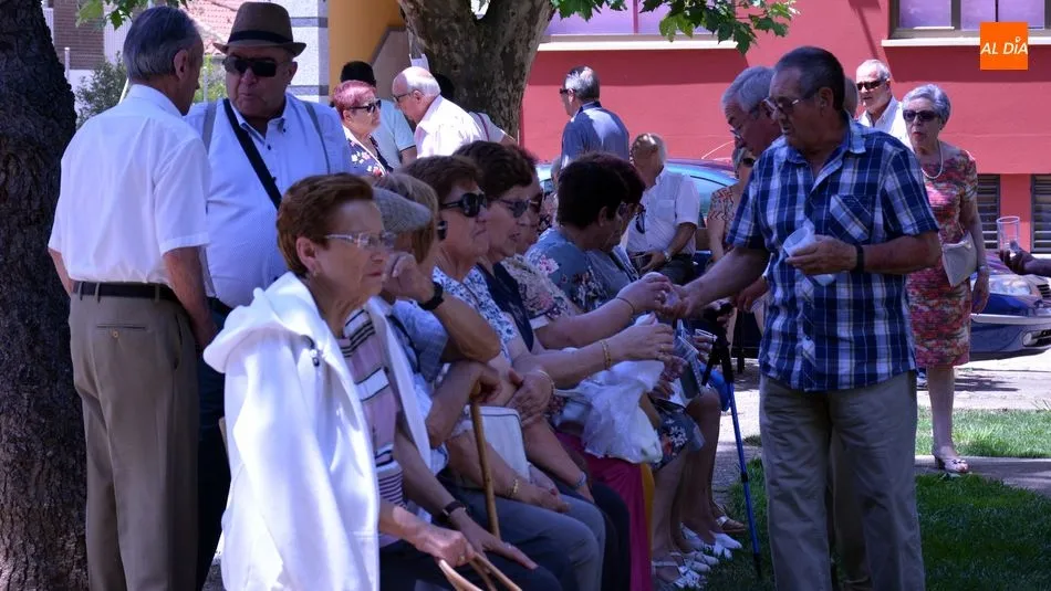 Los cohetes anunciaban el inicio de la fiesta antes del mediodía, momento en que los mayores empezaron a reunirse en el parque próximo al hogar del jubilado. Desde el parque iniciaron el paseo, acompañados de la charanga Santana, hasta la iglesia parroquial, donde se celebró una misa solemne en honor del patrón. Finalizada la eucaristía, llegó la hora de disfrutar de un convite con dulces y sangría y de la música de la charanga hasta la hora de la comida.